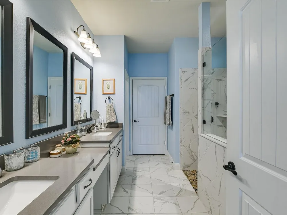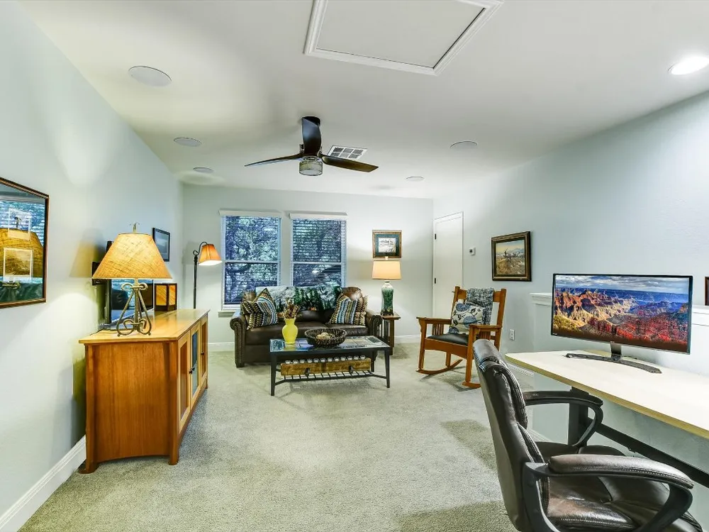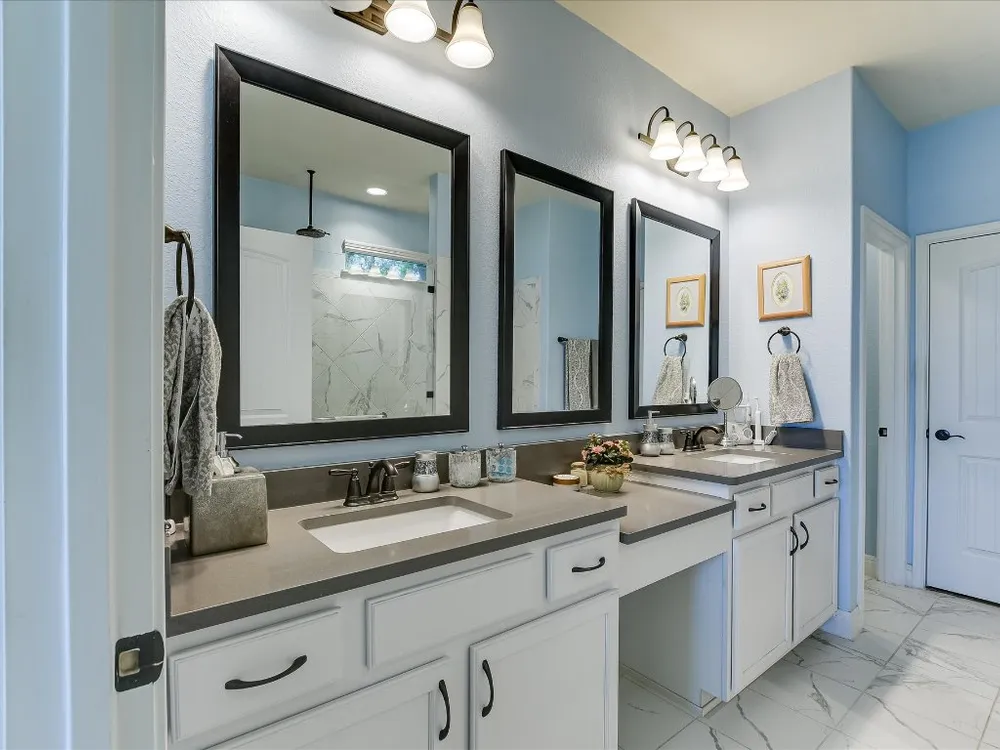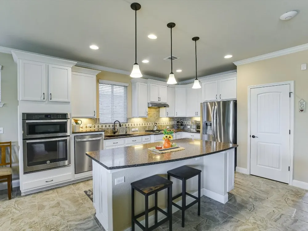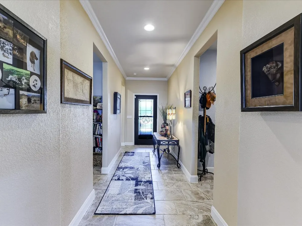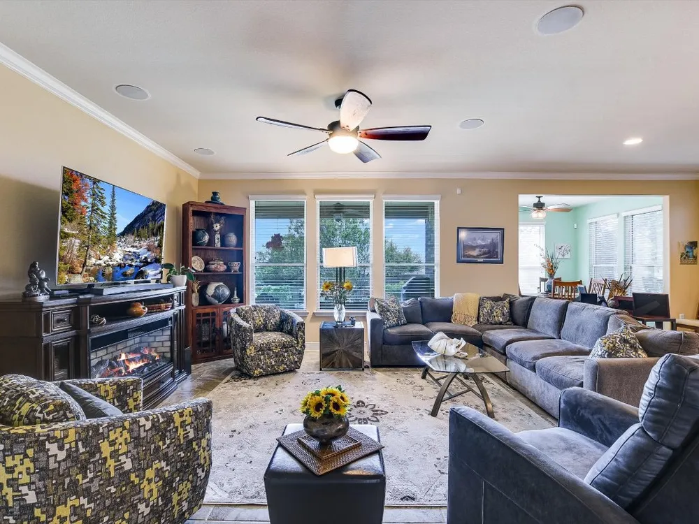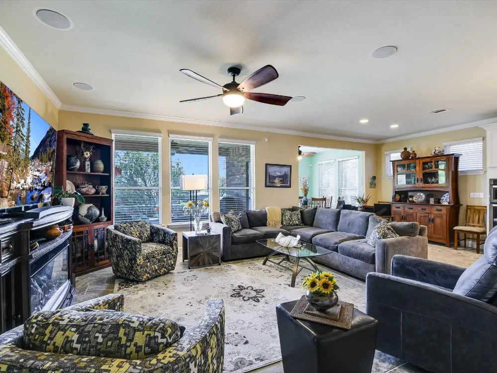 - Ceiling Fan(s), Crown Molding, Double Vanity, Entrance Foyer, Eat-in Kitchen, Granite Counters, High Ceilings, InteriorSteps, Kitchen Island, Multiple Living Areas, Main Level Primary, Open Floorplan, Pantry, Recessed Lighting, Walk-In Closet(s), Wired for Sound