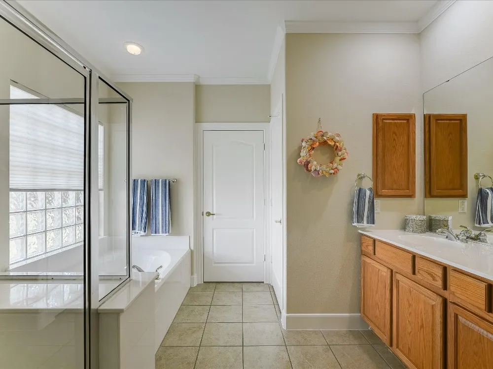 - Breakfast Bar, Ceiling Fan(s), Double Vanity, Eat-in Kitchen, Kitchen Island, Main Level Primary, Open Floorplan, Pantry, Solid Surface Counters, Soaking Tub, Walk-In Closet(s)