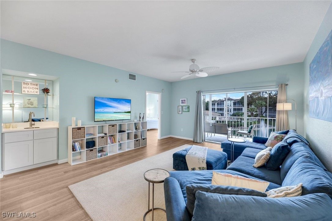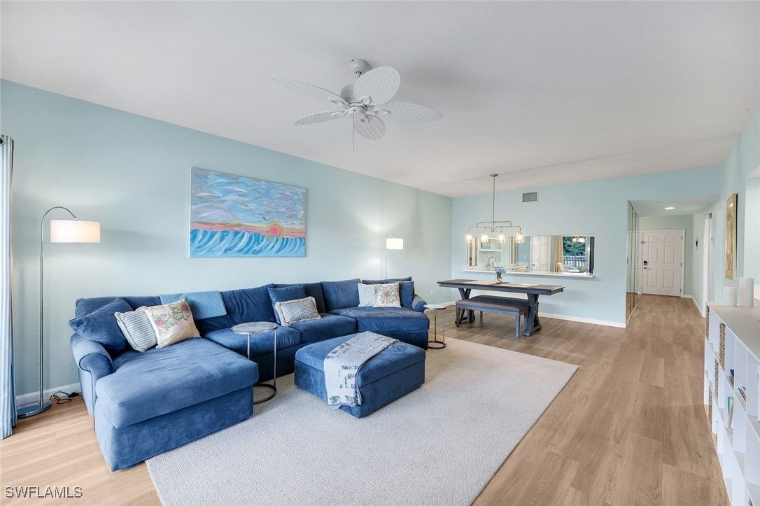 This unit has tons of updates and upgrades. Most furniture can be included if buyer chooses. Wonderful spacious residence with serene coastal decor that creates a calm retreat with sparkling lake views. There are 2 screened lanais allowing coastal breezes to flow through. The beautiful luxury vinyl wood plank flooring has warm tones. The new kitchen has white shaker cabinetry, quartz counters, stainless steel appliances and a tray ceiling with accent lighting and crown molding. This modern design has the popular open shelving concept and glass cabinetry. A large pantry closet has enough extra space for storing your small appliances too. The owner's suite has lovely lake views, large walk-in closet and vanity with dual sinks, quartz counters and a separate shower and soaking tub. The guest bedroom has ample closet space and a refreshed bathroom with new cabinetry and quartz counters. The main lanai has storm shutters and gorgeous lake views. The second lanai off the kitchen has colorful skies at sunset and has storm shutters too. It is an easy walk to the community pool and hot tub. Chardonnay is nestled in the highly sought after neighborhood of the Vineyards. Close to a large variety of shopping, dining, Naples' white sandy beaches, medical facilities and I-75 for traveling. This one checks all the boxes.
