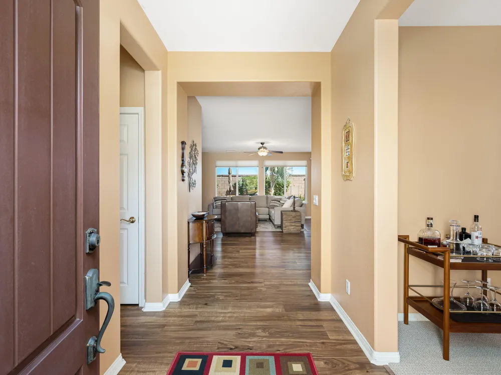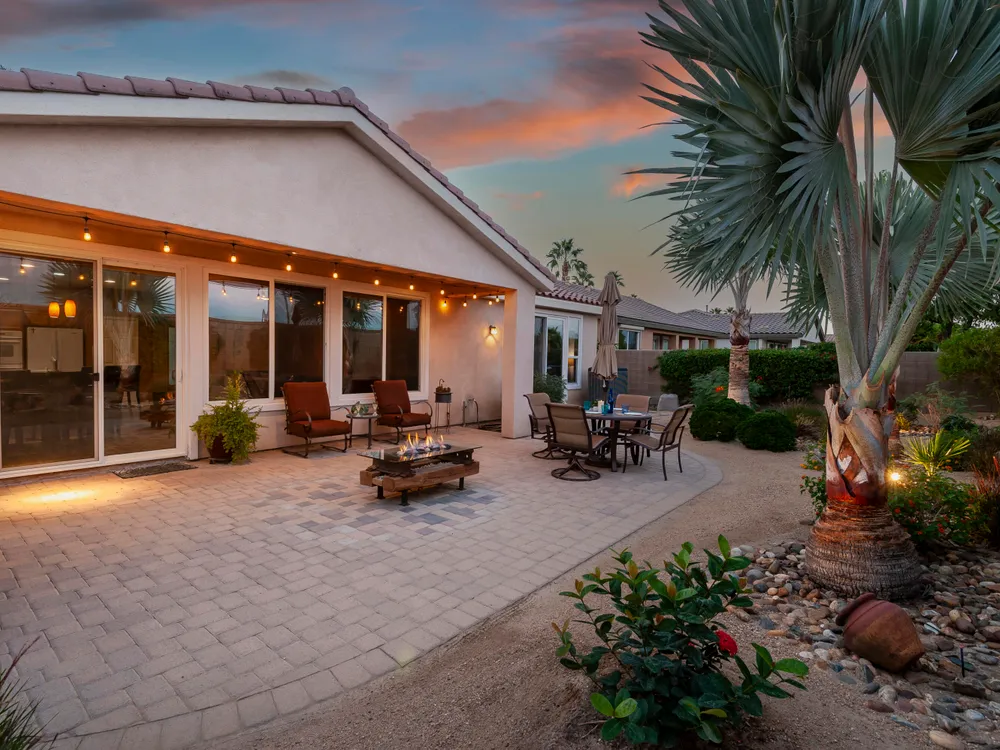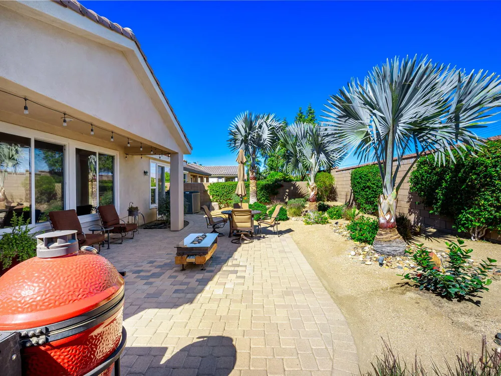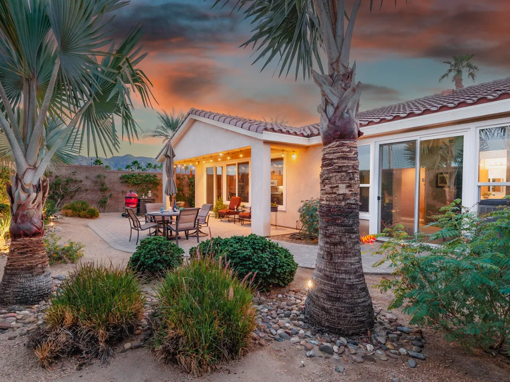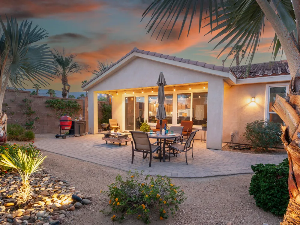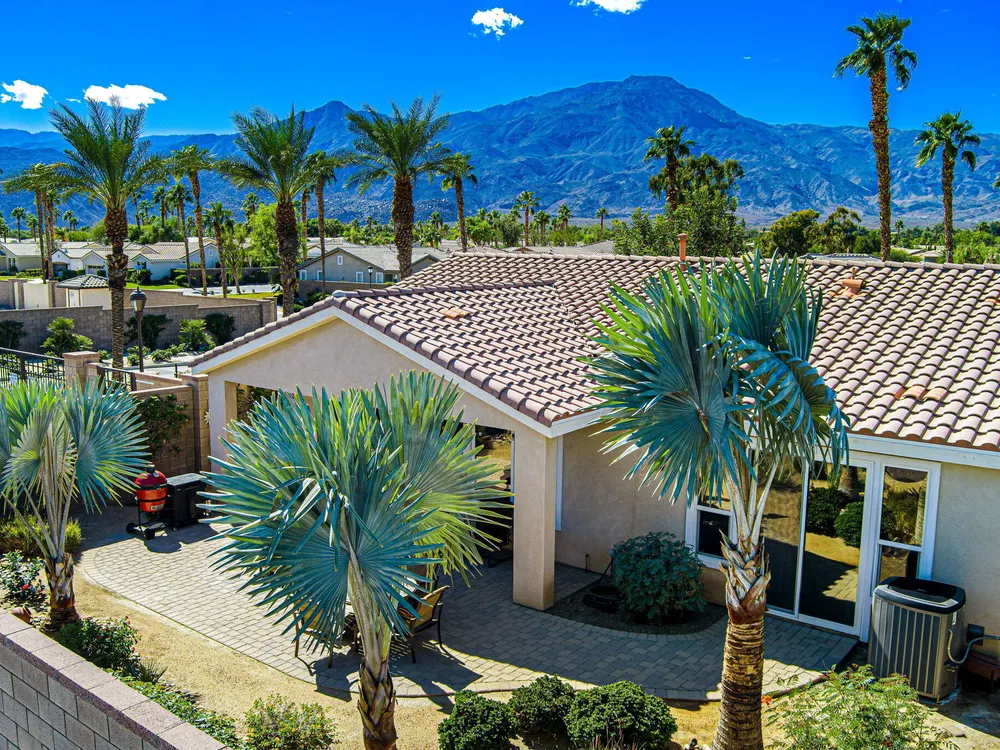 A Suite Deal! Charm and quality are hallmarks of this immaculate and beautifully crafted 1,667 SQ FT Monterey Model with 2-bedrooms, a den or 3rd bedroom, and 2-full baths, located in the highly desired Trilogy Golf Club at La Quinta. Richly upgraded with stunning wide-plank floors in the main living areas, and available fully furnished, with newer A/C, the home offers all the comforts of a fun vacation property coupled with the durability, efficiency, and ease of maintenance of a rental. Experience the splendor of desert living in a home that makes indoor and outdoor living seamless. Outdoors, the towering Santa Rosa Mountains from the front and back patios will have you awestruck, while indoors, the sun as it radiates softly through the big picture windows make the whole home feel airy and cheerful. The kitchen with its extensive counters, cabinets, and pantry offers plenty of space for even the most prolific chefs, while the extra-large center island makes food preparation and entertaining a breeze. Serve up dinners in the dining area or outdoor BBQ on the covered patio. The den offers a soothing and comfortable respite perfect for snuggling up with a movie or good book. The main bedroom suite is spacious with sliding doors that step out to the private back patio. The bath features dual vanities, a linen closet, walk-in shower, and deep walk-in closet. Separated for privacy, friends and family will love the guest bedroom and full bath. A separate laundry room with deep sink and cabinets is steps away from the oversized garage that easily fits up to 2-cars, golf cart, bikes, and athletic equipment. Take in the beauty of the professionally landscaped yard, with custom pavers and richly textured, mature trees and flowering plants. By day, enjoy a cup of Joe on the patio as the sun casts its first shadows as it rises in the east. At nightfall, grab a glass of wine and sit fireside as the landscape spotlights come alive, and the moon makes its magnificent ascent over the valley. Trilogy at La Quinta is a 55+ active adult community of 1,238 homes offering the ultimate in golf and desert resort living.