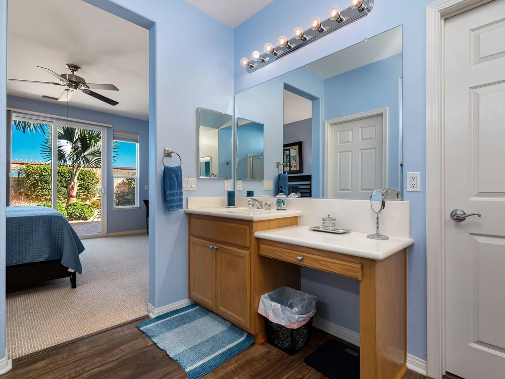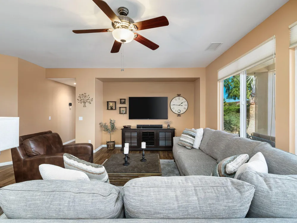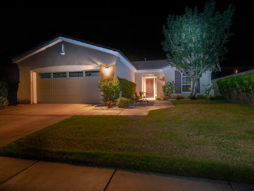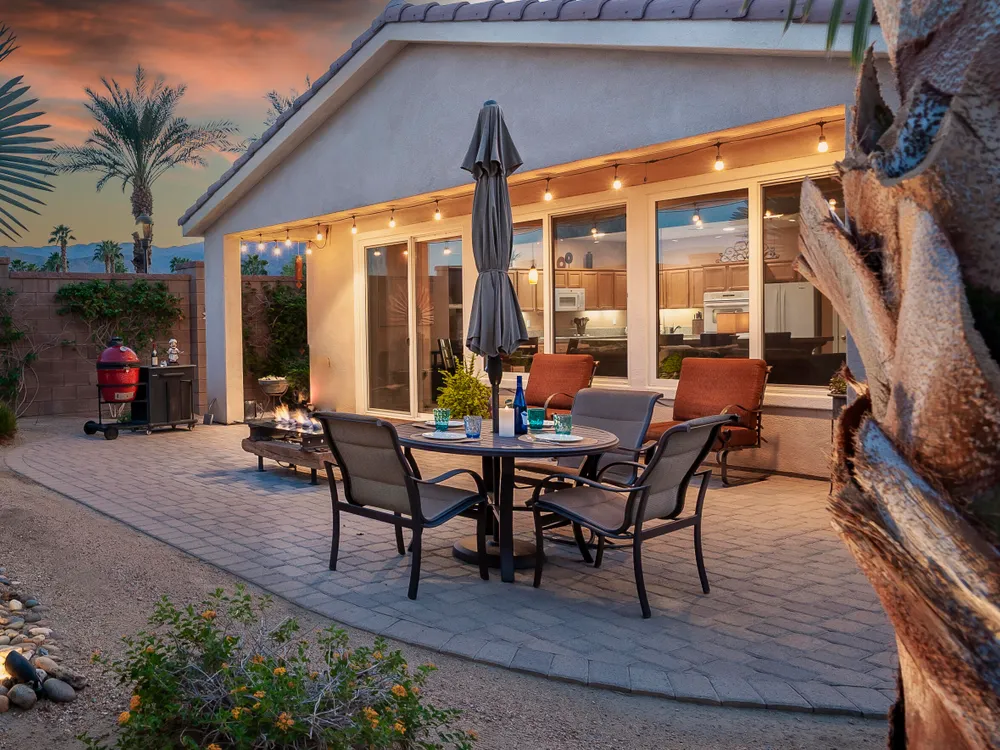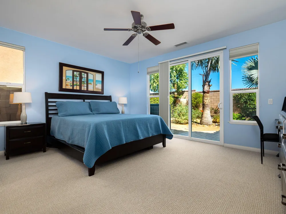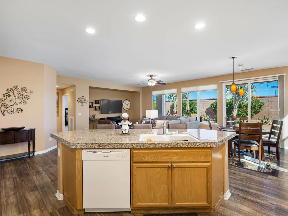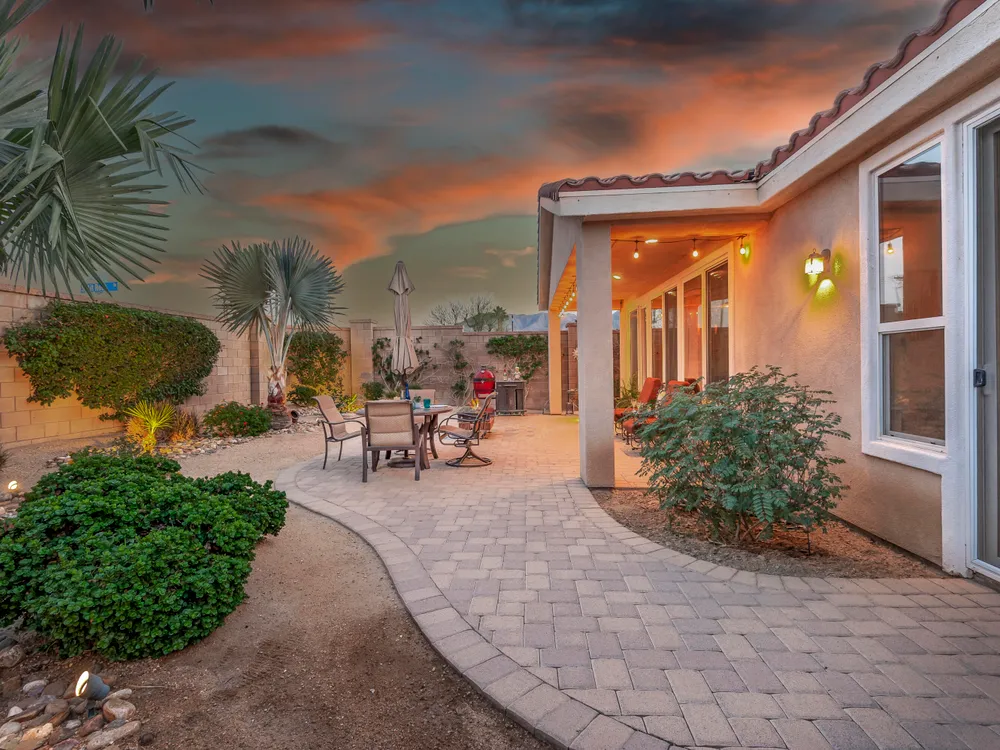 A Suite Deal! Charm and quality are hallmarks of this immaculate and beautifully crafted 1,667 SQ FT Monterey Model with 2-bedrooms, a den or 3rd bedroom, and 2-full baths, located in the highly desired Trilogy Golf Club at La Quinta. Richly upgraded with stunning wide-plank floors in the main living areas, and available fully furnished, with newer A/C, the home offers all the comforts of a fun vacation property coupled with the durability, efficiency, and ease of maintenance of a rental. Experience the splendor of desert living in a home that makes indoor and outdoor living seamless. Outdoors, the towering Santa Rosa Mountains from the front and back patios will have you awestruck, while indoors, the sun as it radiates softly through the big picture windows make the whole home feel airy and cheerful. The kitchen with its extensive counters, cabinets, and pantry offers plenty of space for even the most prolific chefs, while the extra-large center island makes food preparation and entertaining a breeze. Serve up dinners in the dining area or outdoor BBQ on the covered patio. The den offers a soothing and comfortable respite perfect for snuggling up with a movie or good book. The main bedroom suite is spacious with sliding doors that step out to the private back patio. The bath features dual vanities, a linen closet, walk-in shower, and deep walk-in closet. Separated for privacy, friends and family will love the guest bedroom and full bath. A separate laundry room with deep sink and cabinets is steps away from the oversized garage that easily fits up to 2-cars, golf cart, bikes, and athletic equipment. Take in the beauty of the professionally landscaped yard, with custom pavers and richly textured, mature trees and flowering plants. By day, enjoy a cup of Joe on the patio as the sun casts its first shadows as it rises in the east. At nightfall, grab a glass of wine and sit fireside as the landscape spotlights come alive, and the moon makes its magnificent ascent over the valley. Trilogy at La Quinta is a 55+ active adult community of 1,238 homes offering the ultimate in golf and desert resort living.