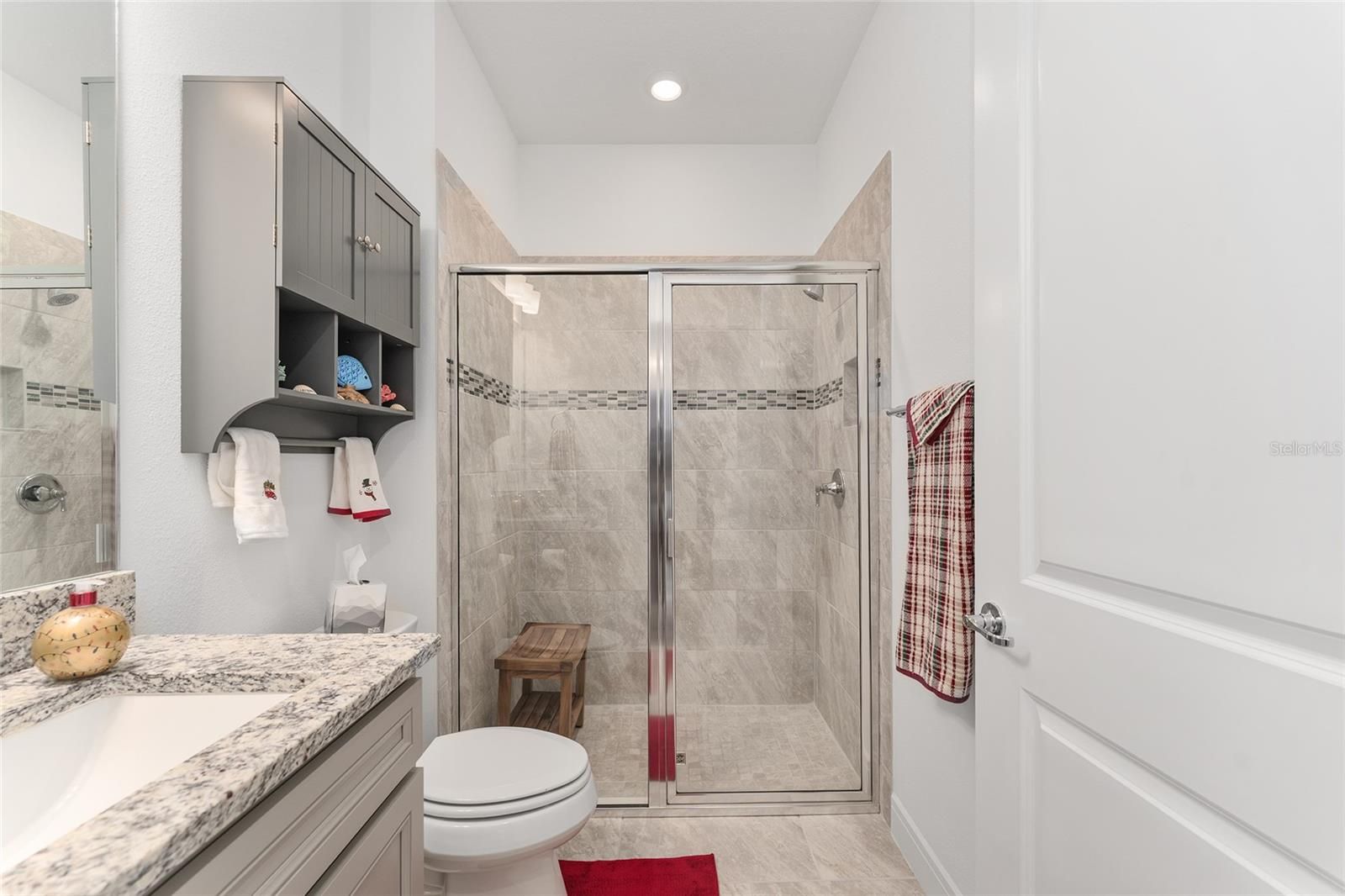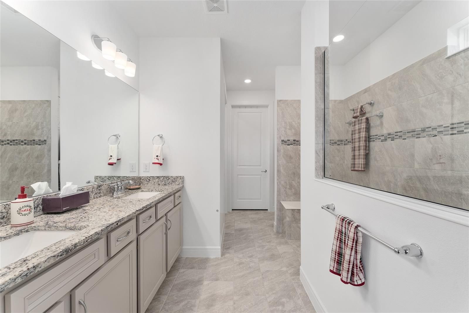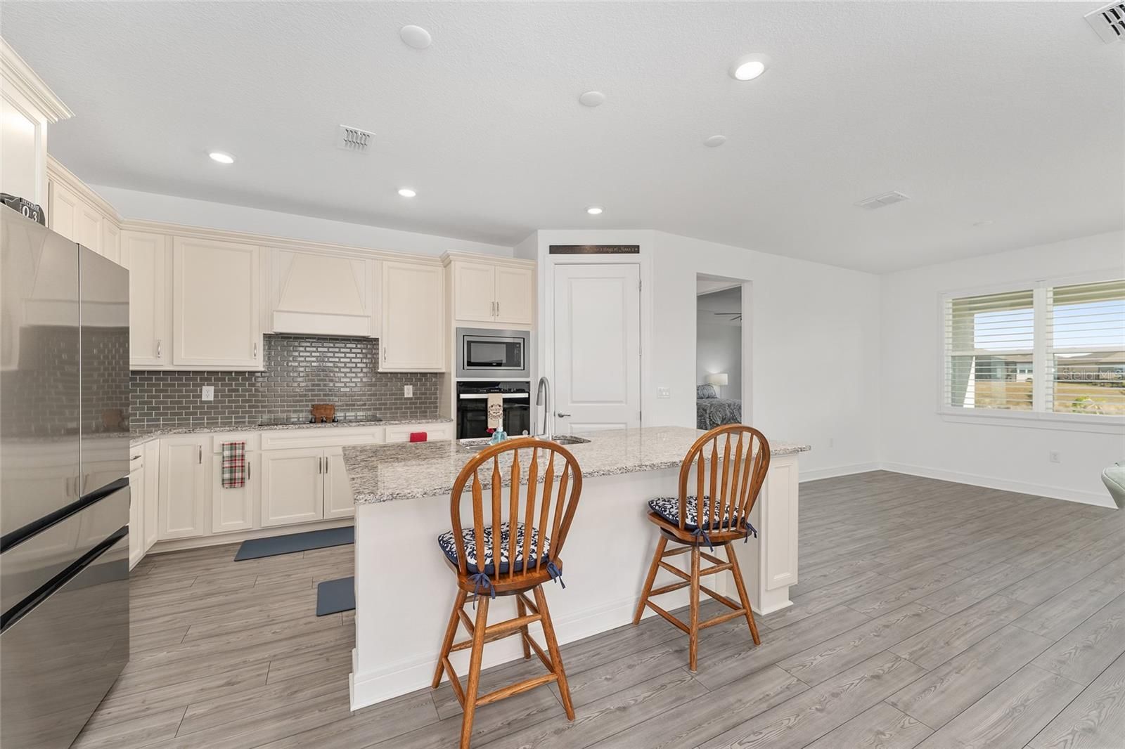 Looking for the perfect place to enjoy comfort, style, and an active lifestyle? Check out this gorgeous expanded Mystique model perfectly positioned on a premium lot offering private and relaxing green space views. Located in the highly sought-after gated, 55+ Stone Creek Golf Course Community, this home is more than just a residence; it's your ticket to vibrant, resort-inspired living. This home blends luxurious finishes with thoughtful design, creating the lifestyle you’ve been seeking. Elegant luxury vinyl plank and tile flooring flow throughout, complemented by soaring ceilings, Plantation shutters, recessed LED lighting, and a versatile bonus flex room. Designed for gatherings and effortless living, the spacious extended living room features glass sliders that open to a covered lanai, where tranquil green space views provide a serene backdrop for outdoor gatherings. This inviting gourmet kitchen offers a central island perfect for casual bar-height seating, timeless Shaker cabinets topped with crown molding accents, granite countertops, and a stylish tiled backsplash. With a generous pantry and stainless steel appliances, including a cooktop framed by a custom wooden range hood, this space blends charm with everyday convenience. Unwind in the spacious Owner’s suite, featuring a graceful tray ceiling and convenient top-down cellular shades. The walk-in closet keeps everything organized, while the private bath boasts a Roman-style shower with elegant glass tile accents, a sunlit transom window, and a dual vanity designed for comfort and ease. Take advantage of the two spacious guest rooms, perfect for accommodating visitors or setting up a hobby space, and you'll also love the large laundry room, complete with a laundry tub, a folding table, and ample cabinet storage space. To top it all off, this home includes a convenient Smart Home technology package, adding a modern touch to these fantastic features. Embrace the exceptional lifestyle of this vibrant community, featuring a 24/7 staffed gated entrance for security and peace of mind. Luxury-inspired amenities include heated pools, a state-of-the-art fitness center, a spa, and relaxing hot tubs and saunas. Stay active with pickleball, bocce, tennis, and a softball field, while a dedicated lifestyle staff curates entertainment, activities, and special events to foster connections. Just beyond the gates, enjoy a golf course, pro shop, and restaurant—perfect for socializing and unwinding. Make your move today and experience resort-style living at its finest!