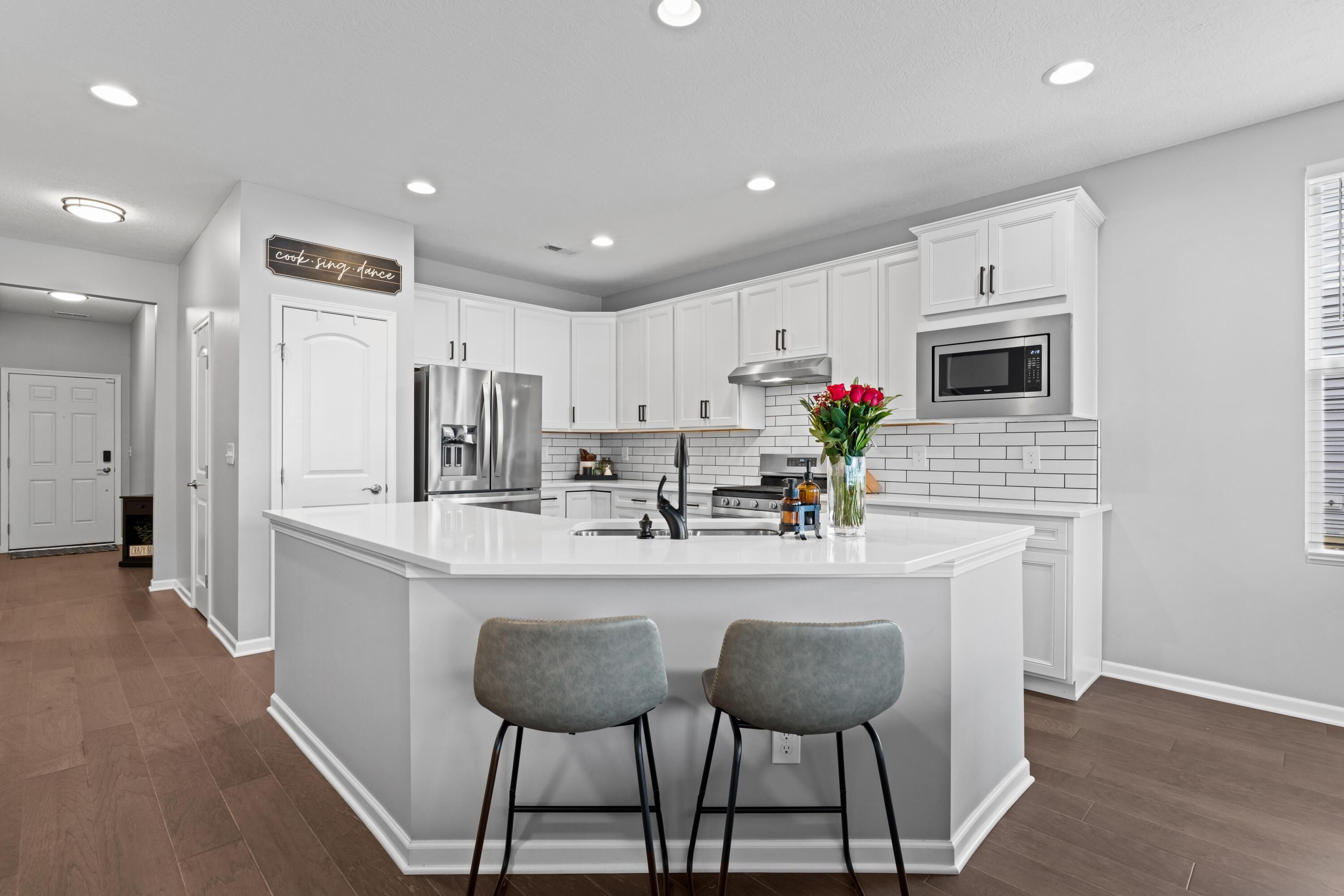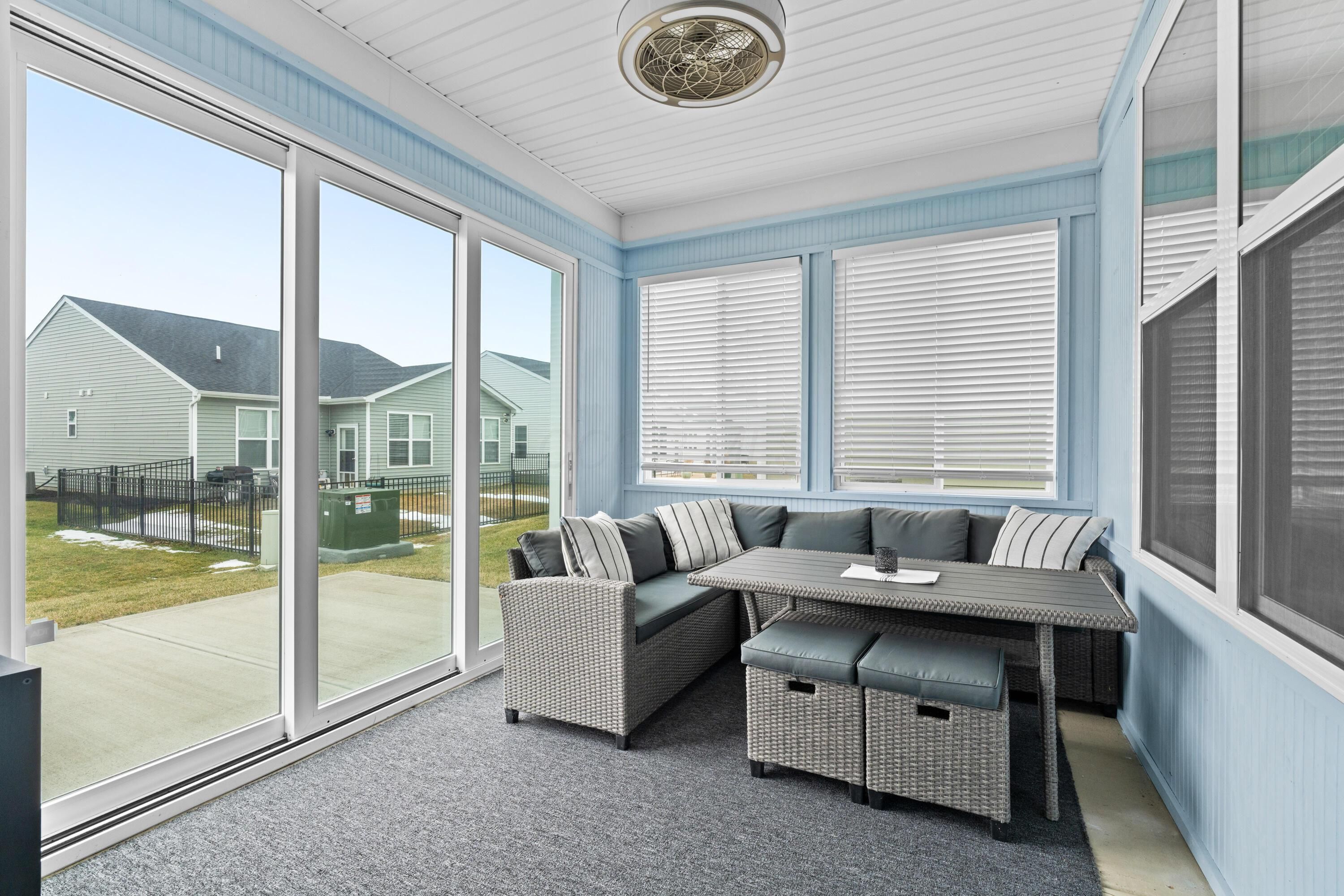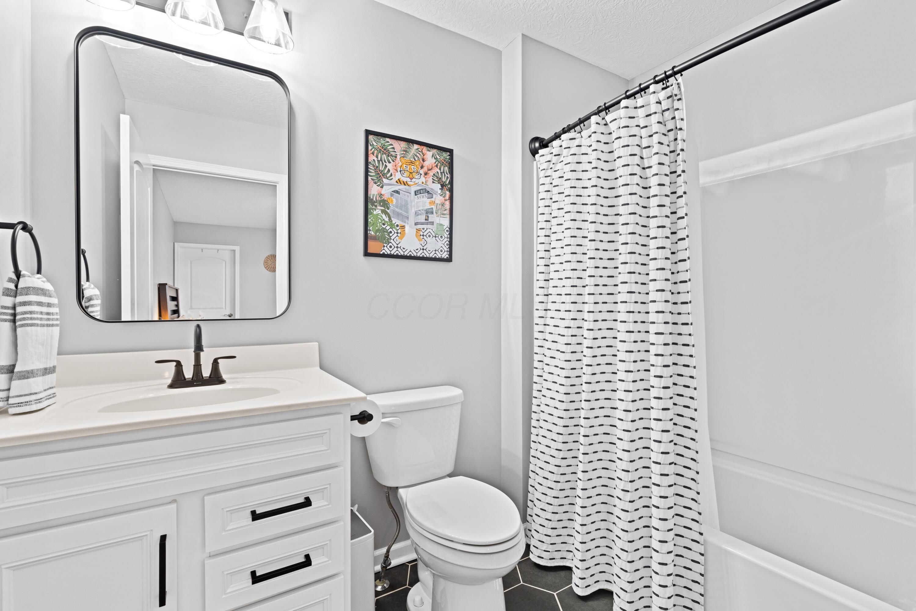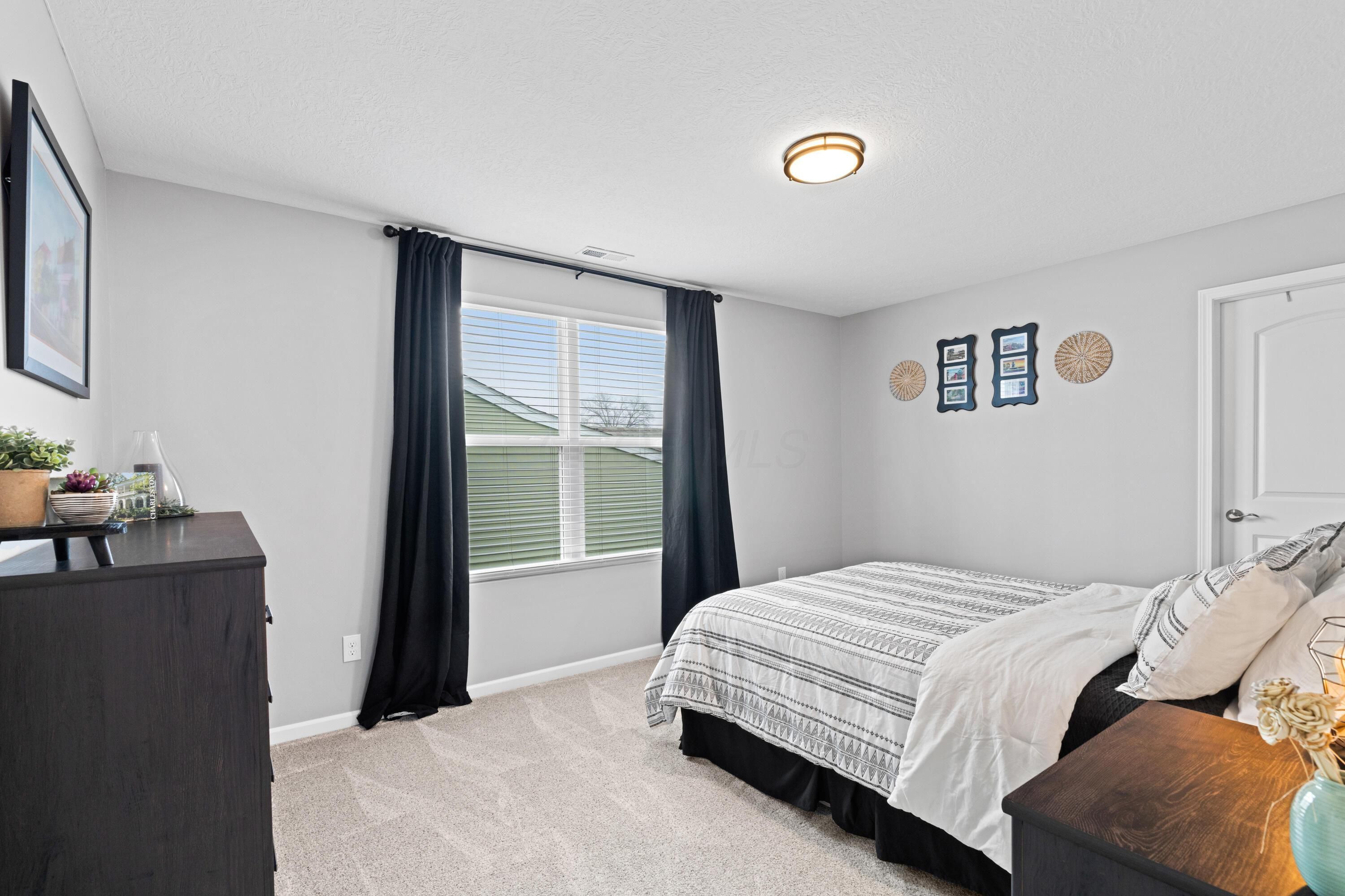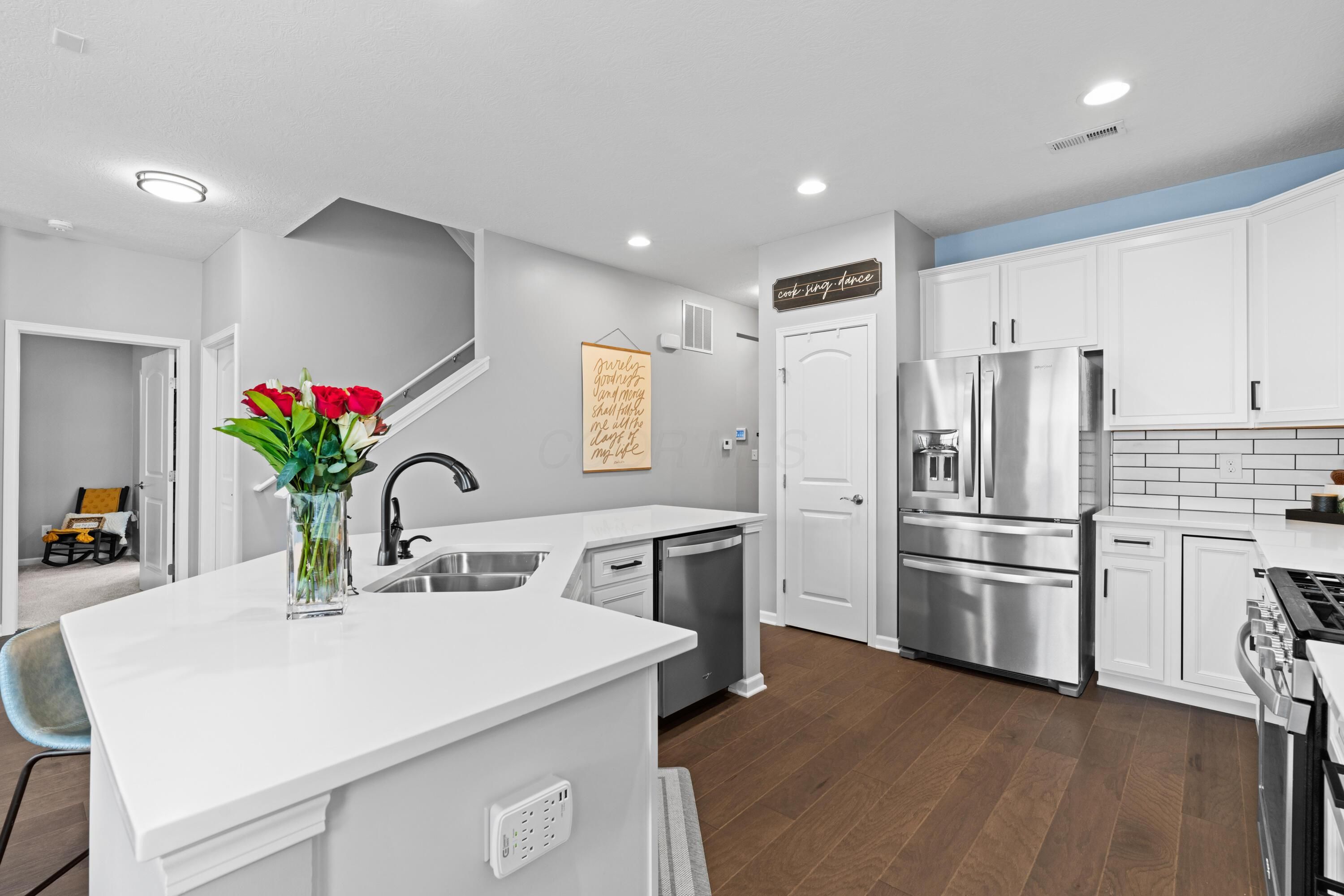 Welcome to this freestanding condo/patio home. Stylish open concept Pulte Blue Rock model in the Preserve at Rocky Fork with extensive upgrades throughout! Engineered hardwood floors and a fireplace in the living area. New tile in all the bathrooms and laundry. The primary suite offers a double-bowl marble vanity, 35' cabinet, and an upgraded tiled shower with semi-frameless glass and built-in seat. The second floor serves as a private suite with a large bedroom, living area, full bath, and walk-in closet. The kitchen features an angled island with bar seating, new tile backsplash, 42' cabinets, quartz countertops, and a Whirlpool stainless appliance package including a gas range. After market improvements include a barn door to the laundry with added storage cabinets, custom closets in bedrooms and pantry, and a Sun Craft 3-season room with windows, tongue-and-groove wood walls, mounted TV, and a 9' custom collapsible sliding door leading to an additional patio. Two-car attached garage. Lawn care and snow removal included. Prime location near parks, and walking paths, with quick freeway access.
