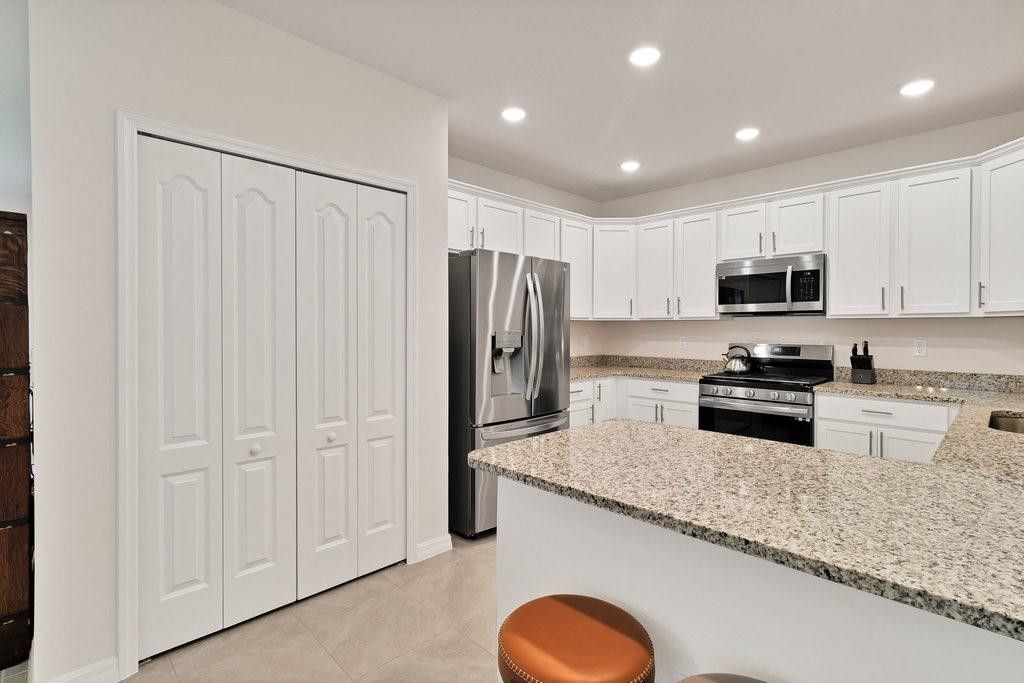 Live the carefree life of Harmony Reserve, a 55+ gated community offering many amenities, including an award-winning clubhouse, pool, hot tub, fitness, pickleball & more. This 2023 Villa 3 Bed-2 Bath Hibiscus Villa, 1,415 sq ft, offers a serene & private lanai w/ pond views to enjoy morning coffee & evening libations. The large kitchen offers Granite Countertops, SS Appliances & Natural Gas Cooking. Good-sized main bedroom has a walk-in closet & fully tiled walk-in shower + double sinks too. Ceramic tile floors throughout, Impact Windows, tankless WH, Gutters & an irrigation system round out this home nicely.