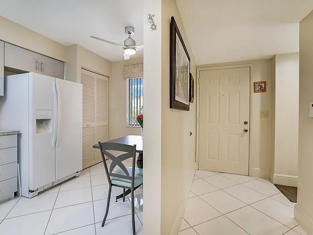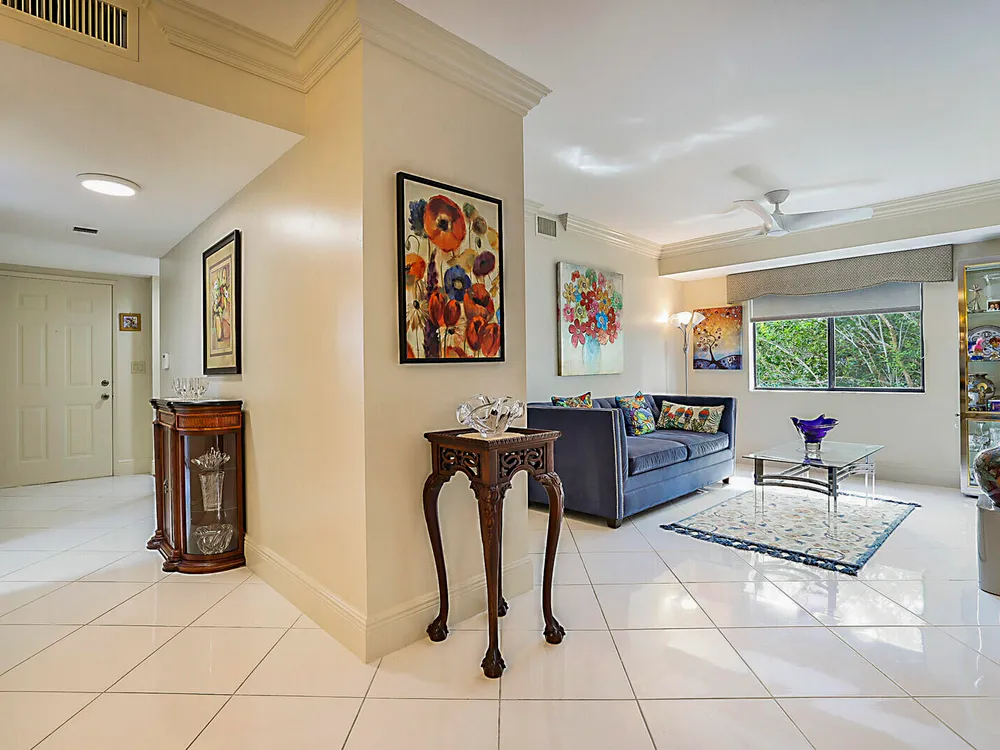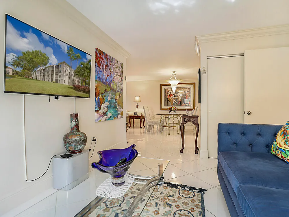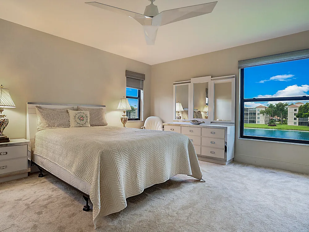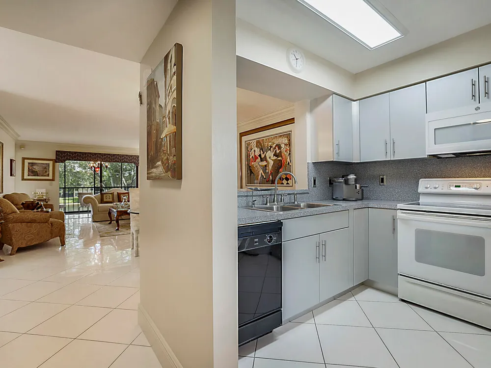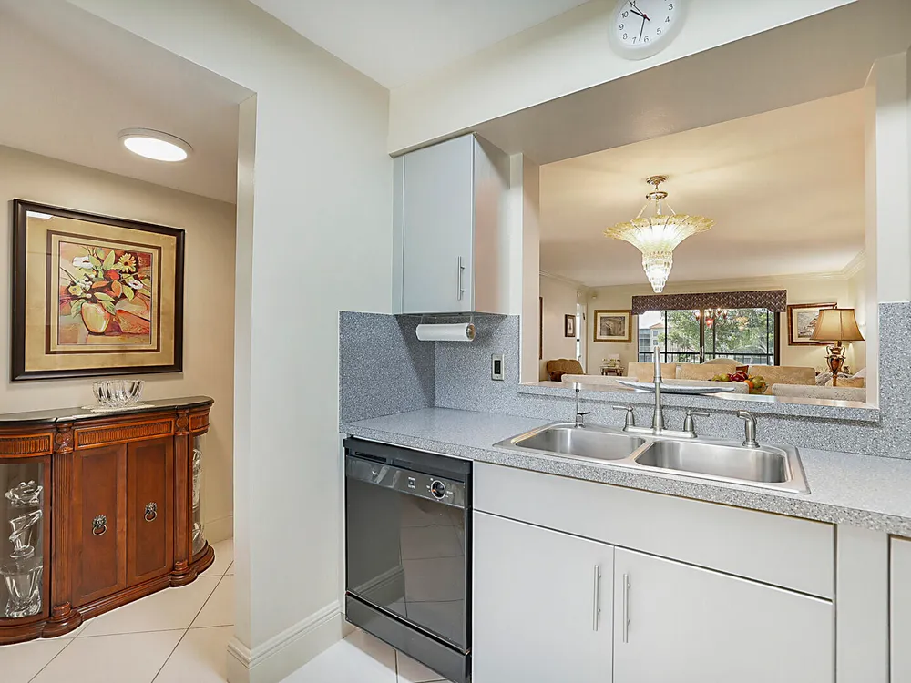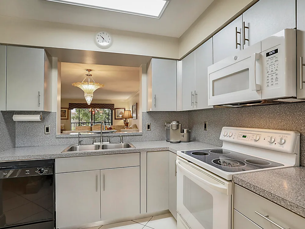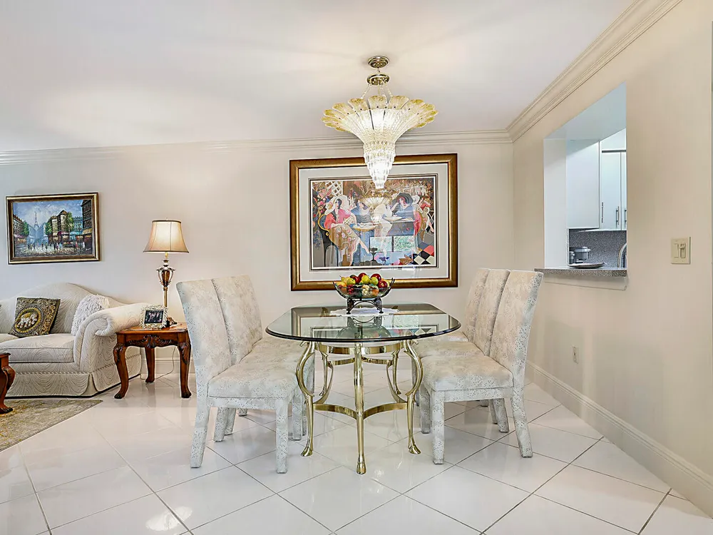 Live every day like you're on vacation in this beautifully designed condo that blends style, comfort, and serene water views. From the moment you step inside, you'll be greeted by a bright, open living space with gleaming tile floors, crown molding, and an airy flow that's perfect for relaxing or entertaining. The elegant dining area sparkles under a crystal chandelier, setting the tone for unforgettable gatherings. The updated kitchen offers plenty of cabinetry, sleek counters, and a pass-through window for easy conversation while cooking. Both bathrooms have been updated to a modern elegant style. Wake up to peaceful water views from the master bedroom, then savor your morning coffee on the screened back patio overlooking the water and lush green space. With its tasteful finishes,