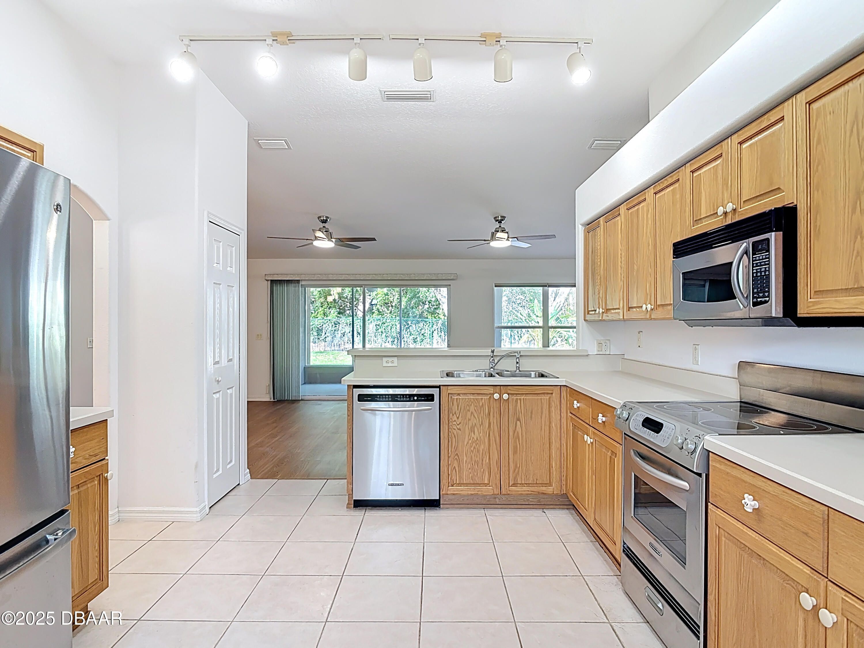 WOW REDUCED 10K TO GET HER SOLD! Welcome to Your New Home in the Heart of Port Orange! The nicely landscaped front yard and welcoming front covered porch add to the home's charming curb appeal, making this the perfect place to call home. Step inside to find soaring vaulted ceilings, a split-bedroom floor plan for added privacy, and a spacious eat-in kitchen with breakfast bar open to the living area that's perfect for entertaining. The primary suite is a relaxing retreat, featuring a jacuzzi tub, two walk-in closets, and a linen closet for added storage and convenience. A screened lanai leads to a beautiful pavered stone outdoor entertaining BBQ patio—perfect for relaxing evenings or weekend gatherings. Recent updates include a new A/C (2020), hot water heater (2024), and roof (2021) - offering peace of mind for years to come. You'll also appreciate the indoor laundry room with a utility wash tub, making daily chores a breeze, and hurricane shutters to put your mind at ease. Located in one of Port Orange's most highly desirable neighborhoods, this beautifully maintained home sits in the sought-after school zone for Spruce Creek High School, Sweetwater Elementary, and Creekside Middle School. Just minutes from top-rated schools, shopping, dining, entertainment, hospitals, Daytona International Speedway, and the World's Most Famous Beach - this home has it all! Don't miss your chance to live in this fantastic Port Orange location - schedule your tour today!