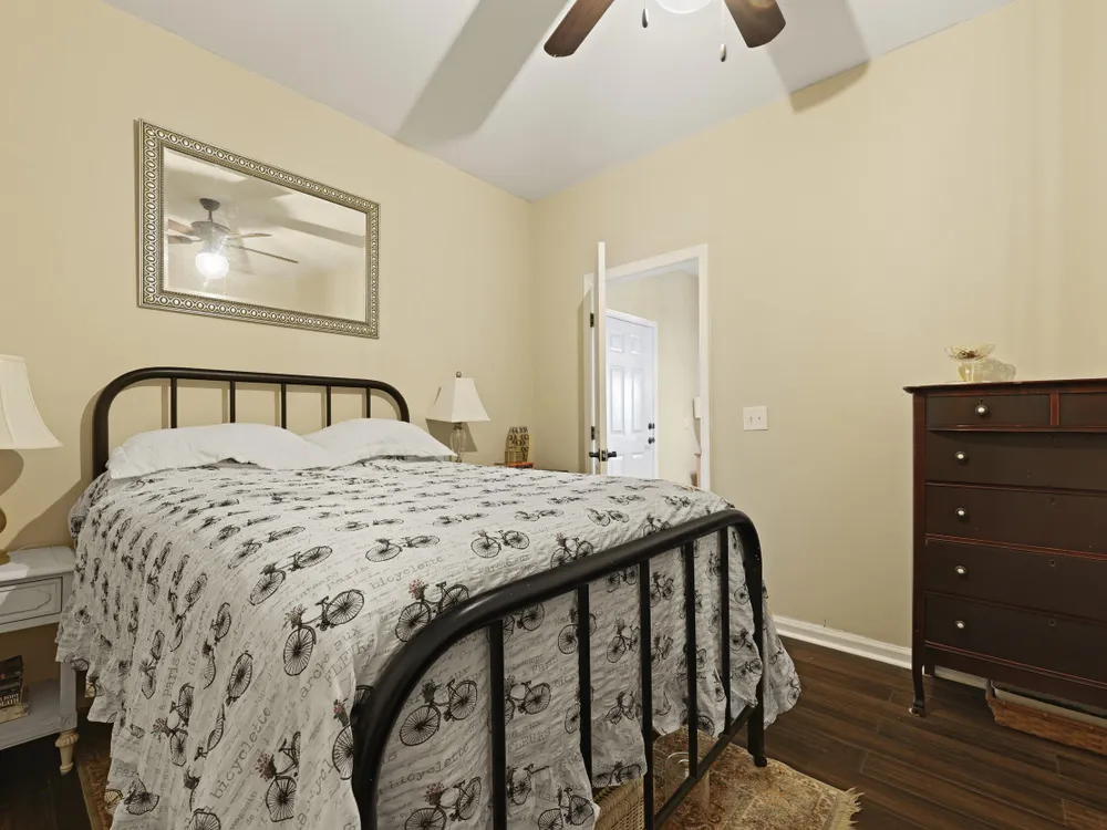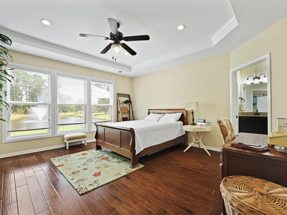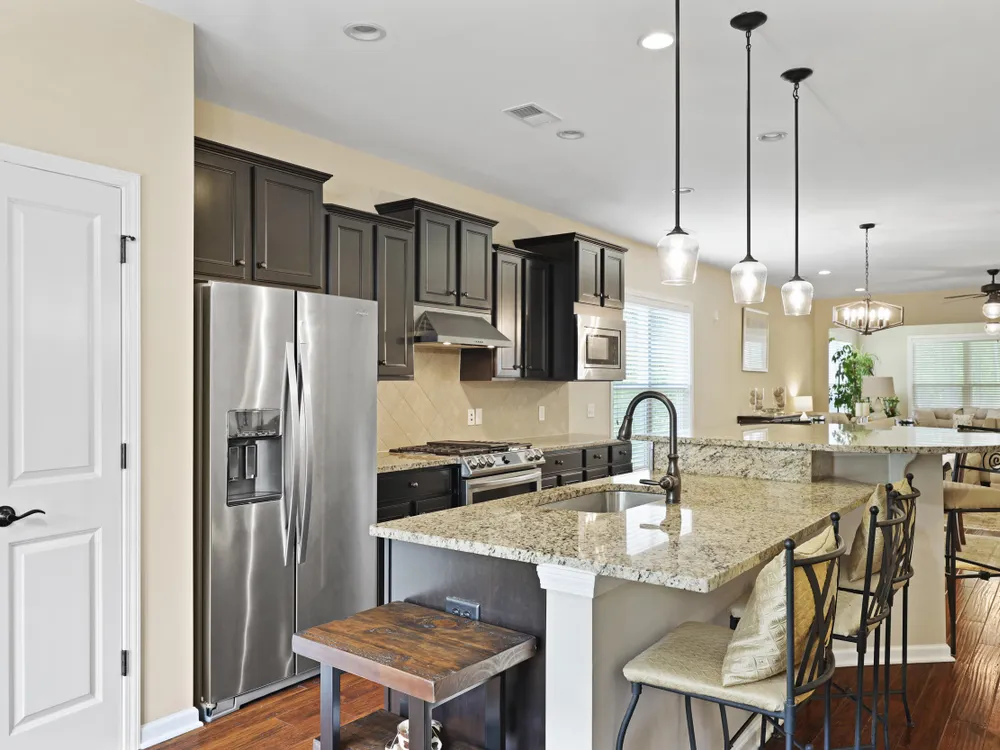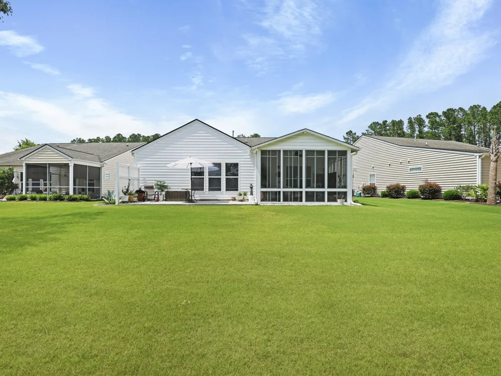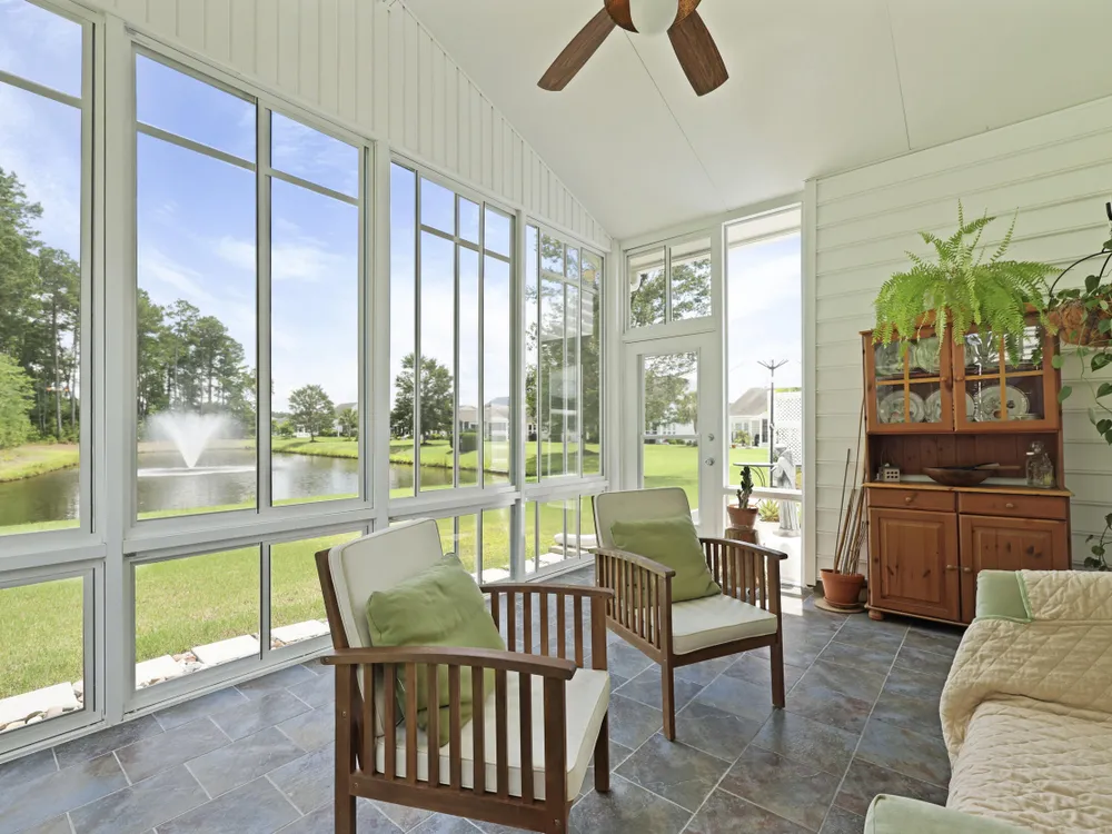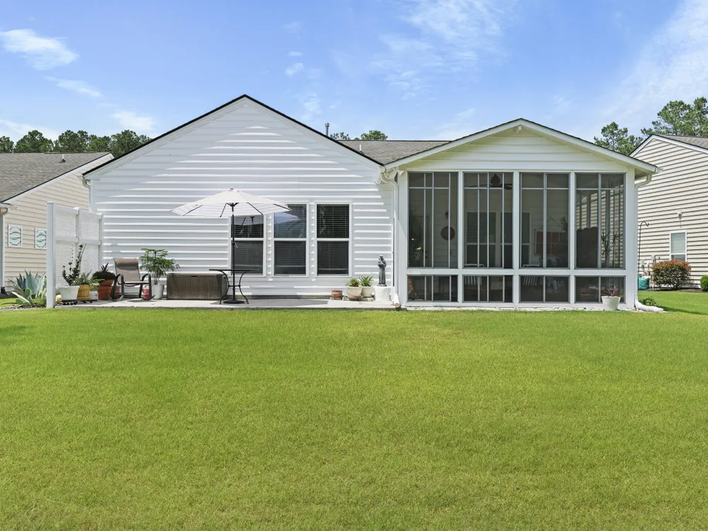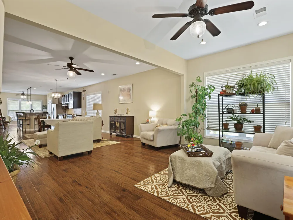 Premium location in Del Webb! Tucked at the end of a quiet cul-de-sac, this Kendall Park model backs to a sparkling pond and buffer of woods, creating a private, nature-filled sanctuary you'll enjoy year-round.Interior Highlights2 beds | 2 full baths | Flex room with closet--ideal for an office, craft studio, or occasional third bedroom.Open concept main living with sightlines from the kitchen to dining, great room, sunroom, and beyond.Hardwood floors throughout--no carpet anywhere.Chef's kitchen: oversized granite island, gas range, subway-tile backsplash, pantry, plus a morning room with built-in granite desk & upper cabinets.Split bedroom layout keeps the guest suite and fully tiled bath privatedown its own hall. Luxurious primary retreat: tray ceiling, lagoon views, dual-sink granite vanity, water closet, tiled walk-in shower, and an oversized walk-in closet. Dedicated laundry room with tile flooring, shelving, and washer/dryer on storage pedestals. Outdoor & Structural Features Bright sunroom flows to an expansive tiled screened porch fitted with year-round Eze-Breeze windowsperfect for morning coffee or sunset happy hours. Two-car garage with screened door, pull-down attic ladder to floored storage, and an interior drop-zone with large closet. Tankless water heater for endless hot water and energy efficiency. Community Perks Living in Del Webb Cane Bay means access to a 20,000-sq-ft clubhouse, indoor & outdoor pools, fitness center, pickleball and tennis courts, bocce, nature trails, and an active calendar of clubs and eventsall just minutes from shopping, dining, and historic downtown Charleston. Move-in ready and meticulously maintained, this home delivers the low-maintenance lifestyle you've been seeking with the privacy and views you deserve.