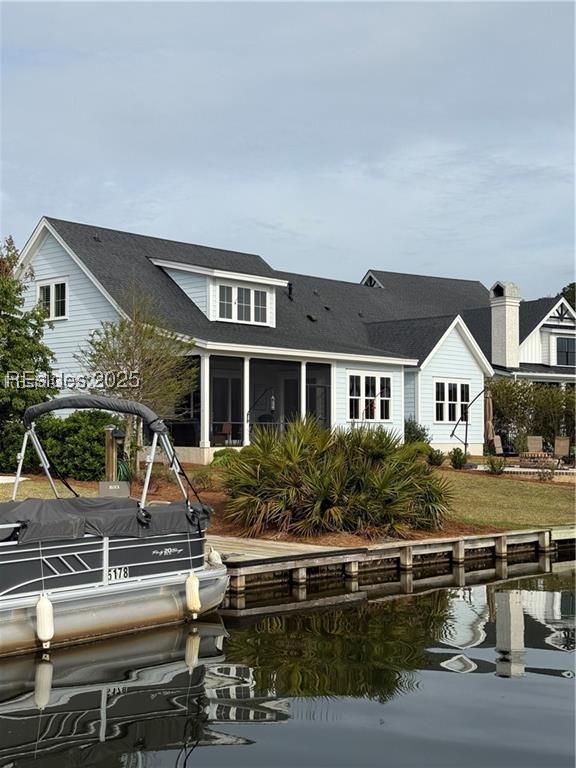 There IS something about the water! Sooth your senses with nature on this waterfront 3BR/3BA Charmer with Private Dock and Long Lake Views. This custom crafted waterfront home offers stunning, long-range views of Hampton Lake and a private dock, perfect for tying up your pontoon boat, kayak or skiff. This 200+ acre lake provides opportunities to fish, sail or motor to the private community dock and dine at Backwater Bill's Restaurant. Thoughtfully designed and custom built, it features reclaimed hardwood floors, granite countertops, stainless steel appliances, and a dedicated home office. The kitchen includes an oversized pantry and ample cabinetry, blending style and function. A cozy gas fireplace adds ambiance to the living space, while foam insulation enhances energy efficiency throughout the home. The walk-in attic provides convenient extensive storage. Your primary suite is located on the main floor and includes a walk-in closet with convenient laundry room. A second bedroom with a full bath is also on the first floor, ideal for guests or multi-generational living. Upstairs, you'll find the third bedroom, a full bath, and a 166 sq ft bonus room, perfect for a media room, home gym, or possible 4th bedroom. Additional highlights include a garage with A/C unit, epoxy-finished floors, and a 220V-50A outlet ready for EV charging. This home is a rare combination of charm, comfort, and functionality, perfectly positioned to make the most of Hampton Lake's extensive amenities. Hampton Lake features full fitness center and spa, Lazy River pool, Crystal Lake for swimming, Pickleball, Tennis, Basketball and Bocce courts and popular Beer Garden for socializing. Numerous Clubs provide many opportunities to enjoy the Lake Lifestyle including access to many local golf courses with your neighbors.