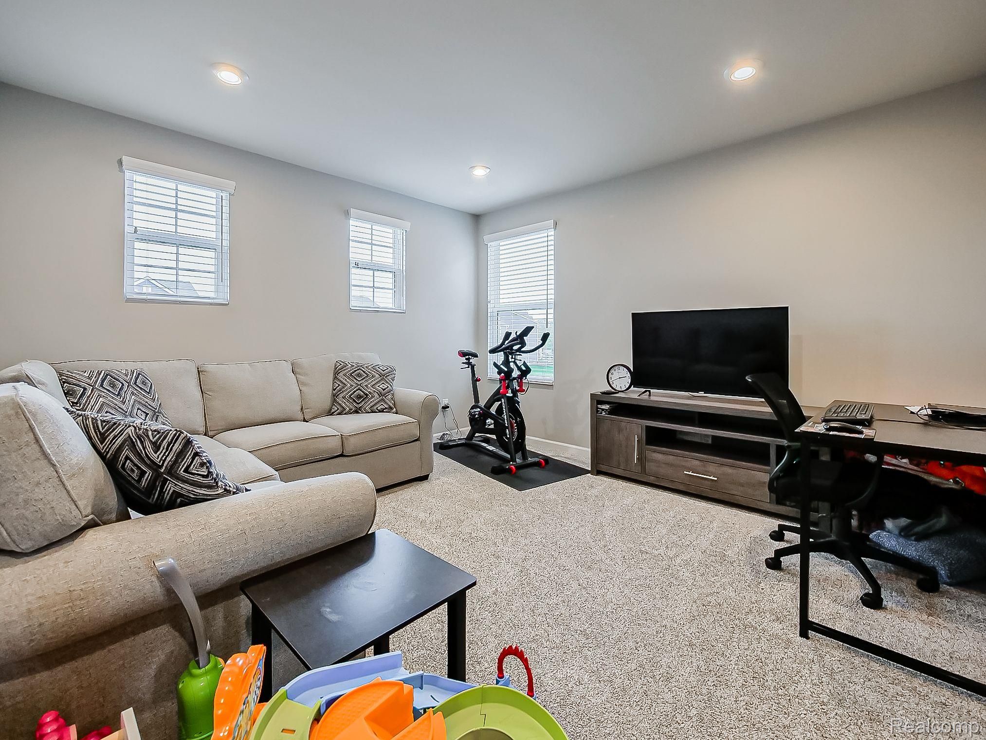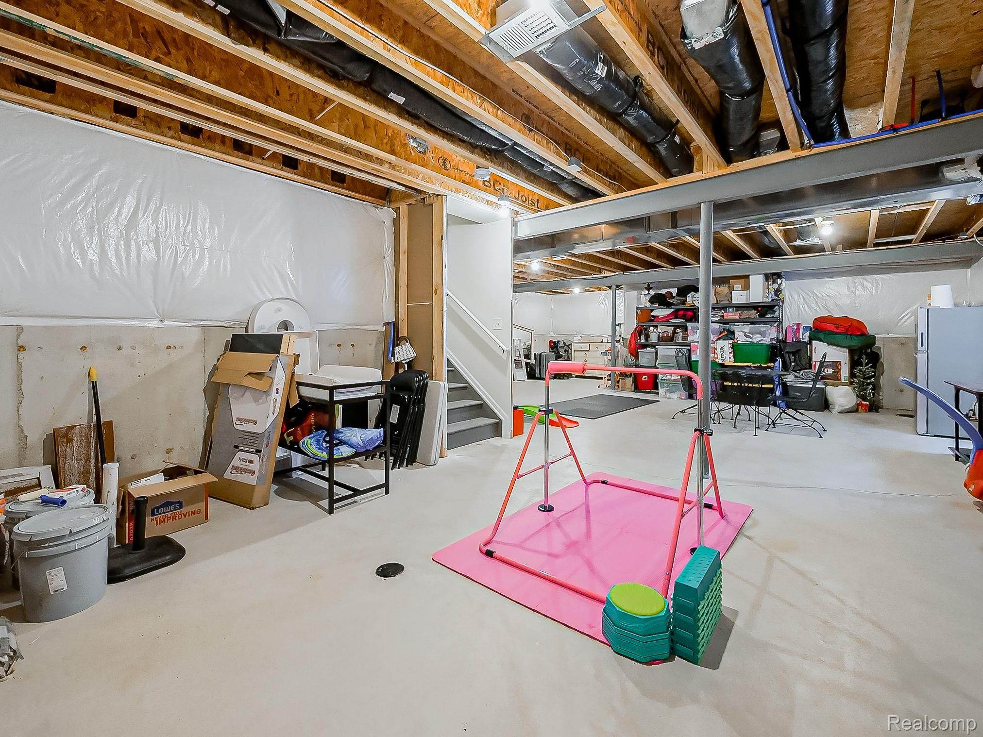 Welcome to this almost brand-new 4 bedroom, 2.5 bath home built in 2022, offering modern luxury and thoughtful upgrades throughout! Nestled in a family-friendly neighborhood with walking trails and shared green spaces, this home also includes a spacious bonus room/office on the main level—ideal for remote work or a playroom. The open-concept floor plan seamlessly connects the kitchen, dining, and living areas, featuring upgraded 9-foot ceilings on both the main floor and basement for a grand, open feel. The gourmet kitchen is equipped with Samsung smart appliances (refrigerator, oven, microwave, and dishwasher, and washer/dryer), quartz counter tops, and flows effortlessly into the expanded living room thanks to a bump-out upgrade. Relax in the sunny 4-season sunroom, ideal for year-round enjoyment. Upstairs, you'll find a spacious loft for additional entertainment or relaxation space. Laundry room is also placed conveniently upstairs equipped with matching Samsung smart washer and dryer and laundry sink. Retreat to the luxurious master suite with a custom walk-in shower, rainfall showerhead, and an oversized walk-in closet. This smart home includes a smart thermostat, smart garage door, smart front door keypad, and WiFi boosters—all controllable remotely for comfort and convenience. The spacious basement is ready for finishing or perfect as extra storage. Additional highlights include a water softener (installed in 2022), air conditioner unit, and energy-efficient construction. Located less than 2 miles from downtown South Lyon, you’re close to dining, shopping, and entertainment, with easy access to everything the area has to offer.