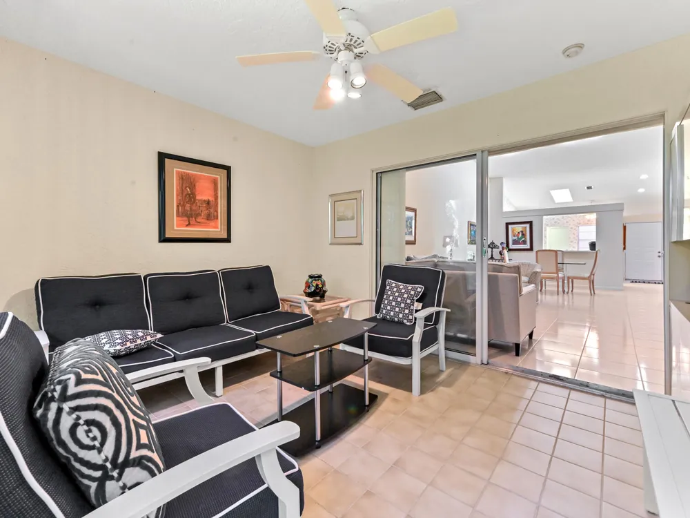 Enjoy every day in this villa located in the desirable Huntington Pointe. Eat-in kitchen offers plenty of cabinet & counter space. Relaxing owner's suite includes 2 closets & en suite bath with seated vanity & step-in shower. Florida room is a lovely, A/C space. Huntington Pointe is an active community with a 24/7 manned gate. The clubhouse has been renovated & provides residents with endless activities. It is a diverse entertainment complex with a heated indoor pool. There are also 3 satellite pools. Residents can participate in special interest clubs & attend fitness classes. Fitness center includes aerobics & dance studios, spa, sauna. Outdoor activities include pickleball courts, tennis courts, bocce ball, and shuffleboard courts. The on-site Village Cafe serves breakfast & lunch.
