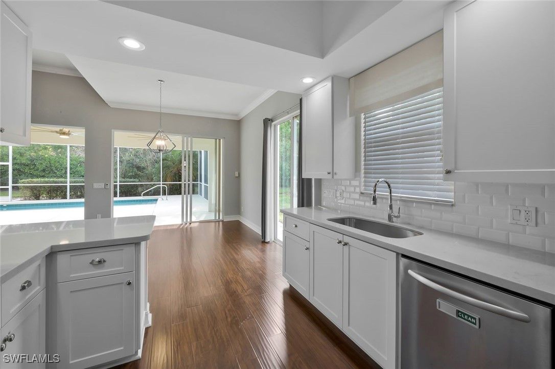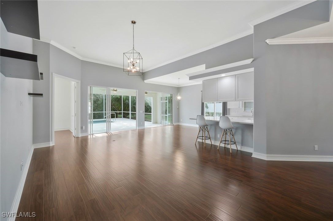This remarkable and totally customized and redesigned spectacular 3/2+den Oakmont Model in IslandWalk Divosta Signature Community. This designer detailed home features wood floors throughout entire home, together with Beautiful Custom Quartz Granite Countertops, Stainless Steel Appliances , Custom tile backsplash & Plantation Shutters. Great Room features 12 ft. ceilings great for entertaining. Crown molding thru out. Step out to you heated pool and large screen in lanai great for BBQ's. You will be glad you chose a home that features DiVosta steel reinforced poured concrete construction and is located within easy walking or biking distance to all the Island Walk TownCenter amenities. LOW FEES and NO CDD make this Award Winning Community with Town Center amenities and see the resort and lap pools, 8 har tru tennis courts, state of the art fitness center, putting green, bocce courts, post office, restaurant, gas station, car wash, hair and nail salons. Come Enjoy Paradise !!