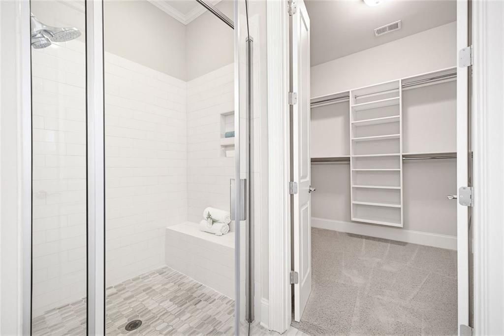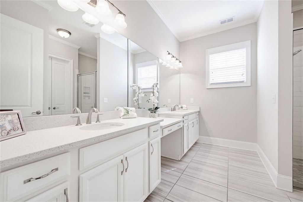 The Overlook at Old Atlanta is an award-winning 55+ Active Adult community located in the desirable Johns Creek/Suwanee area. Residents benefit significantly from Forsyth County’s exceptionally low senior property taxes. This elegant Coventry floor plan offers an oversized, open-concept living area designed for both comfort and sophisticated entertaining. Main Level: Primary Suite features a spa-inspired bath with zero-entry shower, separate vanities, and a private water closet. You’ll also love the very spacious custom closet. Gourmet kitchen with beautiful custom cabinetry, lots of quartz countertops, a granite island, premium stainless-steel appliances, including double ovens, gas cook top and a vent hood. Additional space on main level includes a secondary bedroom with a private ensuite, a dedicated private office, a formal dining room, a butler’s pantry, and a walk-in pantry. Upper Level with a third guest suite and a private full bath. Flex Space is versatile and ideal for a home gym, craft room, or secondary office. This home combines luxury finishes with a functional layout, perfectly situated in one of the region’s most sought-after communities. The Overlook at Old Atlanta offers many diverse activities: Canasta, bridge, mah-jongg, book club, ladies's lunch, men's group and MORE. You'll be walking distance to the wonderful community amenities, including: pool, patio with outdoor fireplace, club house, fitness center, tennis courts with PICKLEBALL, dog park, community garden, and private trail to Chattahoochee Pointe Park. Gated community is located close to medical, shopping, restaurants and entertainment. You will love this upscale home and all the benefits of this Active Adult 55+ Community. Chattahoochee Pointe Park has 3+ miles of trails, 18 holes of disc golf, playground, picnic pavilions, and a non-motorized boat launch along the Chattahoochee River.