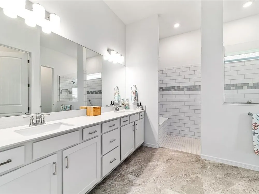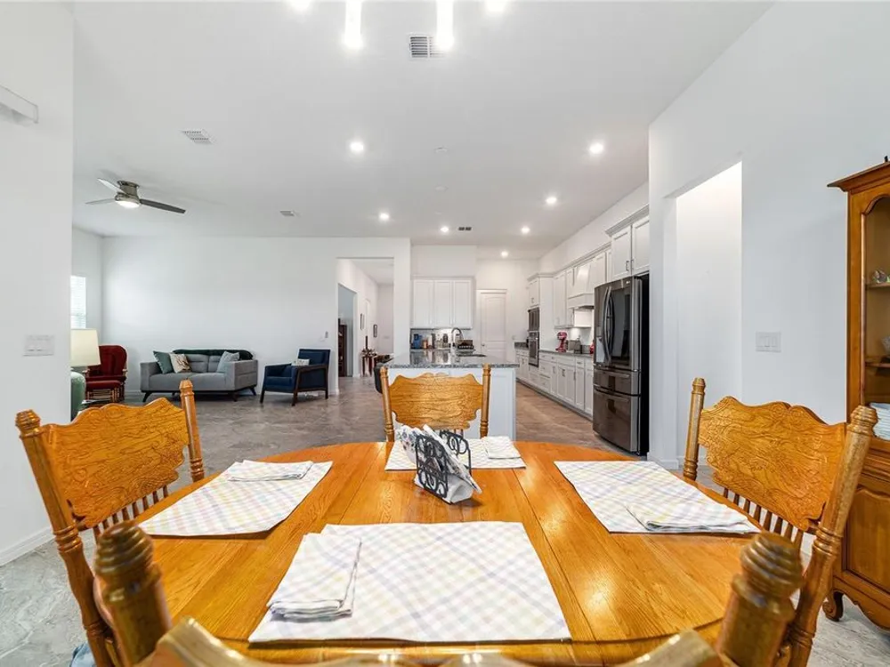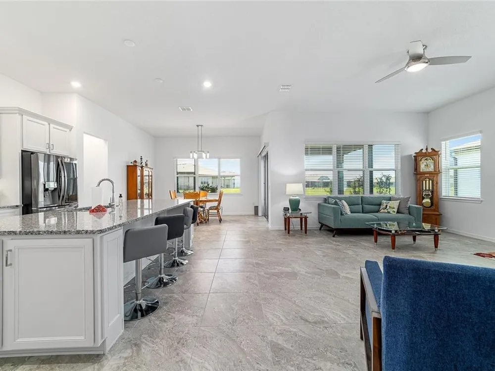- Ceiling Fan(s), High Ceilings, In-Wall Pest Control, Kitchen/Family Room Combo, Open Floorplan, Solid-Wood Cabinets, Split Bedrooms, Stone Counters, Walk-In Closet(s)