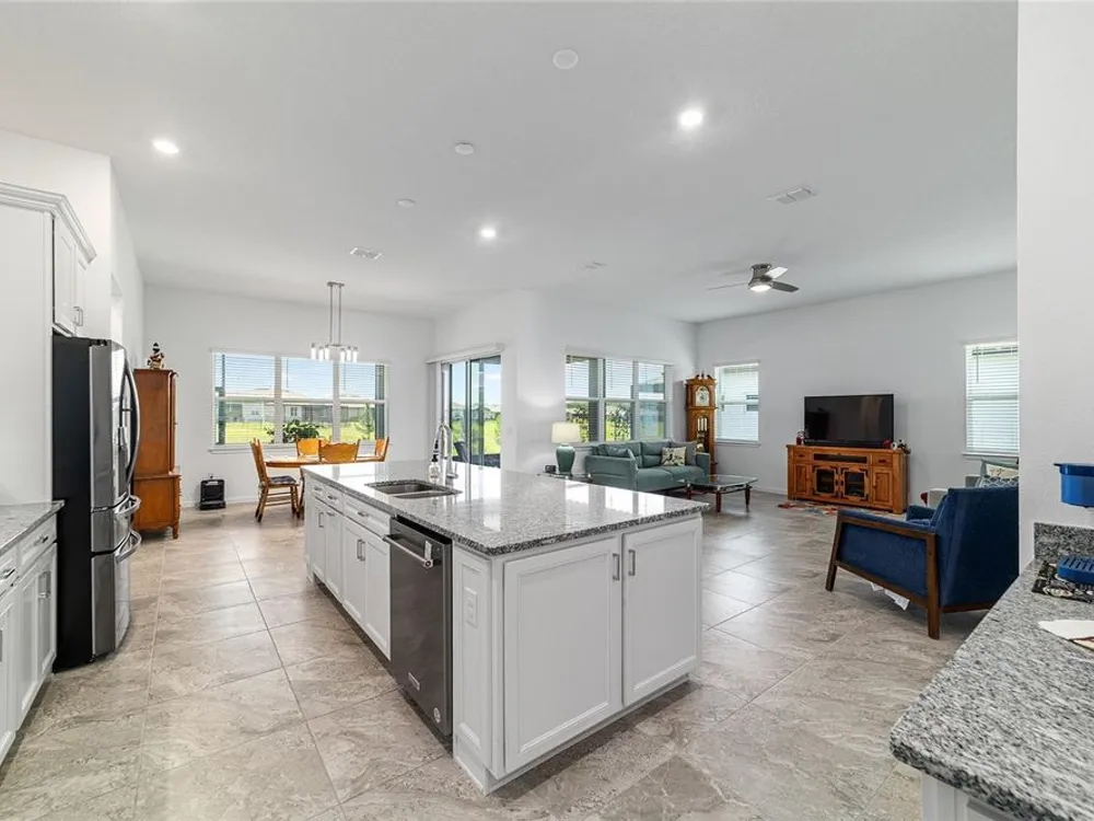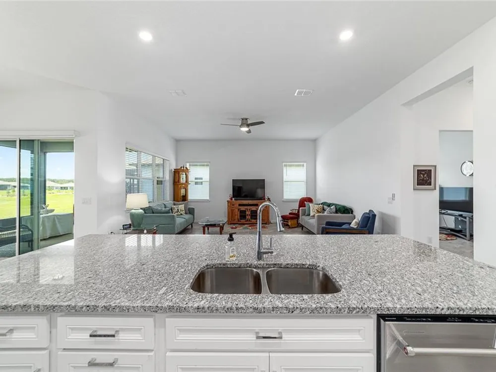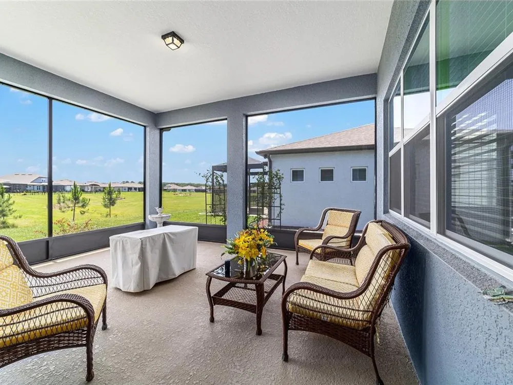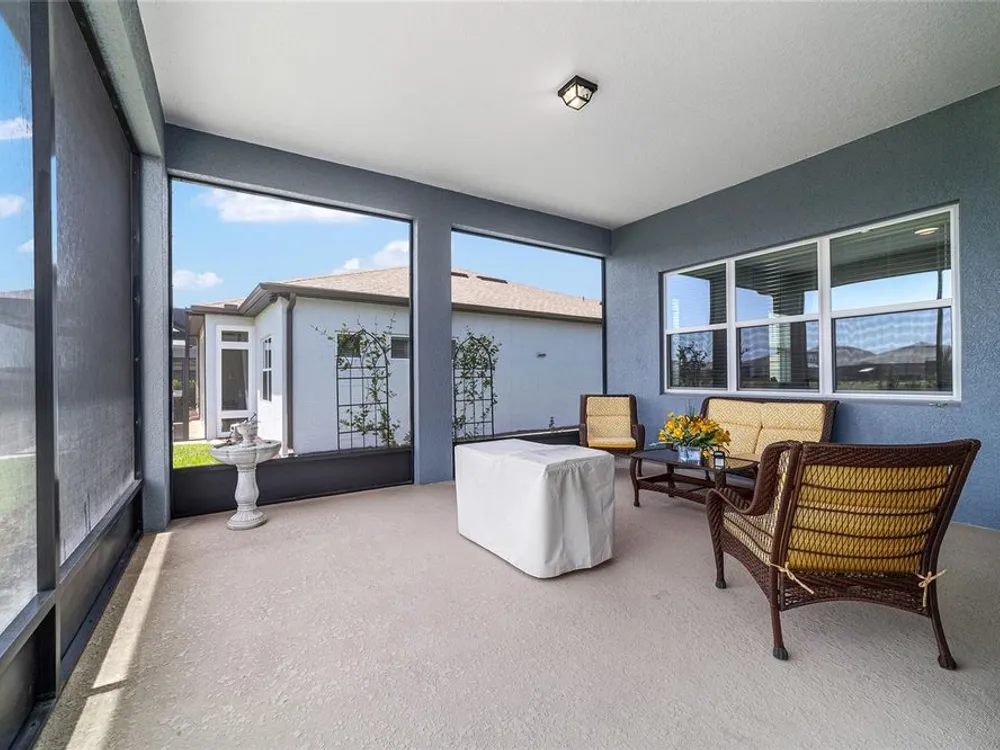 Motivated Seller! Why buy new when you could own this spacious 3 bedroom, 3.5 bath RENOWN in LEXINGTON II. Premium lot on the dry retention pond. What a perk to buy a brand new home with NO CONTRUCTION FOR THE NEXT 2 TO 3 YEARS - NO DUMPSTERS - NO PORTABLE OUTHOUSES TO LOOK AT AND NO CONSTRUCTION TRAFFIC BLOCKING THE ROADWAYS! There is so much storage in this fabulous floorplan with 3 bedrooms – all with ensuites – and a powder room is one spectacular home! Located on a premium lot with no “kissing lanais”, this home has over 2800 square feet with a large, screened in lanai and a backyard paver patio! In addition to the paver patio, the current owners have added landscape curbing around the home as well as, outside soffit electrical for your decorating needs. The home is completely constructed with ceramic tile throughout which has been professionally sealed! The home has an open floor plan; volume ceilings and the bedrooms are all part of the split bedroom plan. All ceiling fans are on remote controls. The fabulous kitchen has a WALK IN PANTRY, beautiful cabinets with top and bottom pullouts and so many of them! The home is a blank canvas for you to come in and make it your own. The oversized garage with a golf cart garage has a slop sink and is plumbed for a water filtration system or water softener. Del Webb’s Stone Creek community is one of the finest in the area and off the beaten path! Come check out this outstanding neighborhood and this fabulous home today!