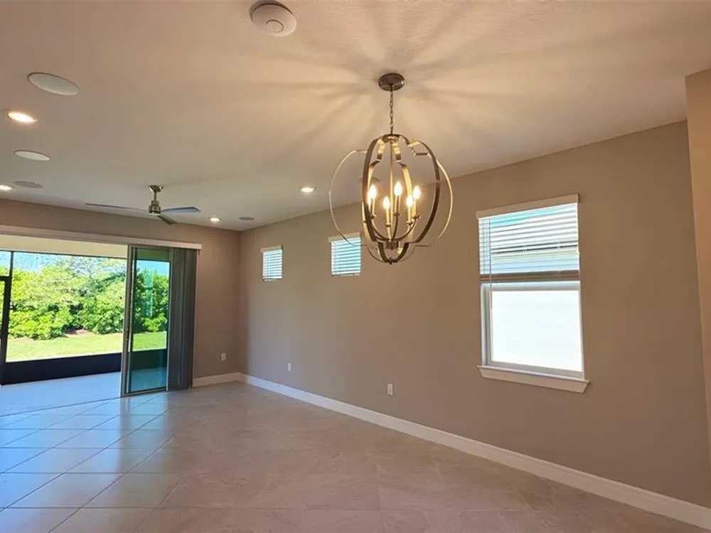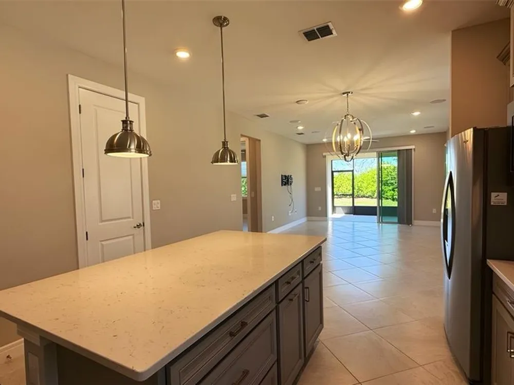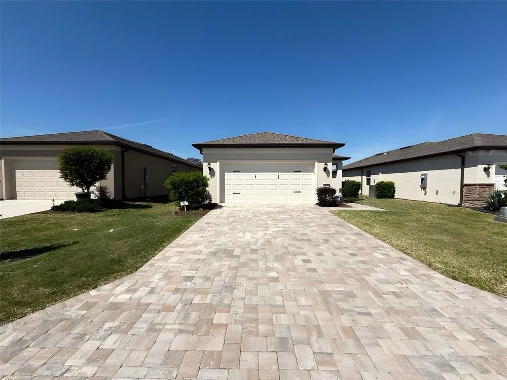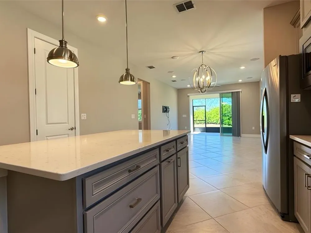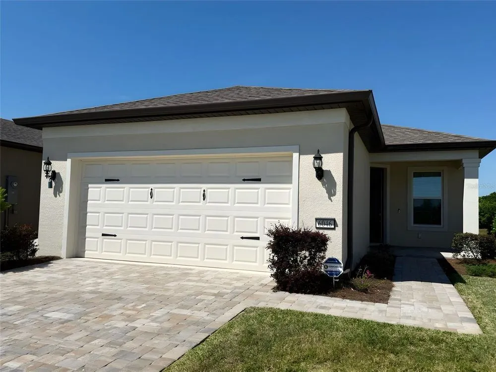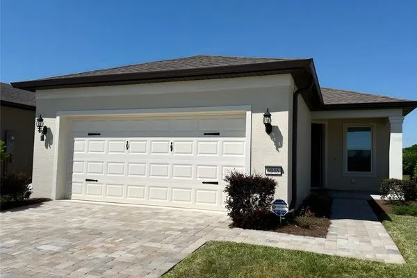 BEAUTIFUL 2022 CONTOUR MODEL in the luxury community of Del Webb Stone Creek. This home is perfect whether you are looking to downsize or enjoy as a snowbird. This open floor plan has many upgrades with high ceilings and a premium lot which backs up to a cattle pasture providing privacy. Pavers on driveway and porch entry is a great start, entering the home you notice tile throughout set diagonally with larger baseboards and taupe color walls. Kitchen has quartz countertops with decorative backsplash, an island with drawers and cabinets for extra storage, crown molding on cabinets. Kitchen Aid and Whirlpool appliances, soft close drawers, USB charging outlet and pendent lighting which are a nice touch. This is a smart home which can control many home options. All rooms come with paddle fans and window treatments. If you need an office or craft room, no problem, the flex room comes with double privacy doors and plenty of natural light. Both bathrooms have upgraded shower tiles and soft close drawers and cabinets, nickel fixtures throughout. Spacious living room, TV mount included with two way entry slider doors and surround sound all pre wired and ready to go! Washer, dryer included and laundry room has cabinets. Wake up to a nice view in the sizeable master bedroom and pocket door leading into the the master bathroom. Enjoy being out on the screened lanai which has been freshly painted and there is room to extend if desired. The garage has many improvements such as epoxy flooring, utility sink, hybrid water take, two shop lights on ceiling and a whole house water softener. Extra lighting with flood lights in the back and gutters all around this home. The HOA takes care of the yard, giving you more freedom to have fun and enjoy all this community brings to its residents. This home is like new, no need to wait to build and the upgrades will cost much more now! Stone Creek has heated pools, spa and jacuzzi, golf course, golf carting, lakes and ponds, two clubhouses, pickleball, shuffle board, corn hole, bocce ball, tennis, basketball, softball, dog parks and much much more! This home is priced to sell!