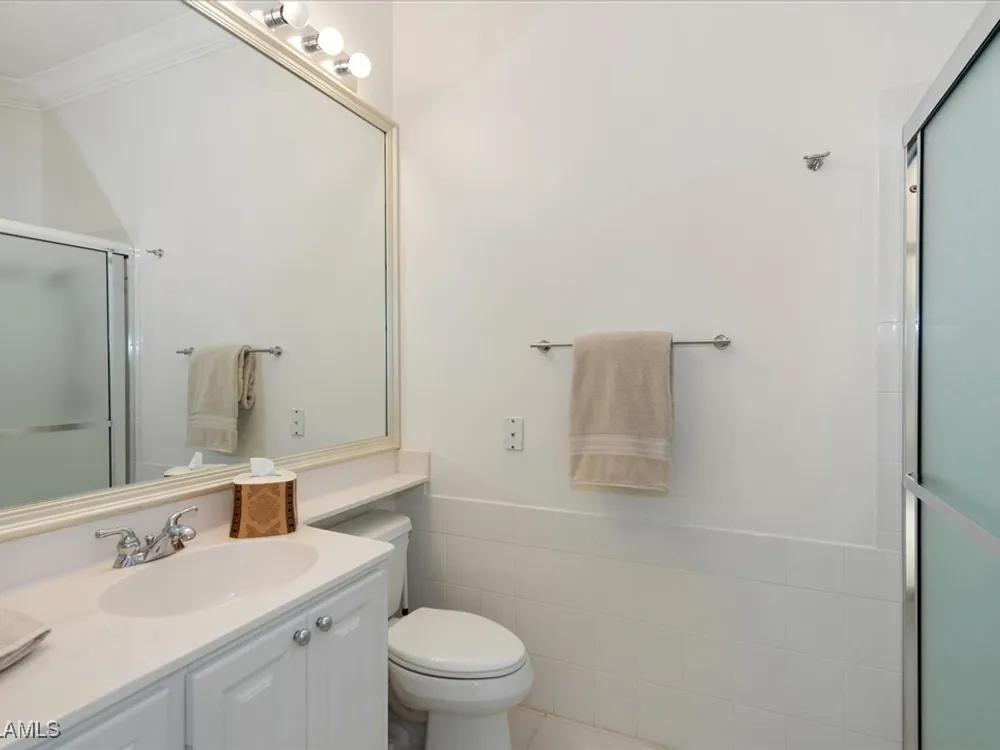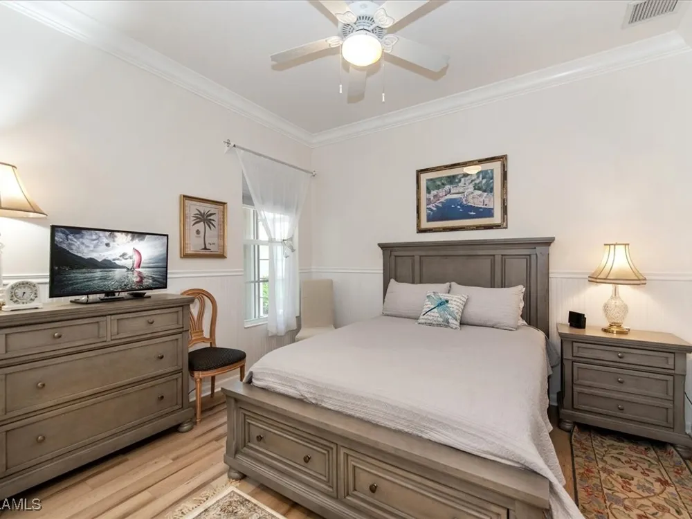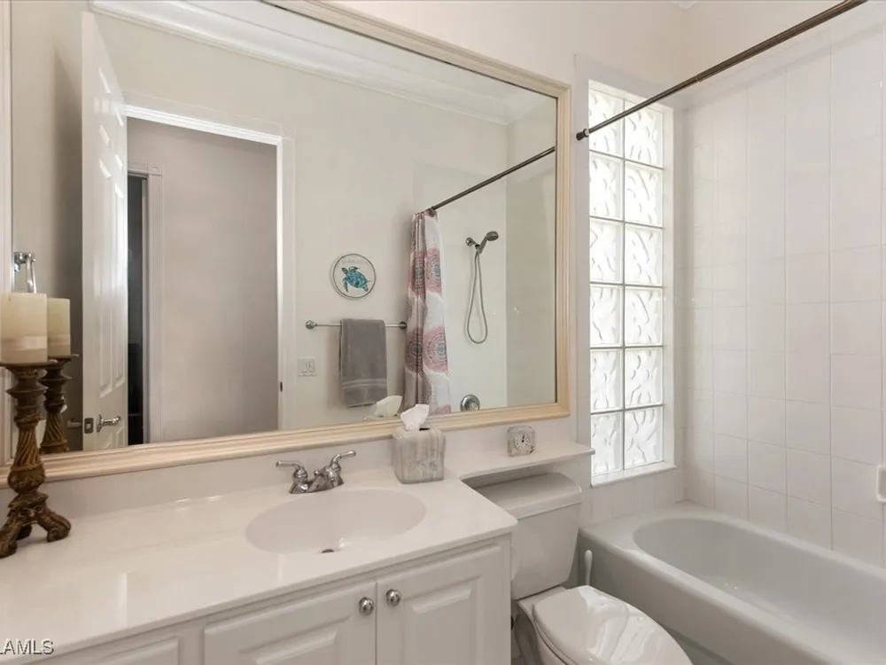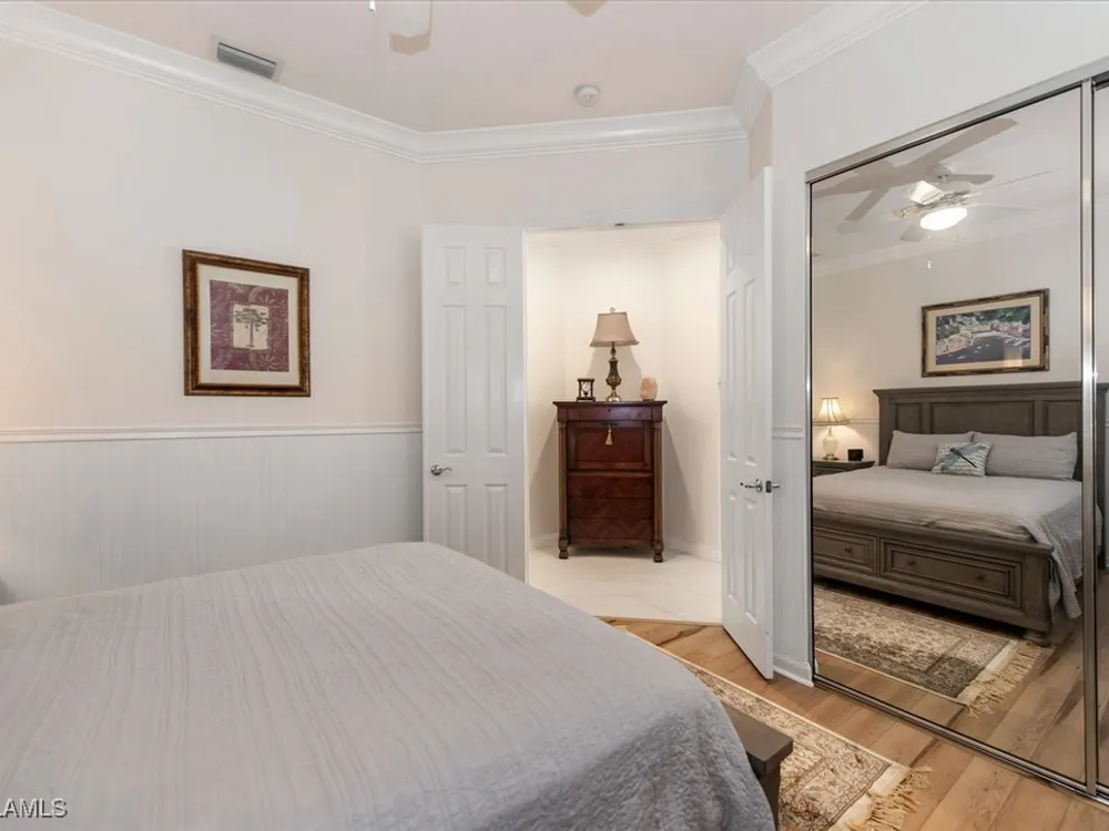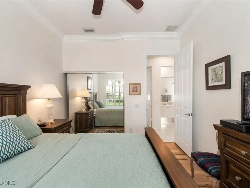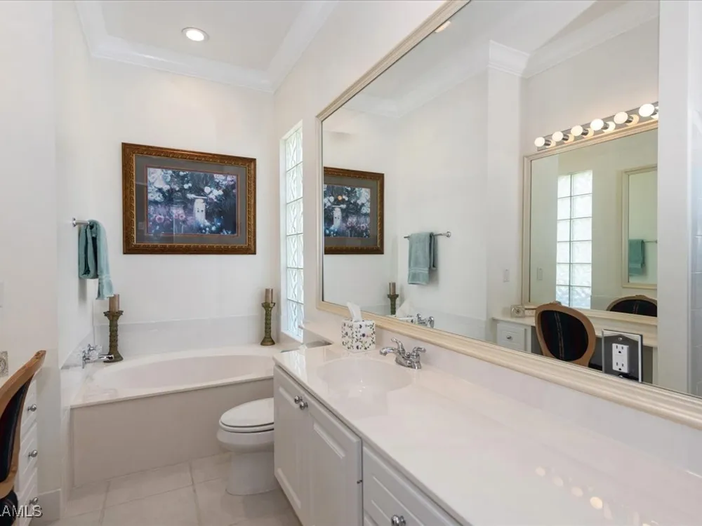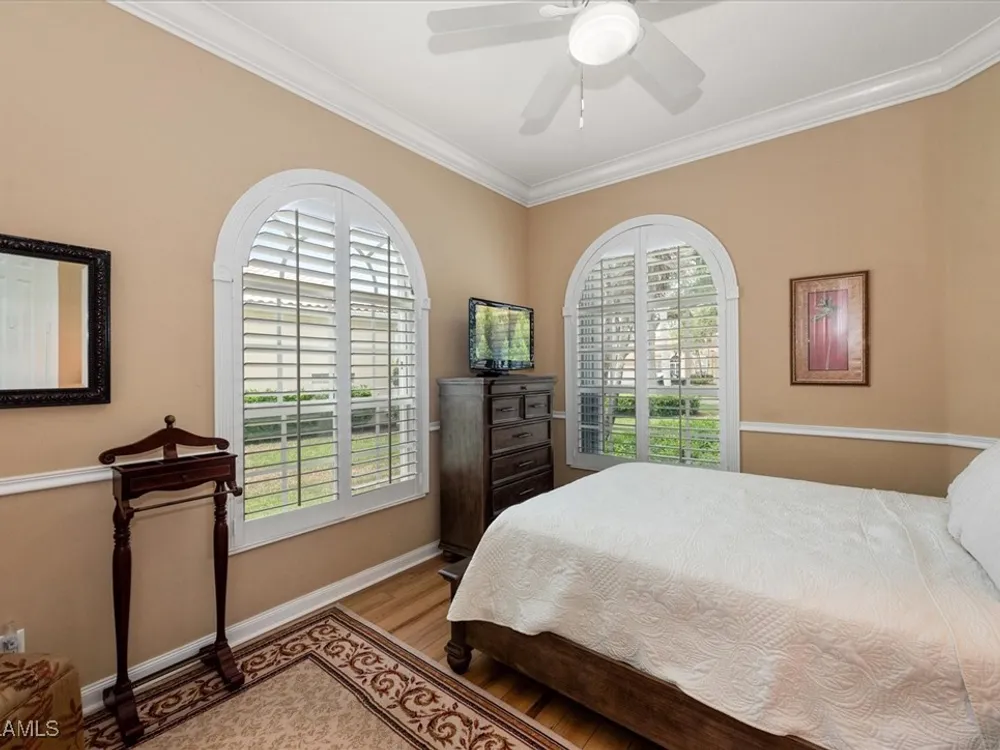 Welcome to this former DiVosta model home. The Oakmont features an open floor plan with an extended living room and includes 3 bedrooms plus a den, which has converted into a 4th bedroom. It is ideally suited for family living and is highly comfortable. The master bedroom offers his and her bathrooms with a jacuzzi soaking tub. The kitchen, equipped with new stainless steel appliances (2022), is perfect for entertaining and opens up to the great room featuring 12-foot volume ceilings. The laundry room, with a new washer and dryer (2021), provides ample cabinet storage and a sink for added convenience. The property offers several upgrades, these include luxury vinyl plank flooring in all bedrooms and tile flooring throughout the main areas of the house. The windows feature plantation shutters, and the sliders have custom window treatments. Crown molding is present throughout the entire home, which has been recently painted on the interior. Additional features include wood trim, chair rails, a custom built wall unit, screened front-entry enclosure, and freshly painted exterior. The roof and gutters were replaced in 2020, offering years of protection and peace of mind. The home also includes a central vacuum system, hurricane shutters, whole-house power surge protector, and a spacious screened lanai area with new Travertine tiles. A retractable electric awning provides a wonderful outdoor entertaining space. The private backyard is beautifully maintained with flower gardens and offers significant privacy as it backs up to a landscaped area. Island Walk offers a resort lifestyle with affordable HOA fees that include cable and internet services. This prestigious community features numerous exceptional amenities such as seven Har-Tru tennis courts, four pickleball courts, croquet and bocce courts, a resort-style pool and lap pool, drive-through car wash, gas station, nail salon, hair salon, post office, and an excellent restaurant. The main town center building encompasses a library and a state-of-the-art fitness center. Conveniently located in North Naples, this community is close to schools, shopping centers, beaches, and various other attractions
