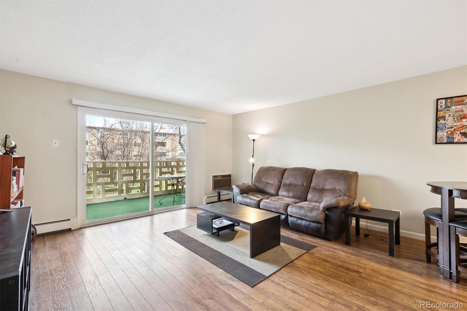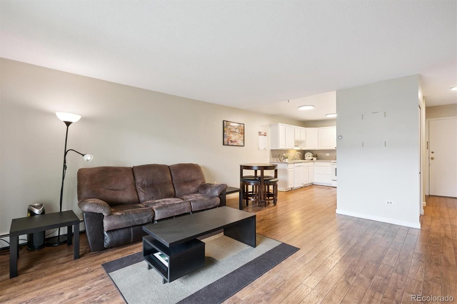 Beautiful courtyard views from an updated Windsor Gardens corner condo! $5000 Bonus incentive from Seller to Buyer at closing! This home is the 945 sf floorplan, and includes 2 bedrooms, 1 bathroom, and additional 1 car detached garage! Updated and move right in- enjoy remodeled kitchen with white cabinets, white appliances, corian counters/backsplash, and updated fixtures. Bathroom remodeled with large walk-in tiled shower, updated vanity, tile floors, and fixtures. Spacious primary bedroom with 2 wall closets. Living room spacious and open to kitchen. Lanai w/double pane slider door. Updated and neutral paint, baseboards, and laminate flooring thru-out. 1 wall ac unit in living room. Bonus storage room in building, and laundry room on same floor as condo. Move right in to this lovely condo! **Windsor Gardens is Colorado's Largest Age 55+ Active Adult Living Condo Community. Did you know? Monthly HOA Dues include annual property taxes! And heat, water, sewer, trash, round-the-clock patrolling community responders, full time onsite association management, grounds/building maintenance, and activities department. Enjoy clubhouse amenities such as fitness center, indoor/outdoor pools, hot tub, sauna, billiards, library, craft rooms for ceramics, sewing, woodworking, and 9 hole par 3 golf course and onsite restaurant both open to the public. Stay engaged with a wide array of activities, clubs, and events scheduled every month. Additional features include garden plot program, private walking trail and nature preserve, and RV/Boat storage. The Highline Canal runs full length along south side of the complex. RTD Bus Stops located thru-out the community. FHA/VA approved. Close to restaurants, stores, shopping…Minutes to Lowry, Hwy 225, Cherry Creek…Easy access to DIA and downtown. Come see for yourself what Windsor Gardens has to offer. ©2021**