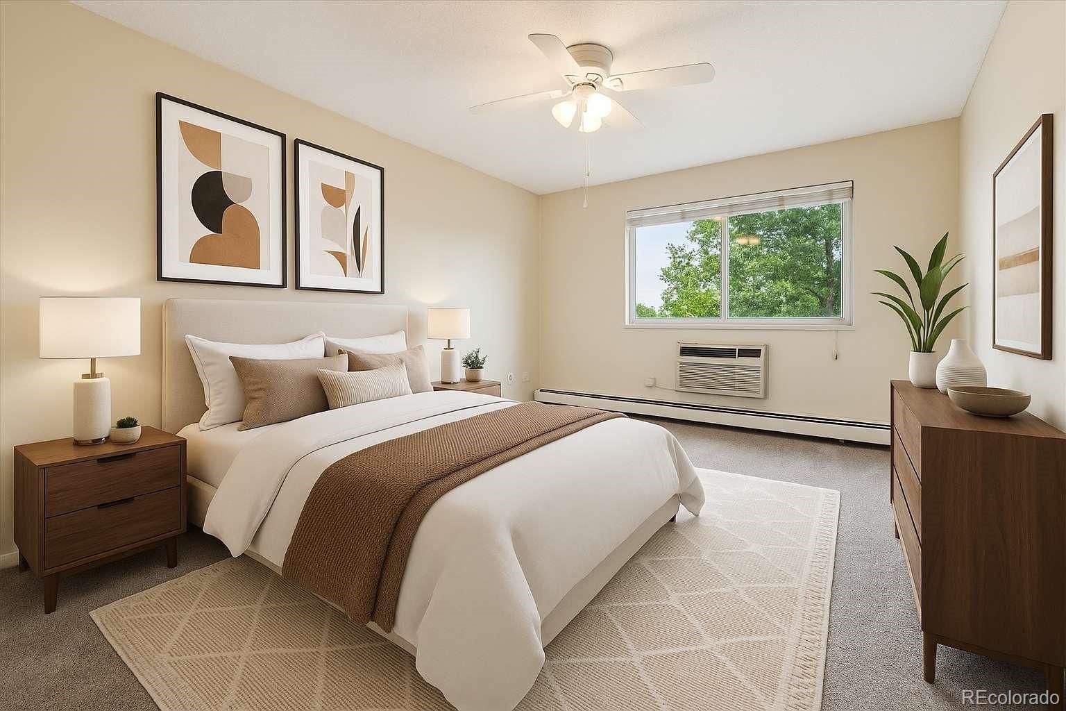 Great Price! Seller says SELL! Great Price for a 1550sf condo! New Updates Included! Rare opportunity to own a great floorplan that is updated & move right in condition! This condo includes 2 bed/2 bath, oversized living/dining room, multi-purpose flex bonus room. Updated kitchen w/ginger stained cabinets, granite slab countertops, tile backsplash, barstool seating, and stainless appliances. NEW updated bathrooms w/white shaker cabinets, quartz tops, & new fixtures. Detached garage w/opener! Primary bedroom oversized w/walk-in closet & en-suite 3/4 bathroom. Mix of LTV vinyl & newer carpet flooring. 3 wall a/c units included- 2 are brand new digital w/remote! Lanai w/Vinyl slider door, tile floor, & NEW Double Pane Vinyl glass/screen enclosure. All new interior 2 tone paint thru-out. Additional bonus storage room in building- right down the hall from condo! Spacious home w/many great features- worth checking this one out! **Windsor Gardens is Colorado's Largest Age 55+ Active Adult Living Condo Community. Did you know? Monthly HOA Dues include annual property taxes! And heat, water, sewer, trash, round-the-clock patrolling community responders, full time onsite association management, grounds/building maintenance, and activities department. Enjoy clubhouse amenities such as fitness center, indoor/outdoor pools, hot tub, sauna, billiards, library, craft rooms for ceramics, sewing, woodworking, and 9 hole par 3 golf course and onsite restaurant both open to the public. Stay engaged with a wide array of activities, clubs, and events scheduled every month. Additional features include garden plot program, private walking trail and nature preserve, and RV/Boat storage. The Highline Canal runs full length along south side of the complex. RTD Bus Stops located thru-out the community. FHA/VA approved. Close to restaurants, stores, shopping…Minutes to Lowry, Hwy 225, Cherry Creek…Easy access to DIA and downtown. Come see for yourself what Windsor Gardens has to offer. ©2021**