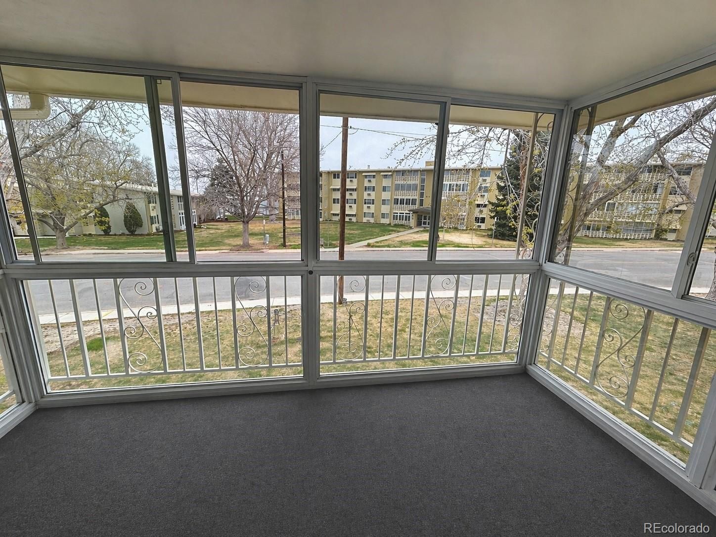 Great location- building next to clubhouse- steps to many amenities and activities Windsor Gardens has to offer! This condo is a 712 sf floorplan, with 1 bedroom, 1 bathroom, and a reserved parking space deeded with this property. The kitchen has updated blue painted cabinets, formica counters, tile floor, and white appliances. The bathroom has updates features white painted cabinets, tile floor, updated countertop, fixtures, mirror/light combo. Spacious bedroom with 2 closets. Other features include: neutral paint/carpet thru-out, glass/screen double pane vinyl enclosed lanai, 1 wall ac unit, and bonus storage room in building. This property is currently tenant occupied- looking for purchaser to takeover existing lease or work thru options where tenant may be able to relocate. **Windsor Gardens is Colorado's Largest Age 55+ Active Adult Living Condo Community. Did you know? Monthly HOA Dues include annual property taxes! And heat, water, sewer, trash, round-the-clock patrolling community responders, full time onsite association management, grounds/building maintenance, and activities department. Enjoy clubhouse amenities such as fitness center, indoor/outdoor pools, hot tub, sauna, billiards, library, craft rooms for ceramics, sewing, woodworking, and 9 hole par 3 golf course and onsite restaurant both open to the public. Stay engaged with a wide array of activities, clubs, and events scheduled every month. Additional features include garden plot program, private walking trail and nature preserve, and RV/Boat storage. The Highline Canal runs full length along south side of the complex. RTD Bus Stops located thru-out the community. FHA/VA approved. Close to restaurants, stores, shopping…Minutes to Lowry, Hwy 225, Cherry Creek…Easy access to DIA and downtown. Come see for yourself what Windsor Gardens has to offer. ©2021**