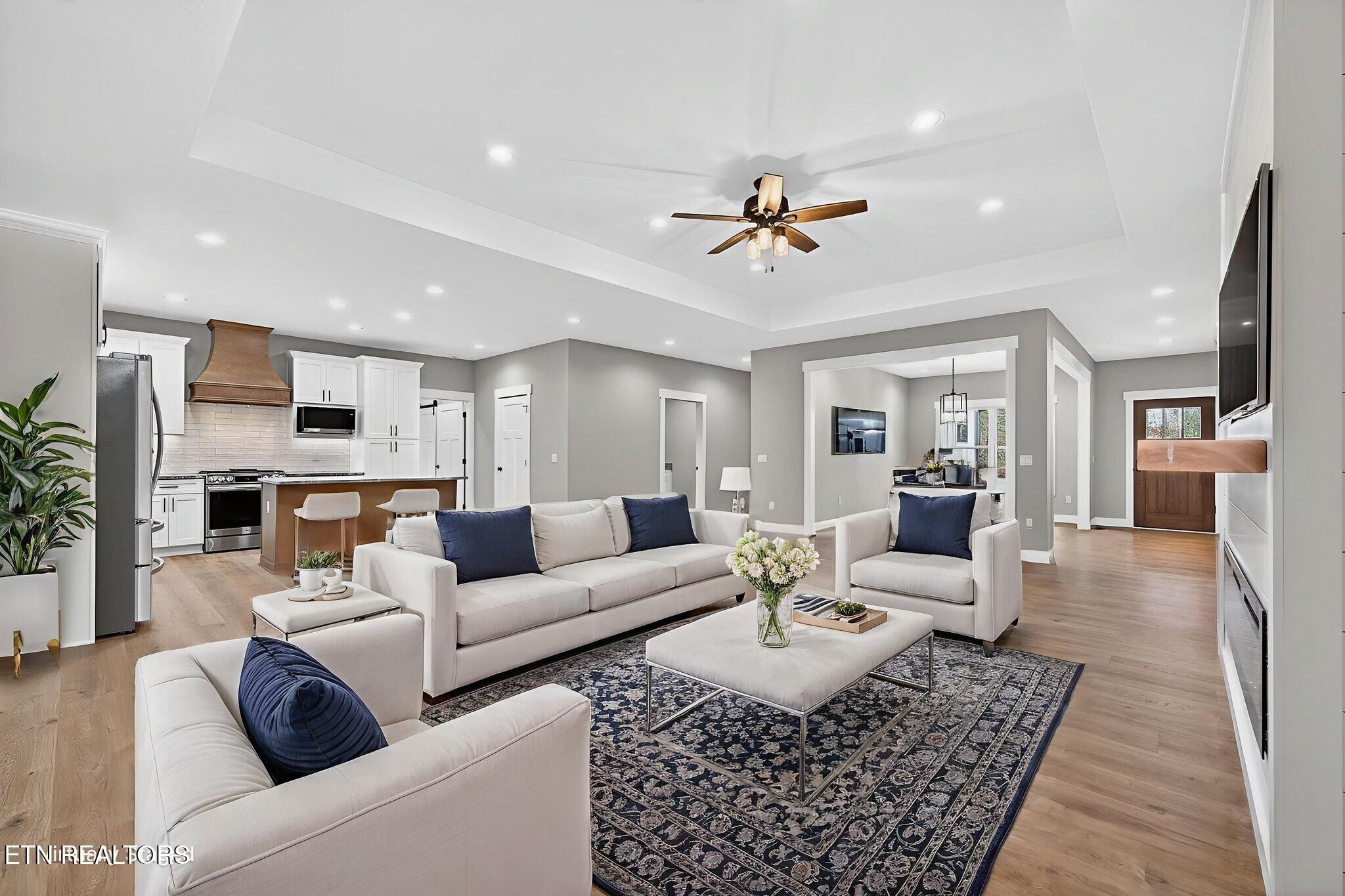 Quality-Built New Construction in Fairfield Glade Across from Dorchester Golf Club & Adult Pool! Beautifully crafted and thoughtfully designed, this brand-new 3-bedroom, 2-bath home offers 2,240 sq.ft of main-level living plus a 492 sq. ft basement workshop with both a garage door and man door. The exterior features a striking Hardie board and stone design accented by a stunning mahogany craftsman front door. Step inside to find luxury vinyl plank flooring throughout. a spacious formal dining room, and a large living room with a tray ceiling and gas fireplace. The gourmet kitchen showcases white cabinetry, solid-surface countertops, a subway tile backsplash, accent island, curved range hood, stainless-steel appliances, and a large pantry. Enjoy outdoor living on the 17'10 x 9'11 covered deck with a tongue-and-groove ceiling or fire up the grill on the adjoining 13'6 x 9'11 open deck featuring Trex decking and black textured railings. The primary suite includes a walk-in closet and a luxurious en suite bath with a beautiful tile shower, double vanities, and classic white cabinetry. Additional highlights include a three-car garage, concrete driveway, encapsulated crawlspace, and tankless gas water heater. All this in a prime Fairfield Glade location- offering the best in quality, comfort, and craftsmanship. (Buyer to verify all information before making an informed offer.)