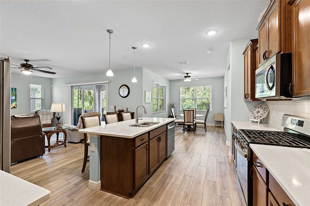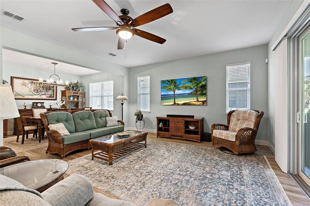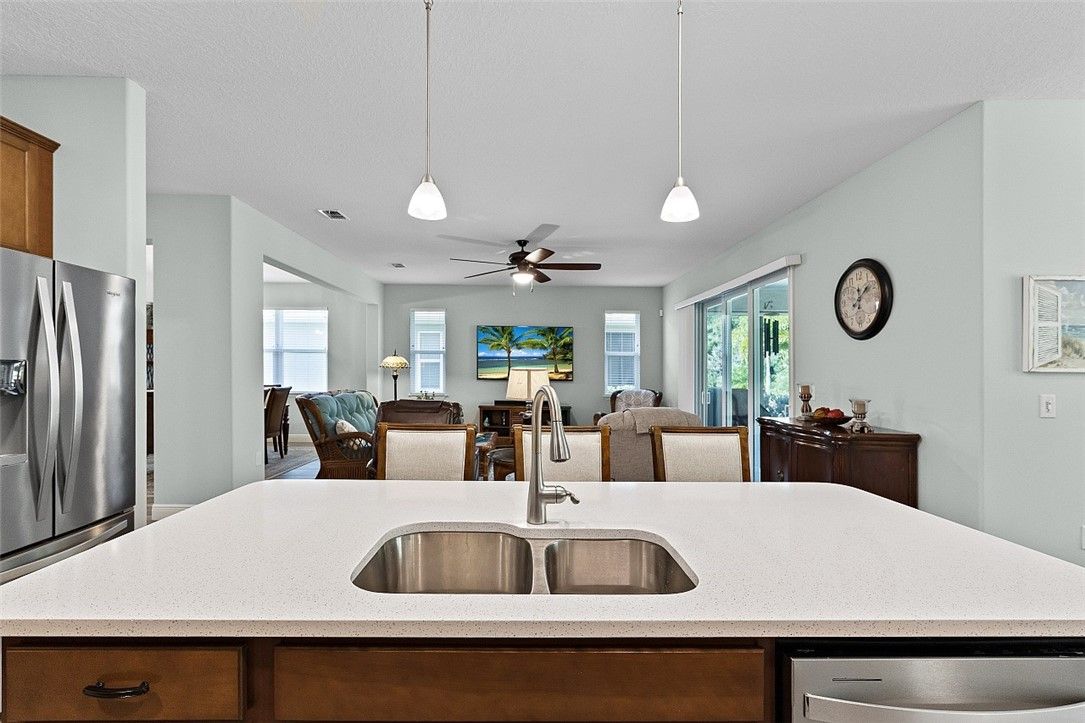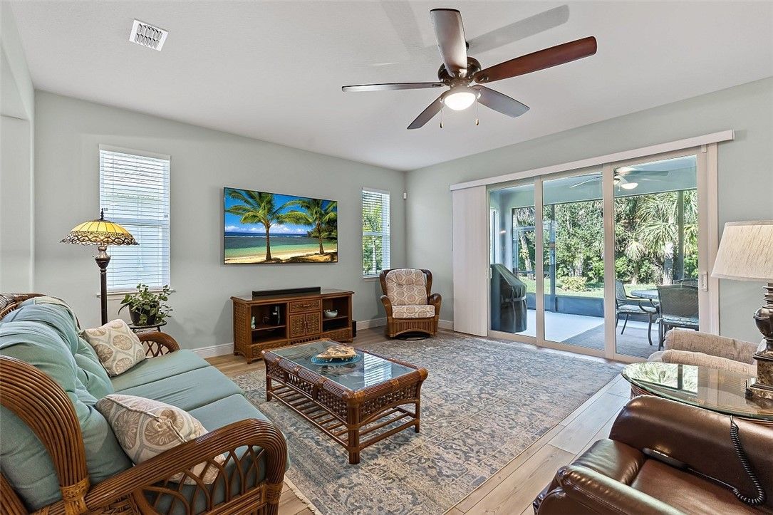 Finally, a Florida dream home with room for everyone! Beautiful 3BR/3BA plus den, 2,536 sq ft (2021) with a private guest suite. Impact glass throughout, natural gas appliances, generator ready, and a 2½-car epoxy garage with storage. Quartz counters, subway tile backsplash, and a private backyard. Harmony Reserve 55+ offers resort pool, clubhouse, fitness, pickleball, and activities. Modern finishes, thoughtful layout, and welcoming spaces for everyday living, entertaining, and easy Florida fun. Close to beaches, shopping, dining, and medical services - COME SEE Rm size approx & subj to err
