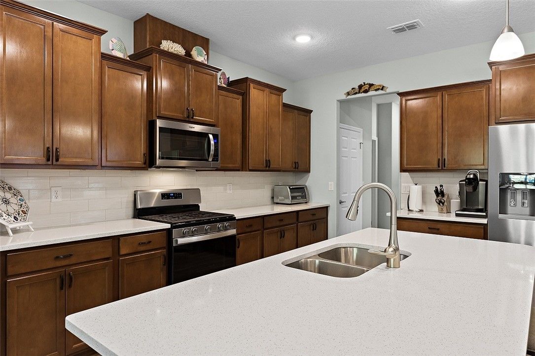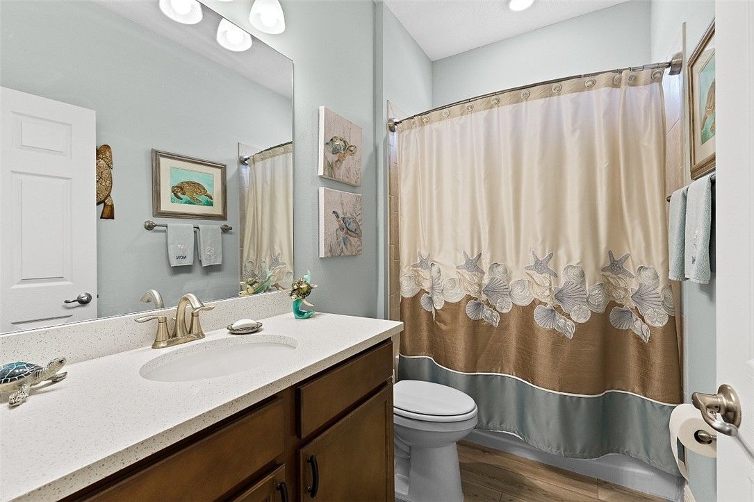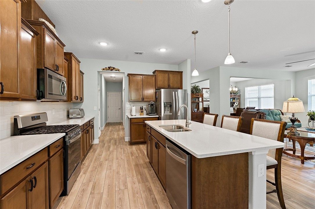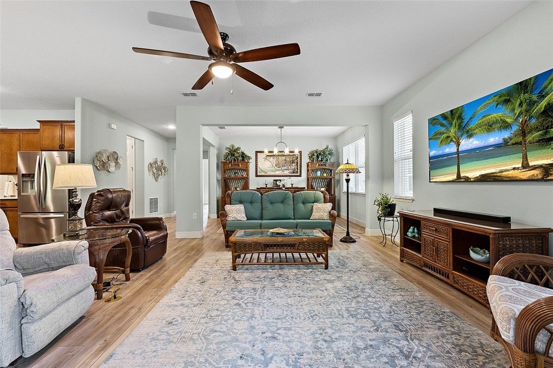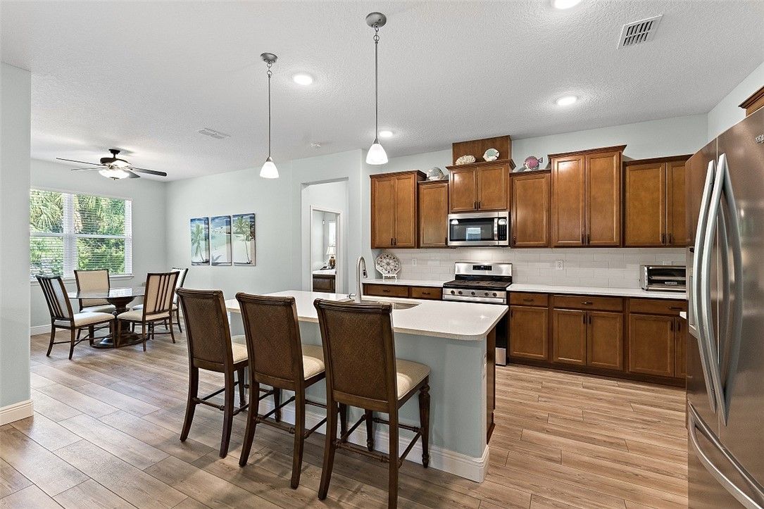 Finally, a Florida dream home with room for everyone! Beautiful 3BR/3BA plus den, 2,536 sq ft (2021) with a private guest suite. Impact glass throughout, natural gas appliances, generator ready, and a 2½-car epoxy garage with storage. Quartz counters, subway tile backsplash, and a private backyard. Harmony Reserve 55+ offers resort pool, clubhouse, fitness, pickleball, and activities. Modern finishes, thoughtful layout, and welcoming spaces for everyday living, entertaining, and easy Florida fun. Close to beaches, shopping, dining, and medical services - COME SEE Rm size approx & subj to err