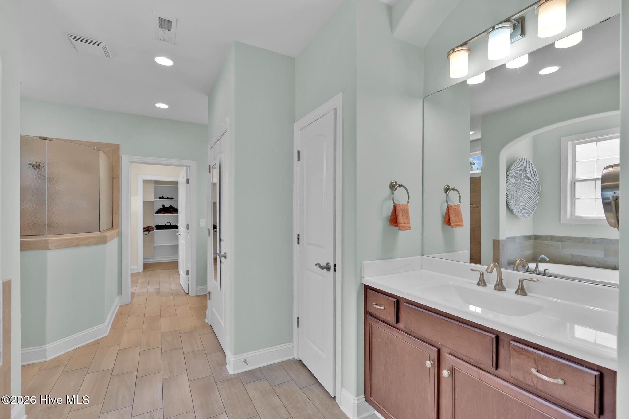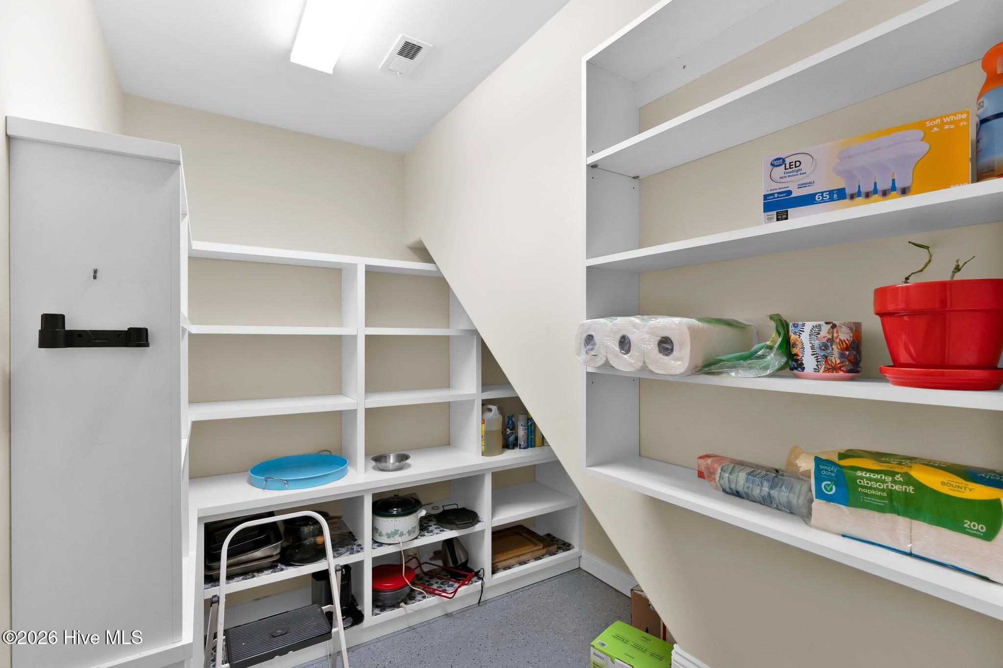 - Master Downstairs, Walk-in Closet(s), Tray Ceiling(s), High Ceilings, Ceiling Fan(s), Pantry, Walk-in Shower