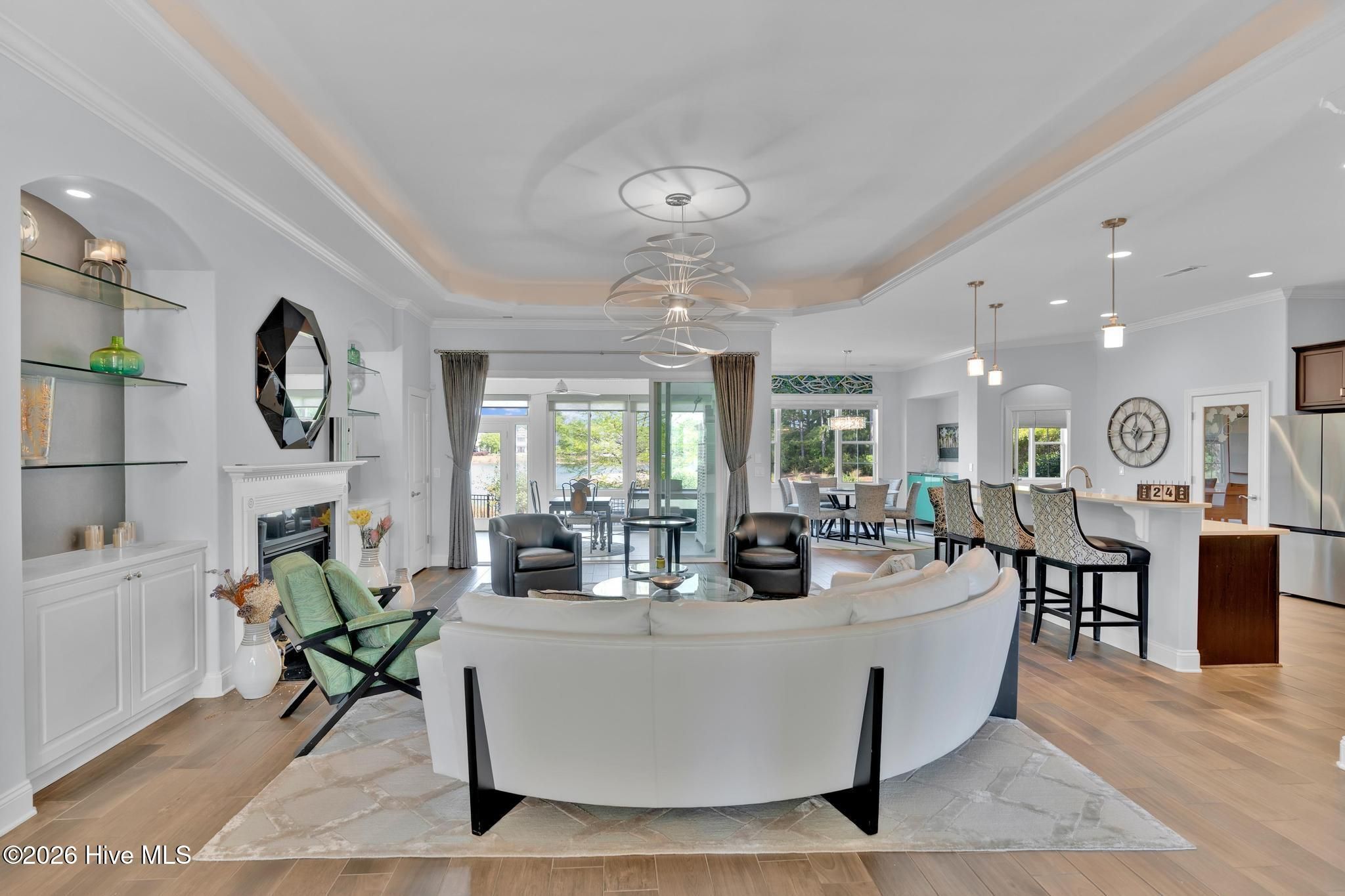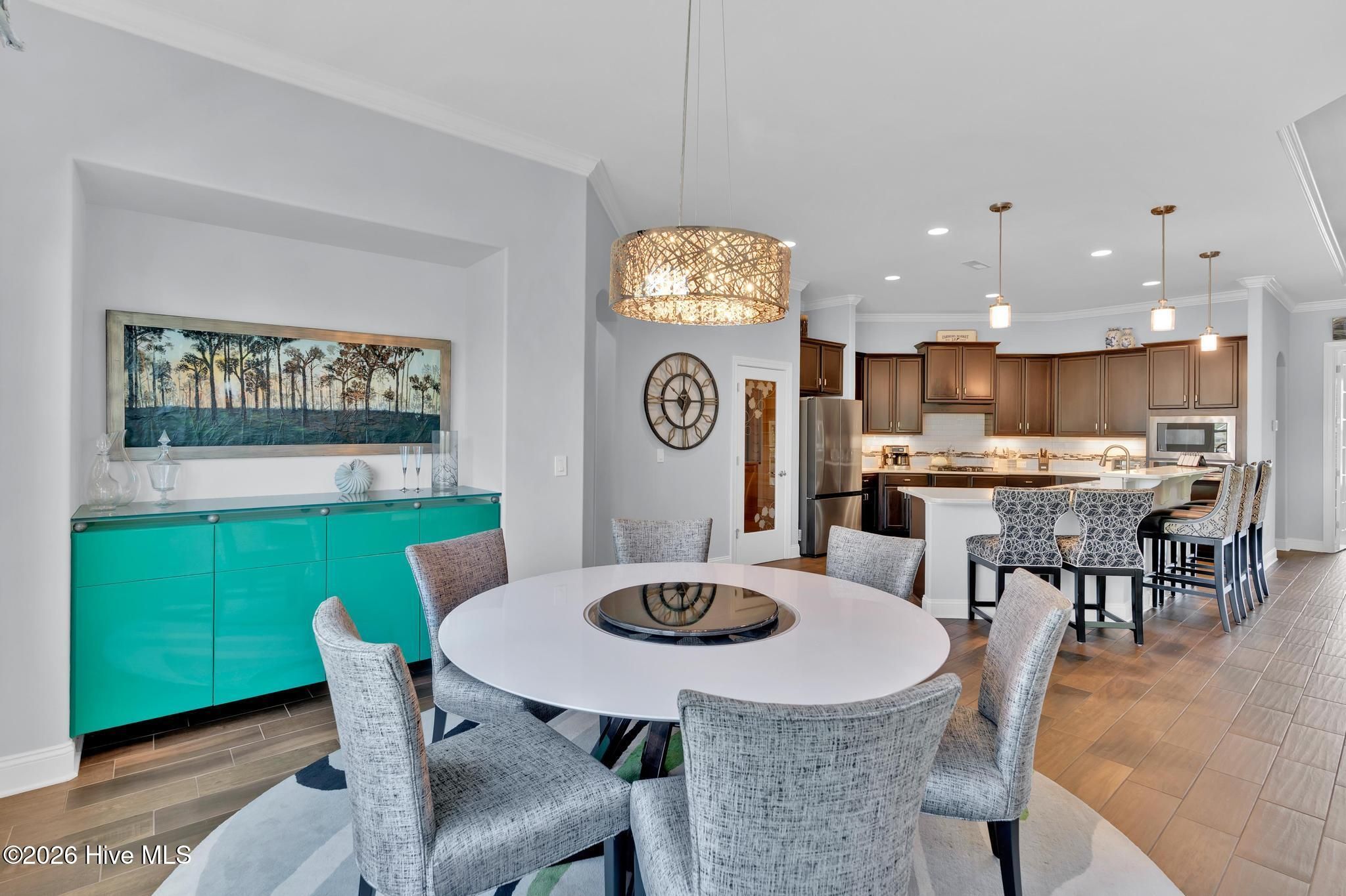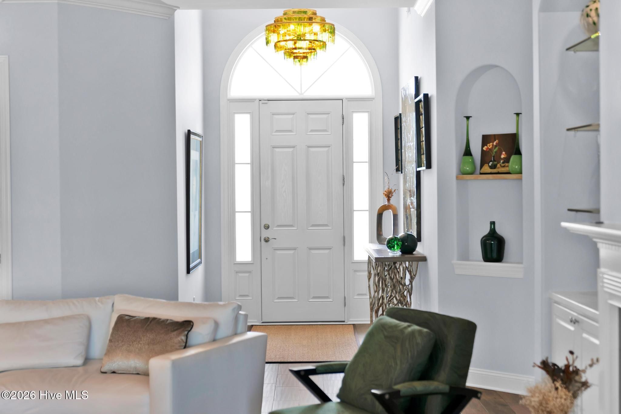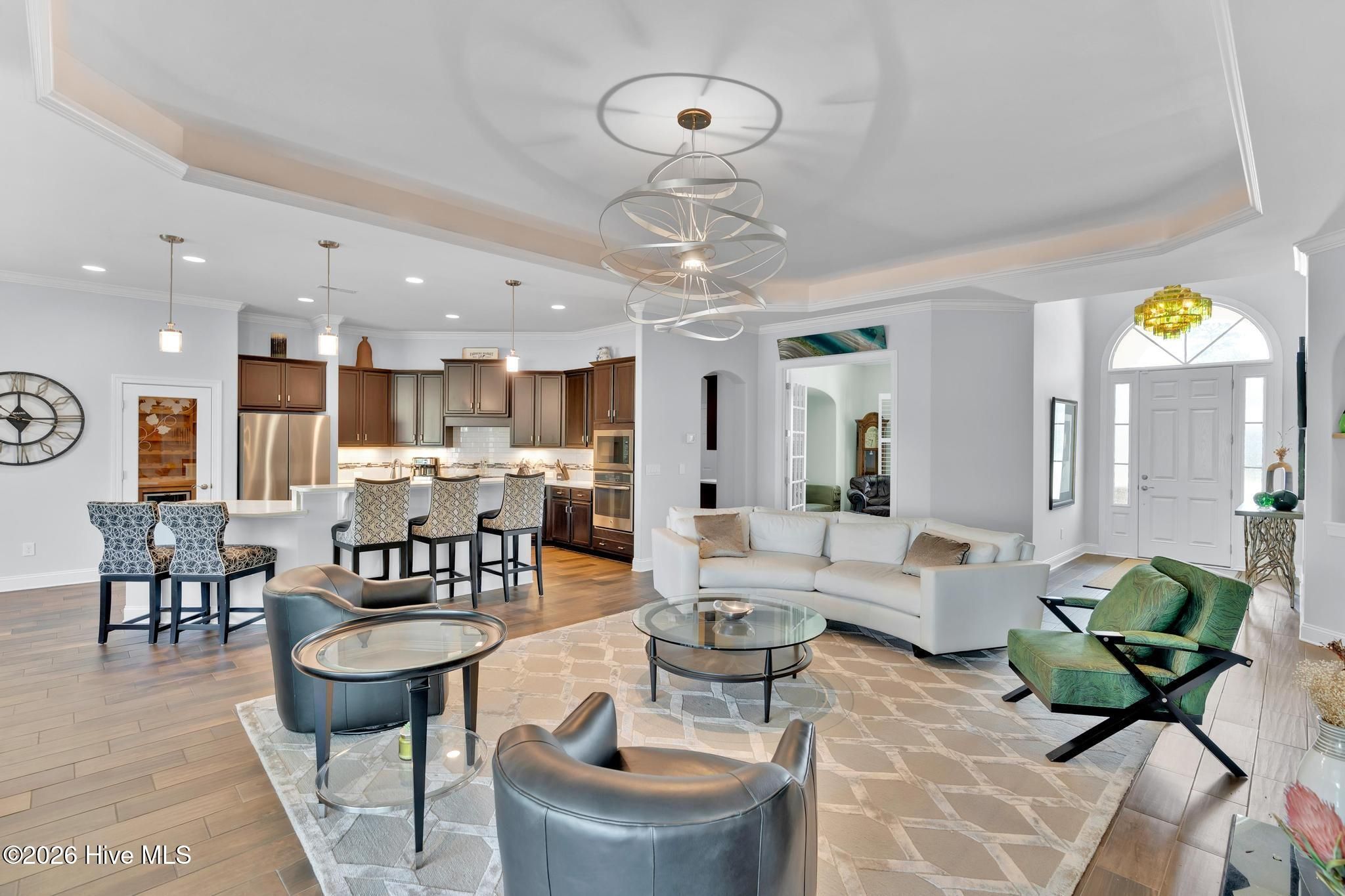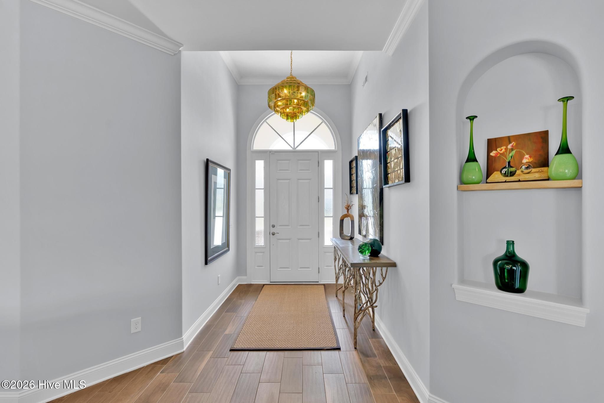 Welcome to 6053 Shore Park Drive, a truly distinctive luxury home in Brunswick Forest in Shelmore, offering over 3,211 square feet of thoughtfully designed living space with serene pond views. Built in 2014, this residence stands apart with elevated finishes, custom details, and a level of character that makes it anything but ordinary. From the moment you step inside, the home reveals its unique style--highlighted by striking, one-of-a-kind lighting fixtures that add warmth, depth, and a designer touch throughout. The open-concept layout is filled with natural light and flows effortlessly, creating an inviting space for both everyday living and entertaining. The kitchen is a true focal point, featuring a dedicated wine closet complete with a mini refrigerator--perfect for showcasing and storing your collection--while a separate butler's pantry offers additional prep space and storage, ideal for hosting with ease. The home features 3 spacious bedrooms, 3.5 bathrooms, and a designated office, along with a versatile bonus room that can easily serve as a fourth bedroom, media room, or private guest retreat. A walk-in attic provides exceptional storage, giving you space to stay organized without compromise. Step outside to the expansive lanai overlooking the pond, where peaceful water views create the perfect backdrop for morning coffee or evening gatherings. With its distinctive character, luxury features, and thoughtful design, this home offers a rare opportunity--and it's priced to sell.