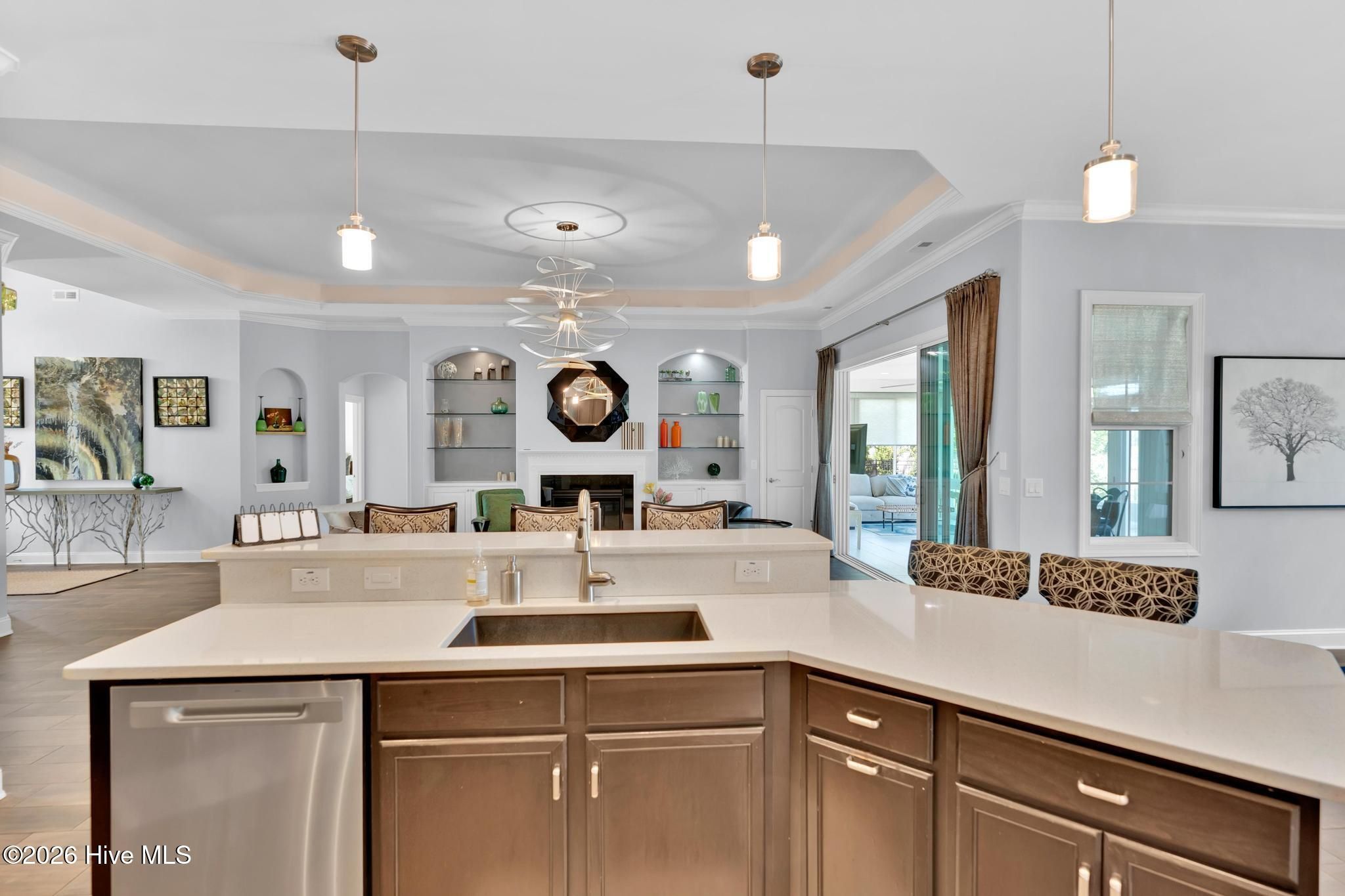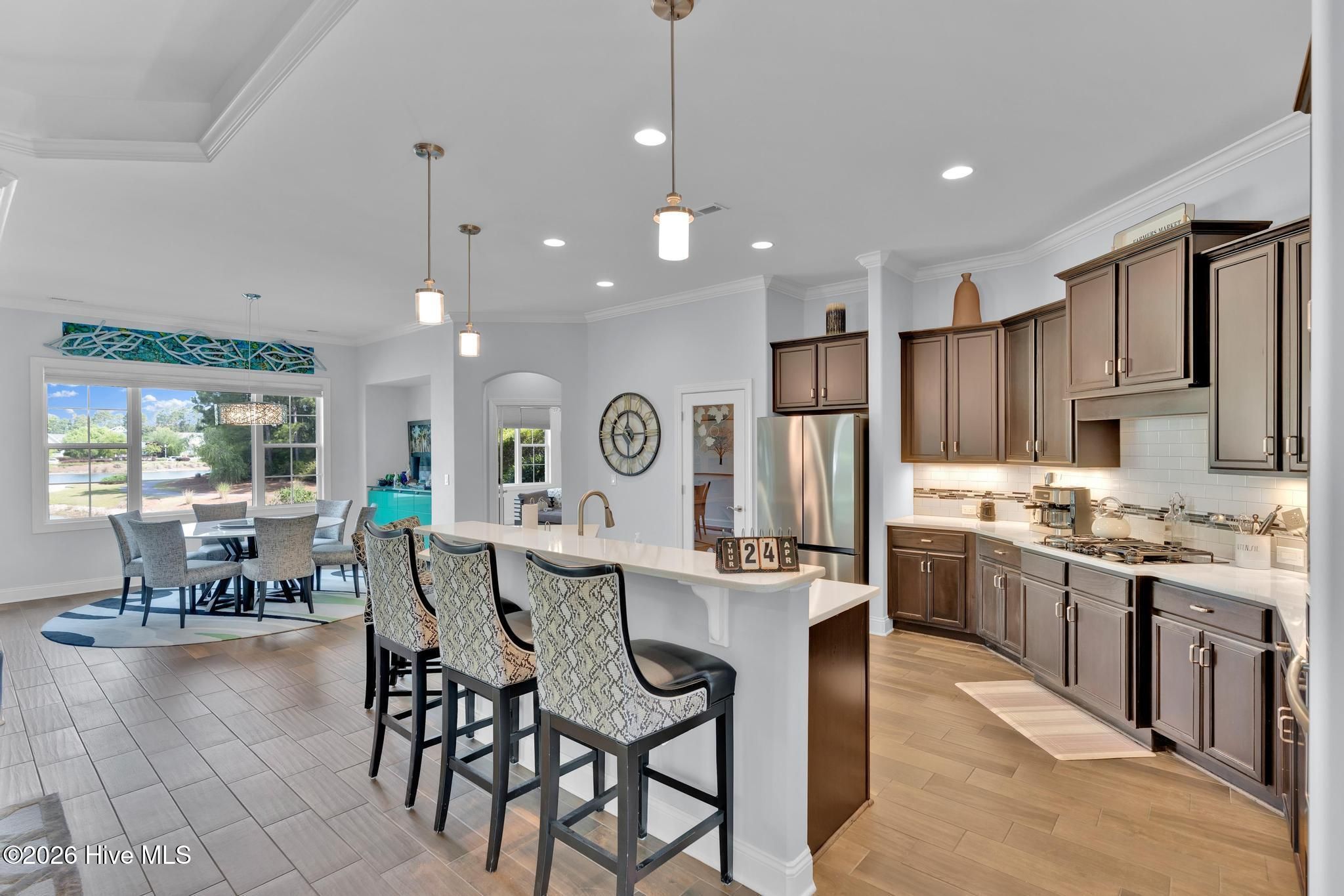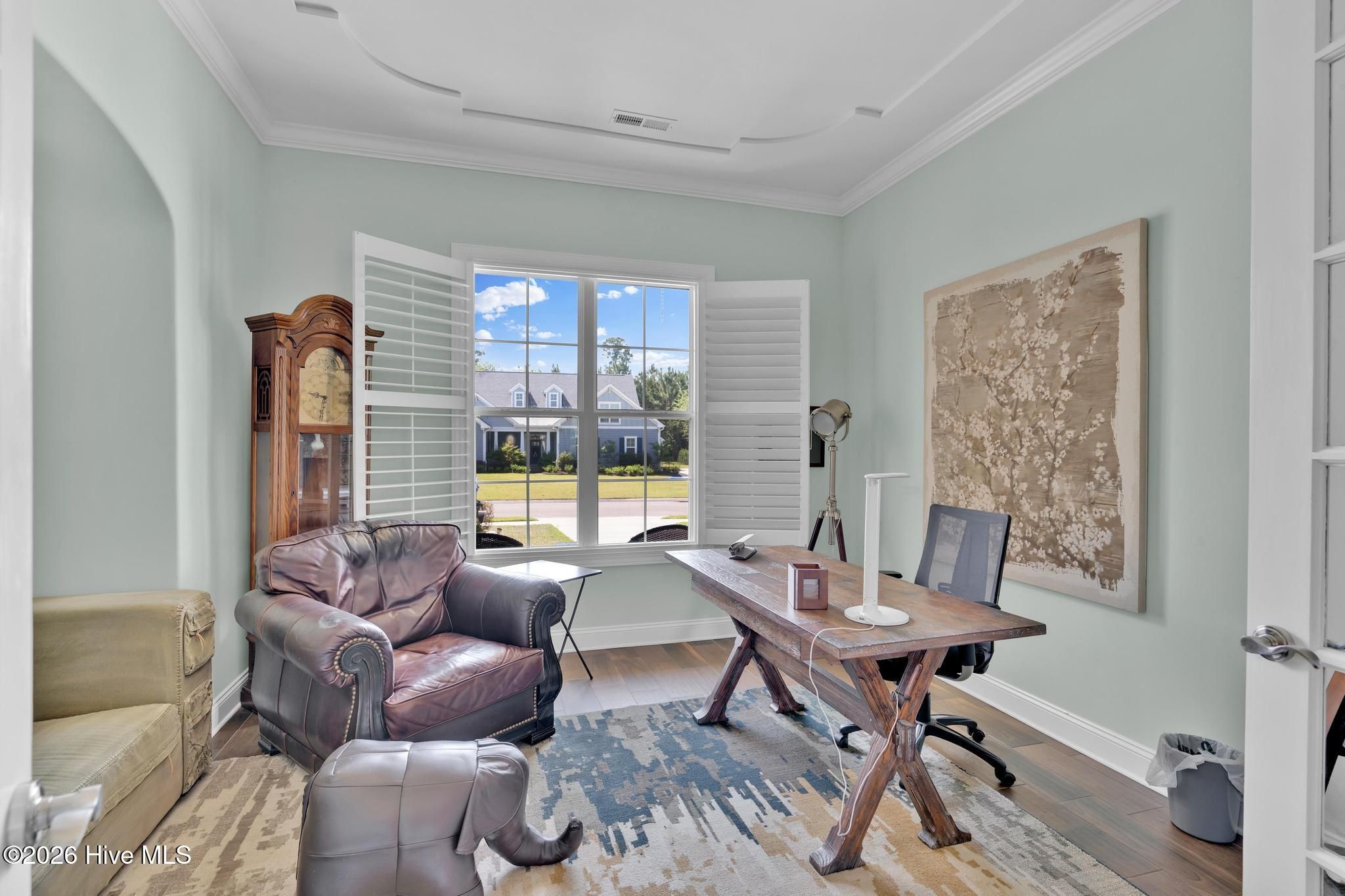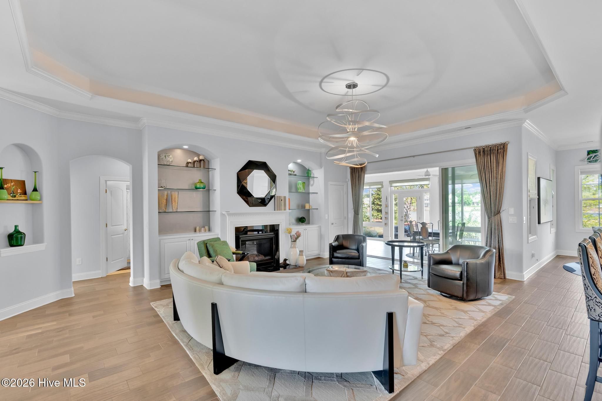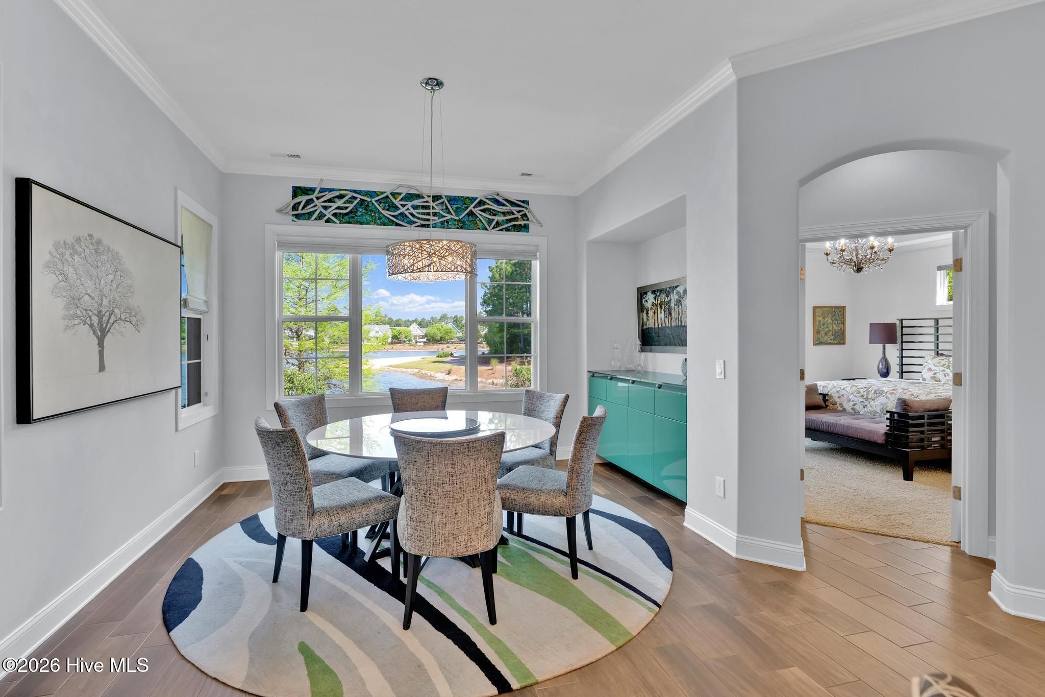Welcome to 6053 Shore Park Drive, a truly distinctive luxury home in Brunswick Forest in Shelmore, offering over 3,211 square feet of thoughtfully designed living space with serene pond views. Built in 2014, this residence stands apart with elevated finishes, custom details, and a level of character that makes it anything but ordinary. From the moment you step inside, the home reveals its unique style--highlighted by striking, one-of-a-kind lighting fixtures that add warmth, depth, and a designer touch throughout. The open-concept layout is filled with natural light and flows effortlessly, creating an inviting space for both everyday living and entertaining. The kitchen is a true focal point, featuring a dedicated wine closet complete with a mini refrigerator--perfect for showcasing and storing your collection--while a separate butler's pantry offers additional prep space and storage, ideal for hosting with ease. The home features 3 spacious bedrooms, 3.5 bathrooms, and a designated office, along with a versatile bonus room that can easily serve as a fourth bedroom, media room, or private guest retreat. A walk-in attic provides exceptional storage, giving you space to stay organized without compromise. Step outside to the expansive lanai overlooking the pond, where peaceful water views create the perfect backdrop for morning coffee or evening gatherings. With its distinctive character, luxury features, and thoughtful design, this home offers a rare opportunity--and it's priced to sell.
