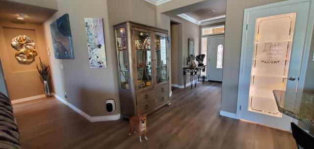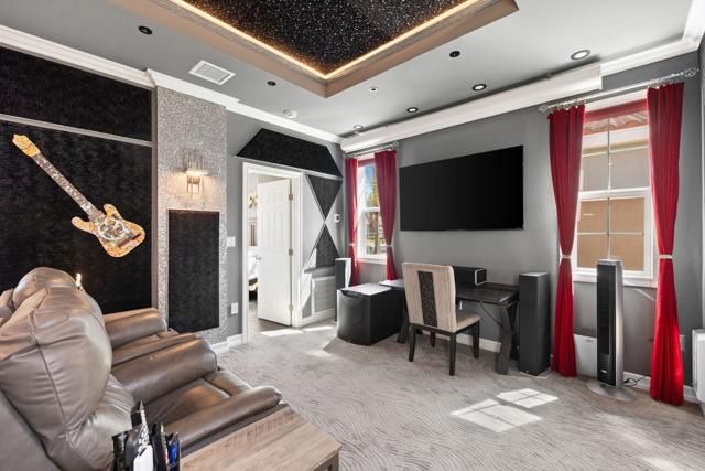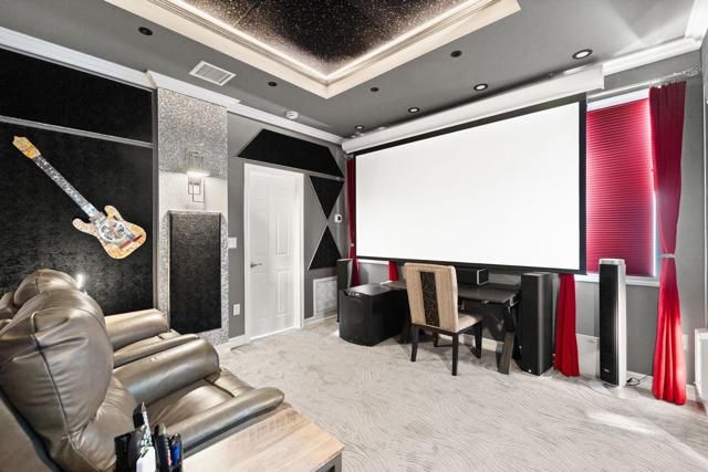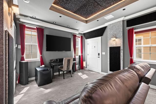 - High Ceilings, Phone System, Recessed Lighting, Open Floorplan, Block Walls, Crown Molding, Built-in Features, Pull Down Attic Stairs, Main Level Primary, Home Theater, Bedroom on Main Level, Dressing Area, Formal Entry, Guest Suite, Great Room, All Bedrooms on Lower Level, Utility Room, Walk-In Closet(s)