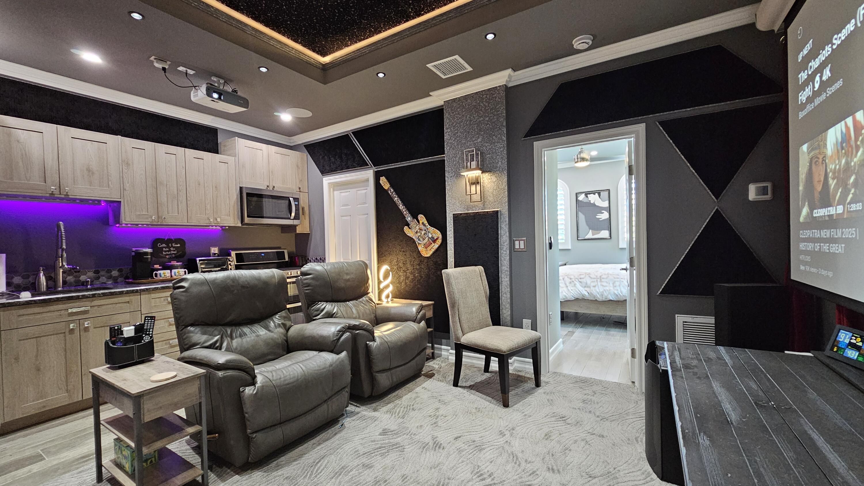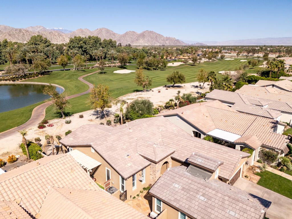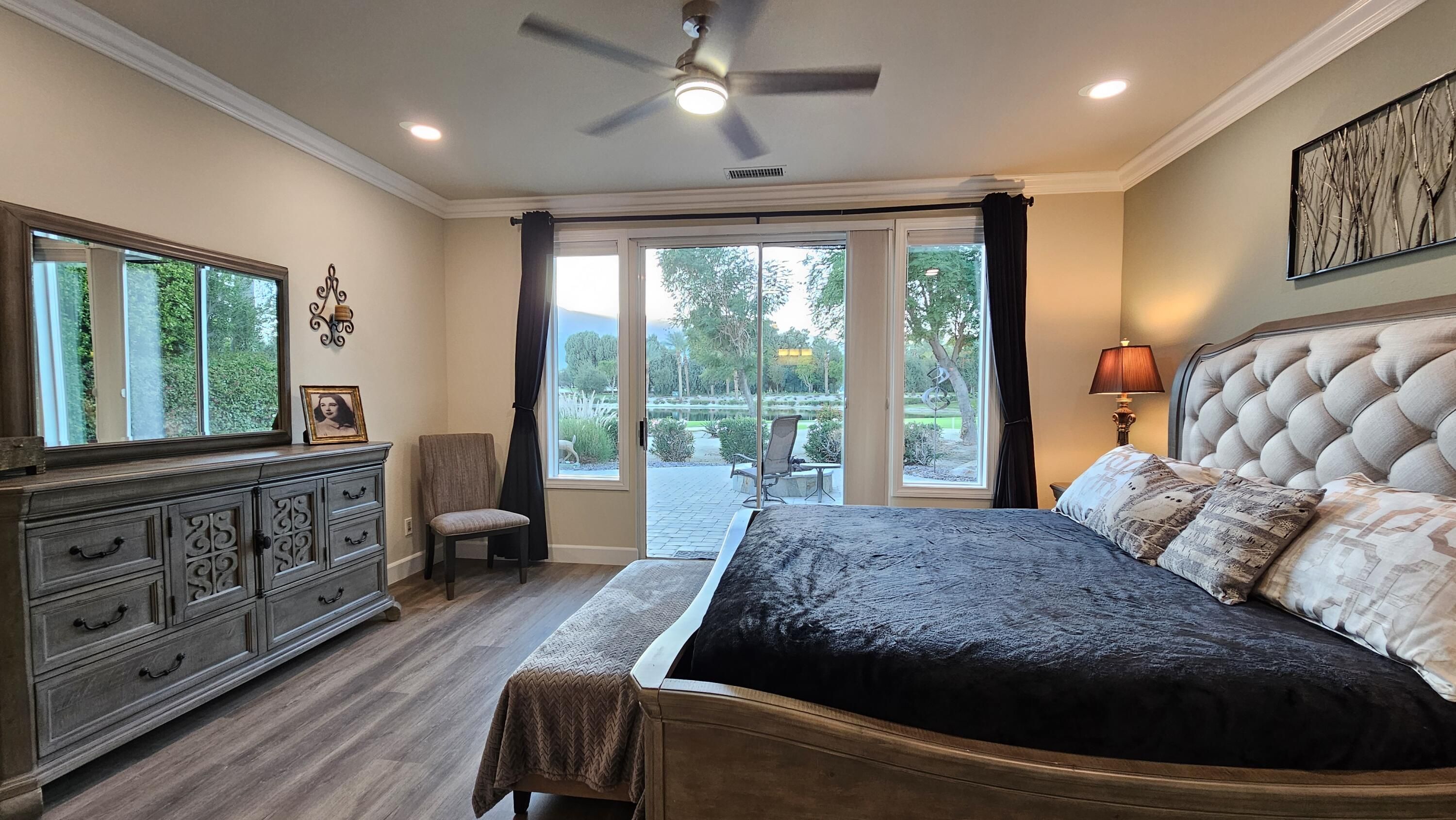 Absolutely one of the best views in this Trilogy La Quinta 55+ gated community! This is a VERY rare and unique property! It is the ONLY 4 bedroom most desired Monterey plan that includes a newly built custom 4 room detached casita that is legally permitted as an ADU (Accessory Dwelling Unit) completed in January of 2023. The main house has been completely remodeled with over $100,000 in high-end finishes including a new master bedroom and ensuite bath just completed in October of 2025. The casita rents during the high season for $2,500 to $2,700 per month. Casita rooms include a home theater with both a 120'' motorized movie screen and a 65'' flat panel TV for daytime viewing, a full kitchen (except dishwasher), laundry room, bedroom, and a bathroom with a walk-in shower with a digital 'shower tower' with temperature read-out and timer. The casita galley style kitchen has a Whirlpool 5 burner stove with double ovens, refrigerator, porcelain plank flooring and carpeting in the home theater. Nearly $300,000 total spent in upgrades between the casita and the main home. The main house has 3 bedrooms and 2 baths. Upgrades include black-out curtains in the master and great room, large electric awning, shutters, roller shades, crown molding in all rooms, newer Milgard vinyl windows throughout, and a combination of luxury vinyl plank flooring, wood laminate and porcelain tile in every room. The newly remodeled kitchen has high end ''Champaign'' finished cabinetry including roll outs and soft close drawers and doors, glass backsplash, granite counters, upper cabinet rope lighting, under cabinet lighting, pantry back-lighting, and a new gas cooktop, There are 10 designer ceiling fans throughout, including the kitchen, great room, 3 bedrooms, 2 bathrooms, the patio, and the garage. Great room has a new fireplace and mantel with under-mantel rope lighting. The courtyard that separates the house from the casita has a soothing water fountain with a new concrete overlay deck. The back yard is spacious enough for a large pool/spa or water feature. Price includes 2 home theater audio systems, home theater projector, and a 120' motorized screen. Garage includes 2 work benches, custom cabinetry and a totally customized Hummer golf cart with oversized tires. Buyer to pay the HOA's Reserve Replenishment Assessment fee of approximately $3,570. One owner is also the listing broker.