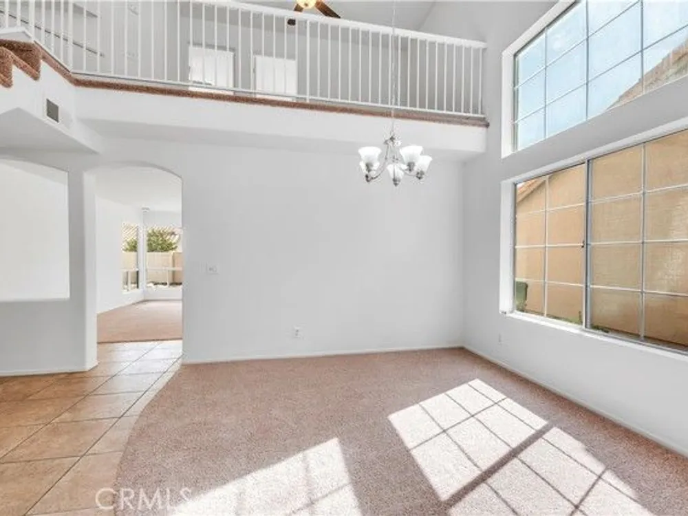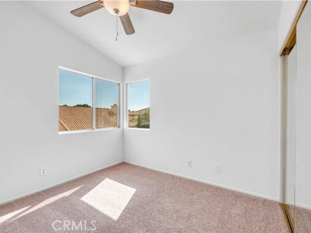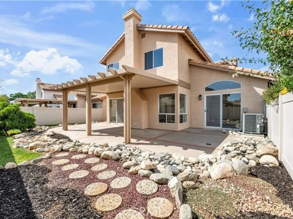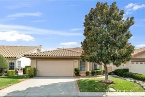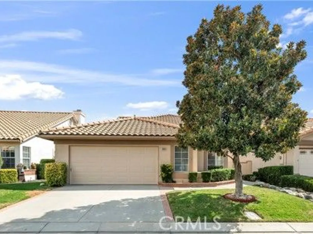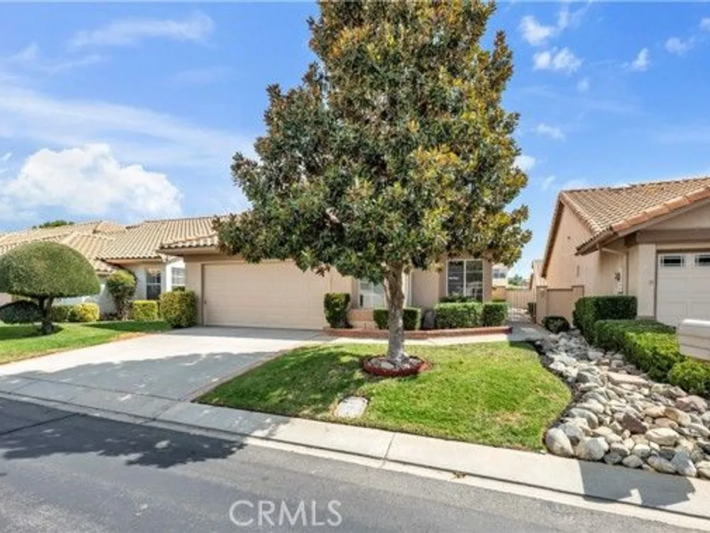 Lovely Muirfield model in Sun Lakes Country Club, a stunning 55+ community in Banning. This 3-bedroom, 2.5-bath home with loft and family room offers 1,846 sq. ft. of comfortable living. A double-door entry welcomes you into a bright, open floor plan with abundant natural light and freshly painted white walls. The spacious living and dining areas flow nicely for entertaining. The kitchen features ceramic tile flooring, updated painted cabinets, and appliances including the refrigerator. The downstairs primary suite is open and airy with a sliding door to the patio and an en-suite bathroom featuring dual sinks. Upstairs has been fully refreshed with all new carpet, paint, and ceiling fans in each room, along with two bedrooms, a full bath, and a loft area. Other highlights include mirrored closet doors, ample garage storage with built-in cabinets and attic ladder, a solid Alumawood patio cover, fresh exterior paint, new landscaping, and new carpet throughout the home. Sun Lakes Country Club offers resort-style living with two golf courses, three clubhouses (one with a full-service restaurant and lounge), three swimming pools including an indoor pool, tennis and bocce ball courts, and countless clubs and social activities. The perfect blend of comfort and community.