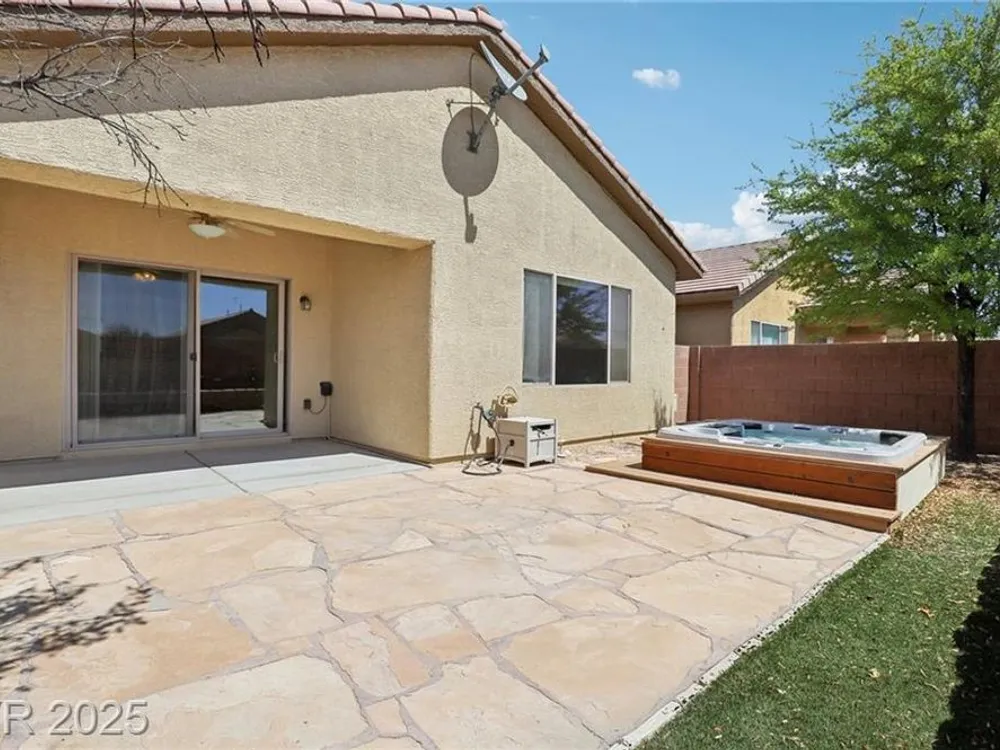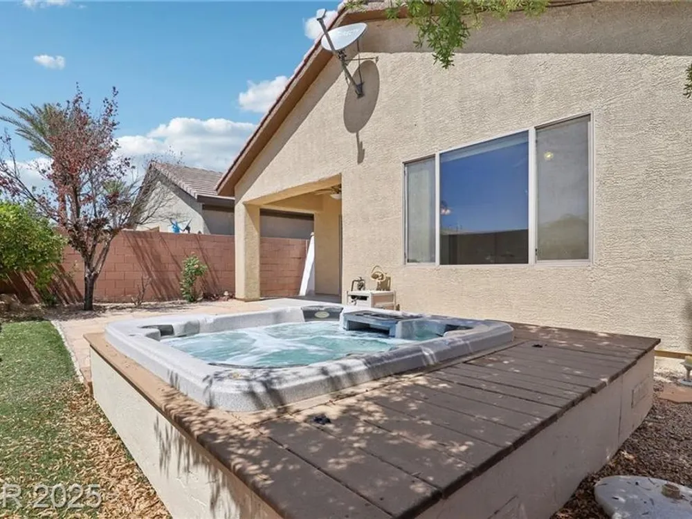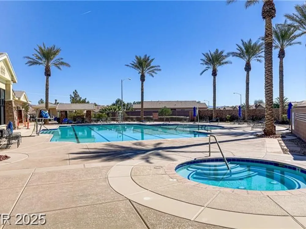 Wonderful home in Solara community at Stallion Mountain! This lovely 3-bedroom, 2-bathroom residence, nestled in a desirable 55+ neighborhood, boasts an open floor plan and a spacious living area ideal for entertaining or everyday living. The interior flows effortlessly, filled with natural light that creates a bright, welcoming vibe. The private backyard retreat features a covered patio and a soothing jacuzzi—perfect for unwinding or hosting guests. Amenities include a community pool, relaxing spa, fitness center, scenic golf course, tennis courts, and tranquil walking trails. Whether you’re staying active or simply soaking in the surroundings, this community has it all. Plus, with easy freeway access, you’re just minutes from the excitement of Las Vegas—think world-class dining, entertainment, and shopping. This Stallion Mountain treasure offers the best of both worlds: peaceful living with urban convenience. Schedule a private tour today and see why this home is a standout choice!