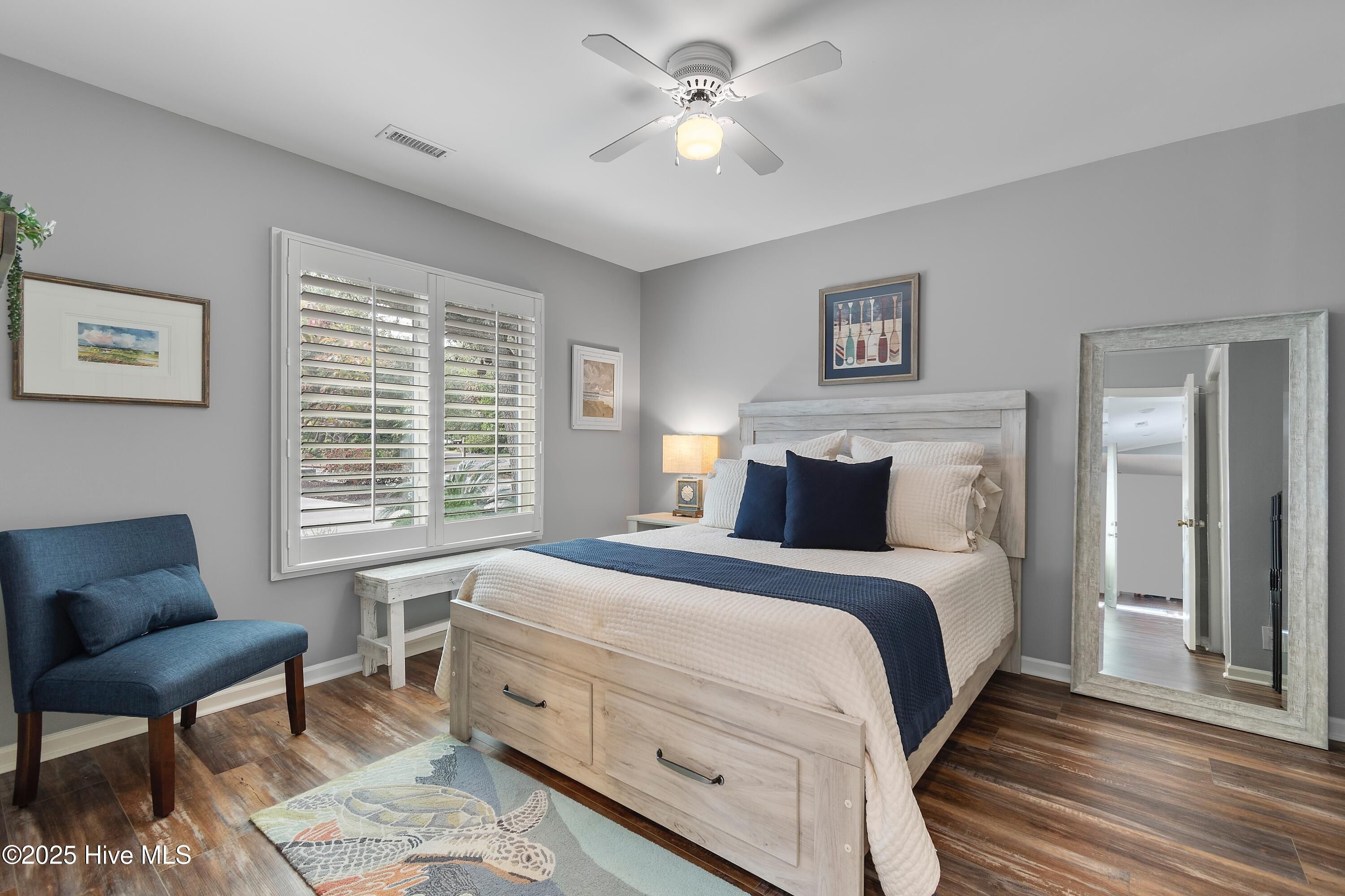 - Blinds/Shades, Entrance Foyer, Solid Surface, Master Downstairs, Ceiling Fan(s)