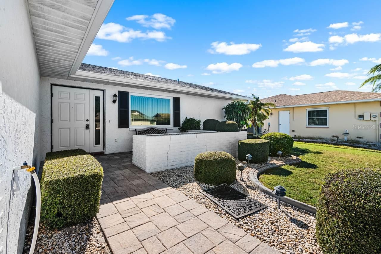 MOVE-IN READY 2-bed, 2-bath home now available in the golf cart friendly, active 55+ community of Sun City Center! PAVER DRIVEWAY, 2-car attached garage, STAMPED CURBING around landscaping, front porch, and LANAI for year-round enjoyment. Featuring a spacious living room, separate Family Room, and a dining area just off the kitchen with its abundant storage and STAINLESS STEEL refrigerator and range! The Primary Bedroom has a WALK-IN CLOSET and EN-SUITE BATHROOM complete with a single-sink vanity, linen closet, and shower stall. The secondary bedroom of this SPLIT FLOORPLAN layout has a large closet and is positioned conveniently next to the second full bathroom, which comes equipped with a tub/shower combination and single-sink vanity. This property has been well-loved and cared for, with freshly shampooed carpet and pressure-washed driveway! This home offers comfort, convenience, and the opportunity to embrace an active lifestyle in a community designed with you in mind. Enjoy the extensive amenities of Sun City Center, featuring indoor & outdoor swimming pools, tennis courts, dog parks, horseshoes, pickleball, men's and women's softball, and a wide variety of arts and crafts. With over 200 social clubs available that include travel, ceramics, gardening, computer, bridge, poker, writing, dance, theatre, and more - you'll never be bored. Don’t miss your chance to make this peaceful retreat your own!