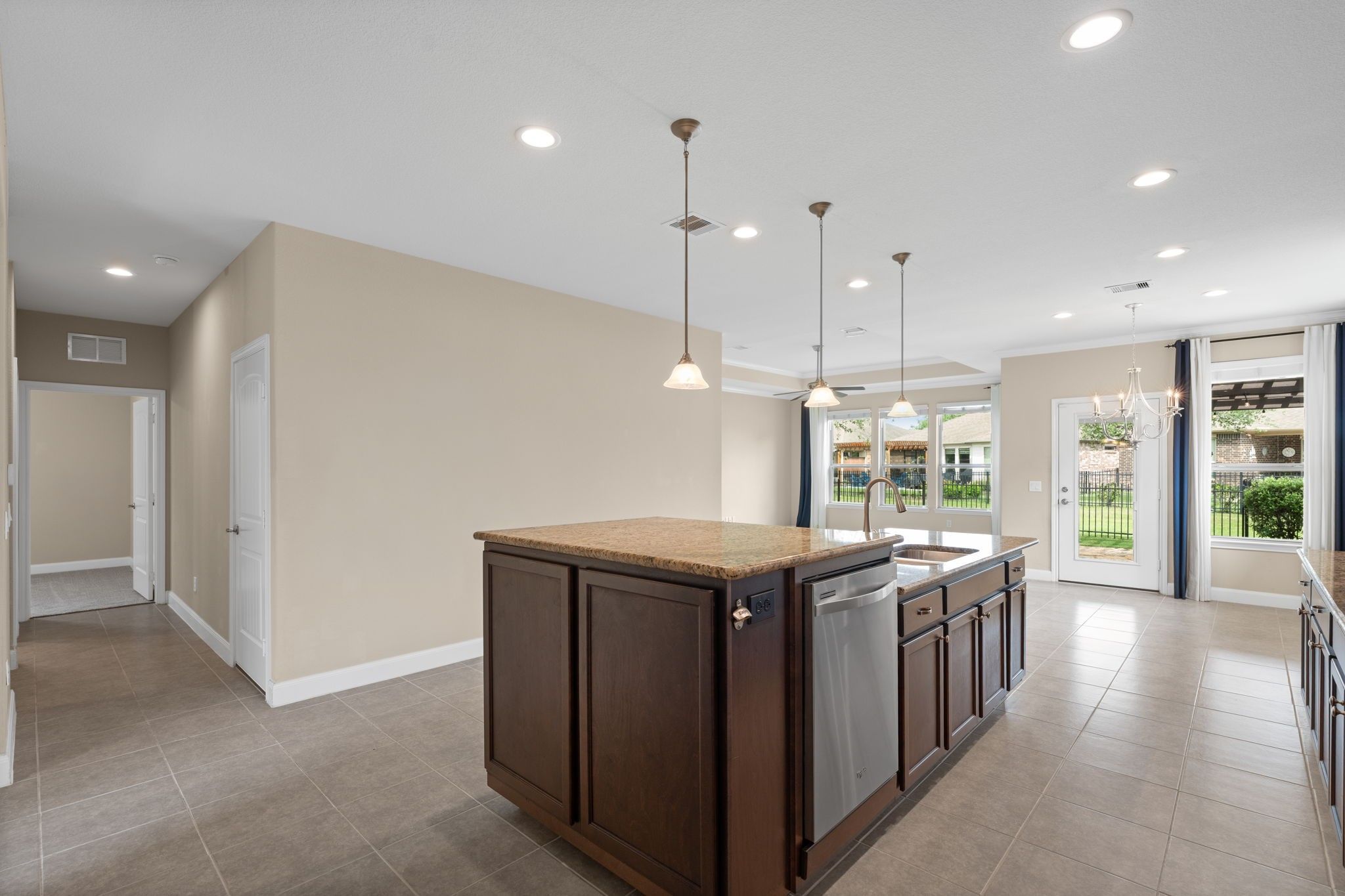 - Breakfast Bar, Crown Molding, Double Vanity, Handicap Access, High Ceilings, Kitchen Island, Kitchen/Family Room Combo, Tub Shower, Window Treatments, Kitchen/Dining Combo, Programmable Thermostat
