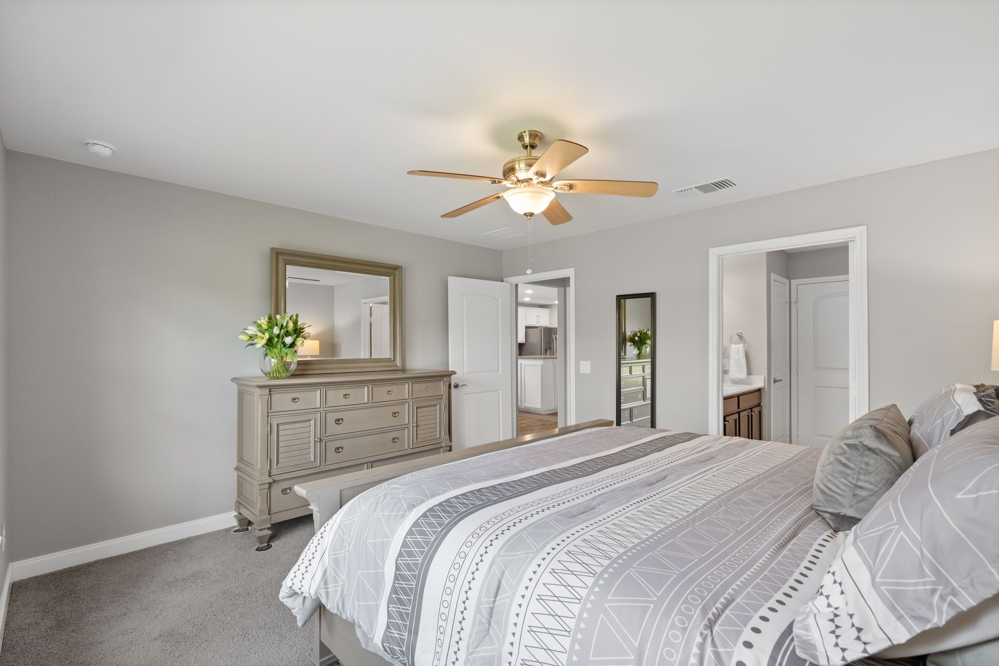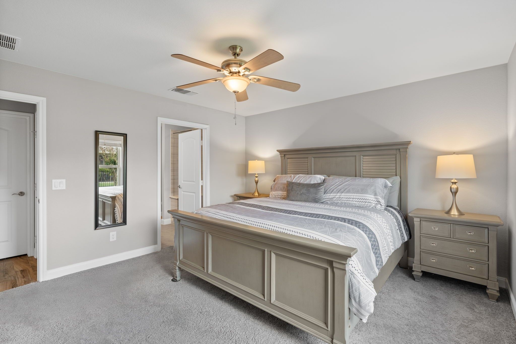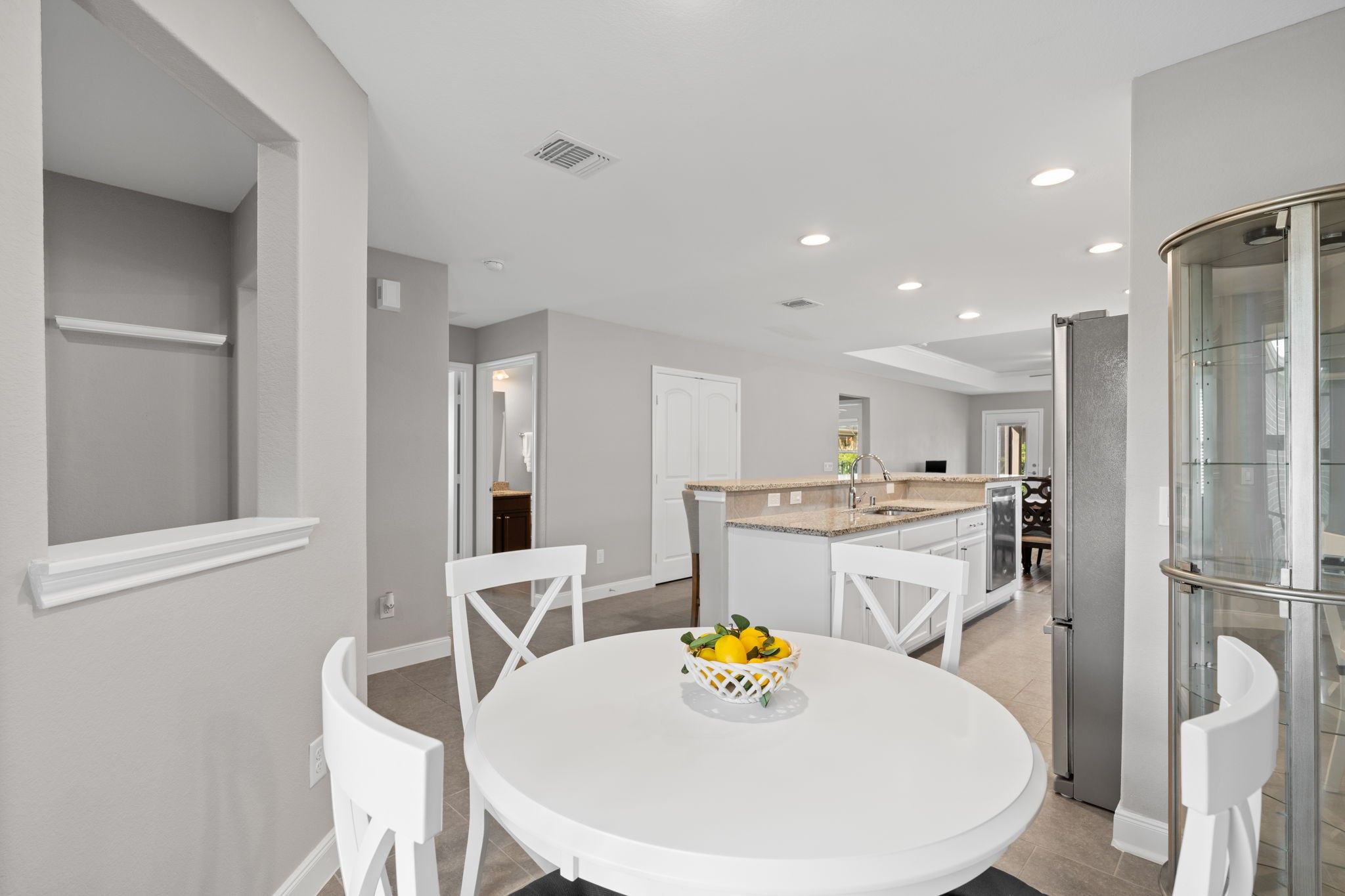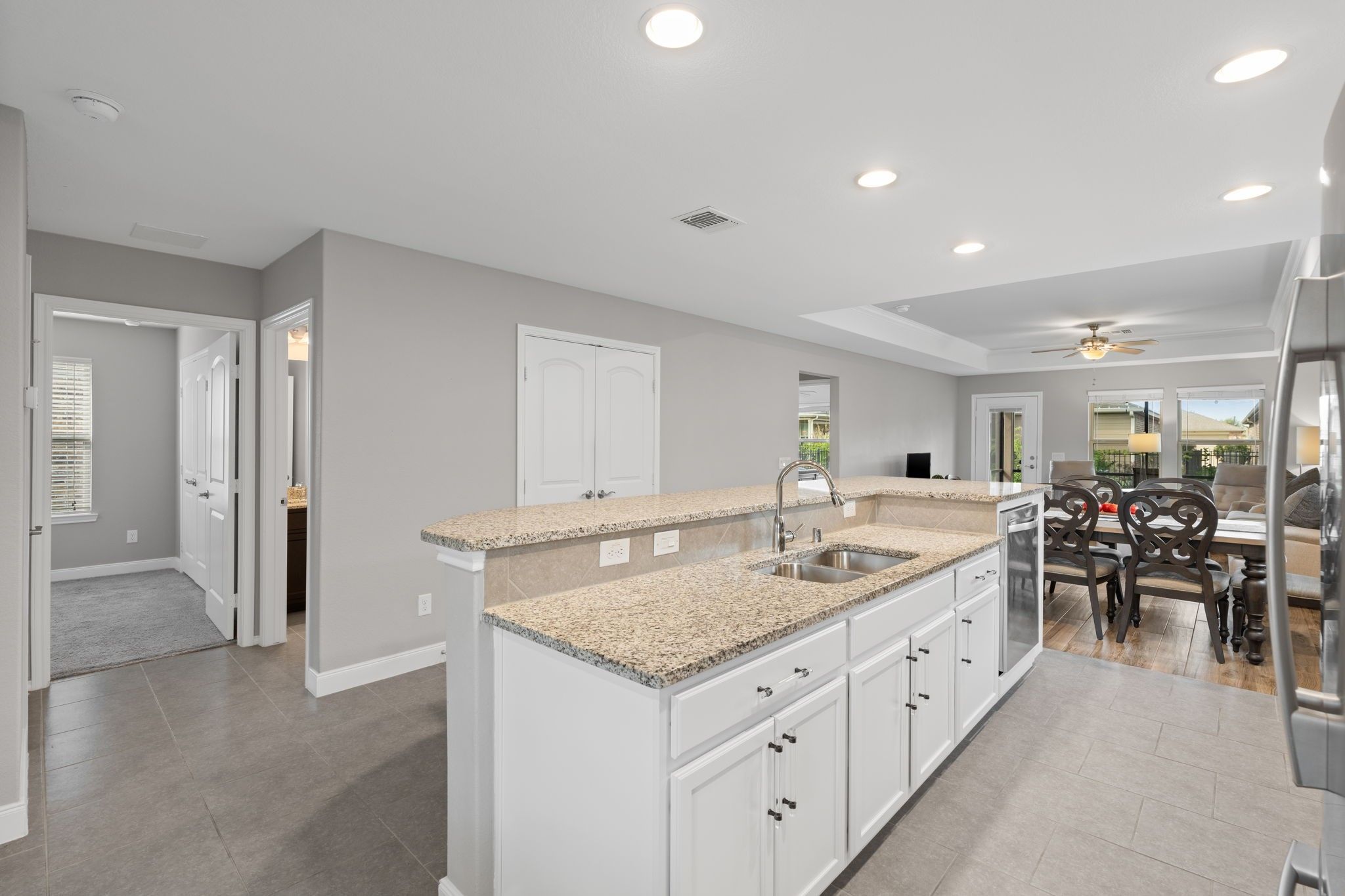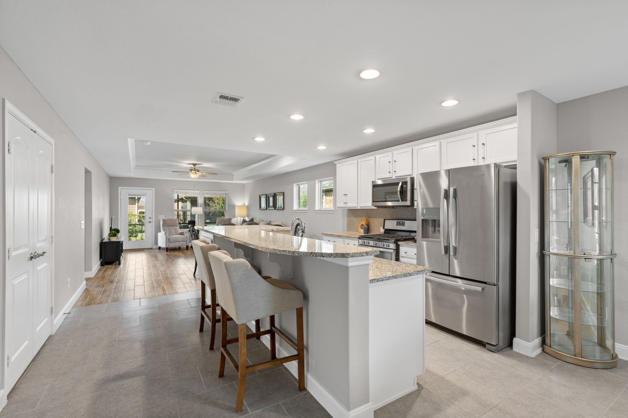 Welcome to highly sought-after Steel Creek 2BR/2BA, perfectly nestled within vibrant Del Webb Sweetgrass 55+ community. Charming front nook offers ideal spot for desk or petite dining table; all bathed in soft natural light. Kitchen shines with gleaming granite countertops, crisp white cabinetry, stylish hardware & elevated dishwasher designed for comfort & ease. Adjoining gathering rm features rich wood flooring & tray ceiling. Primary BR impresses w/walk-in closet, while en-suite bath offers upgraded tile walk-in shower & rectangular sinks for a clean, elevated finish. Step outside to your 15 x 9 screened-in travertine patio, a tranquil retreat for morning coffee. Additional highlights include a travertine-tiled front porch, faux wood blinds, gutters, sprinkler system, storm door, plumbed water softener & appliances convey! Tile flows through kitchen, w/carpet in BRs for comfort. Beautiful front landscaping enhances curb appeal, while fenced backyard provides privacy & peace of mind.