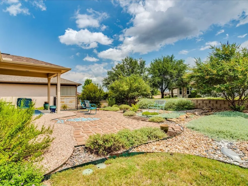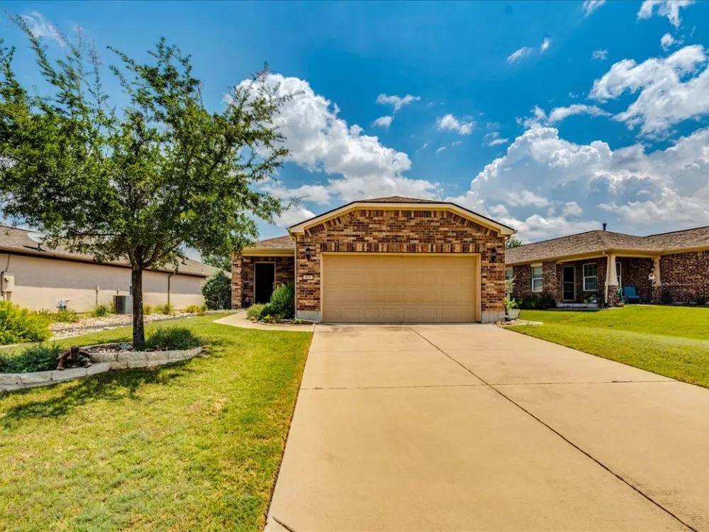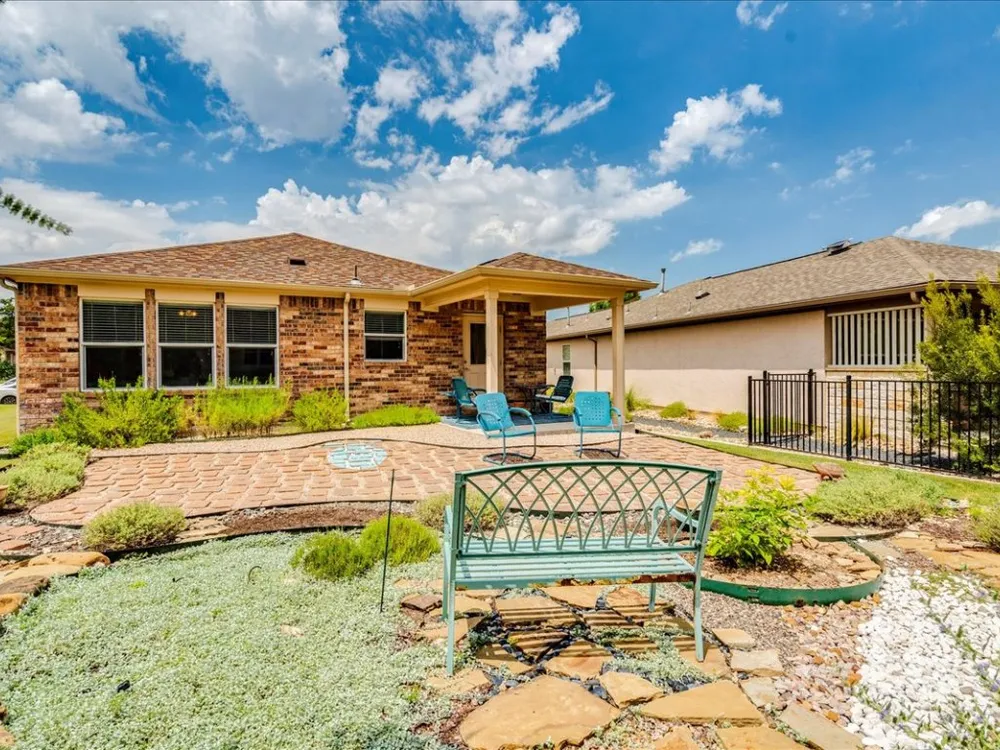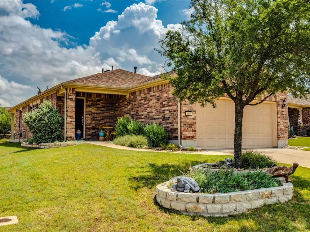 Don't waste time wondering what this amazing update home looks like, you can tour it right now! We offer self guided tours, its a simple process to get access to see this home today! Copy this (moj.so/444607505b) paste into your browser and follow the steps to create your self guided tour! Welcome to this beautifully crafted home in Sun City Texas, where timeless design meets modern comfort. Built with four sides of durable Acme brick, this residence features a Weatherwood-colored fiberglass shingle roof, covered patio, seamless front gutters, Xeriscape yard, and full irrigation. The painted garage includes a LiftMaster opener, Clopay steel door, golf cart outlet, and attic access with pull-down stairs. Energy-efficient features include Low-E dual pane windows, R-30 attic insulation, radiant barrier roof decking, a 14 SEER HVAC system, programmable thermostat, and post-tension slab construction—ensuring comfort and lower utility costs. Inside, rounded drywall corners, textured walls in “Natural Choice,” and four-panel interior doors create a warm, inviting atmosphere. Ceramic tile floors grace the entry, kitchen, baths, and utility room, while ceiling fans with light kits enhance the great room and primary suite. The kitchen offers Seacrest Birch cabinetry with cove molding, granite countertops, recessed lighting, and Whirlpool appliances—smooth-top electric range, microwave vented to the exterior, dishwasher, and disposal—plus a deep double stainless sink with Moen faucet. The primary bath boasts a raised-height dual-sink vanity, seated shower with clear glass doors, and comfort-height toilet. The secondary bath includes a tub/shower combo. Both feature matching cabinetry, Moen fixtures, and ceramic tile flooring. Located in the heart of Sun City, this home delivers quality construction, energy savings, and a lifestyle designed for ease and enjoyment