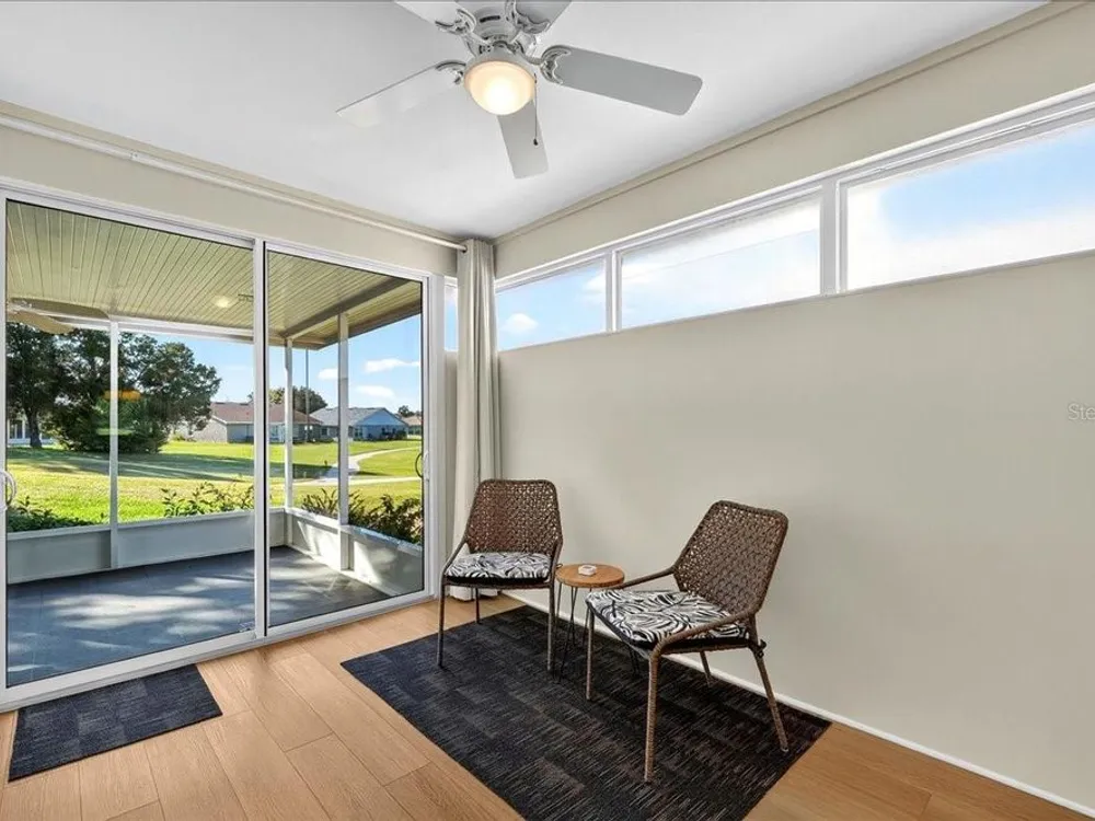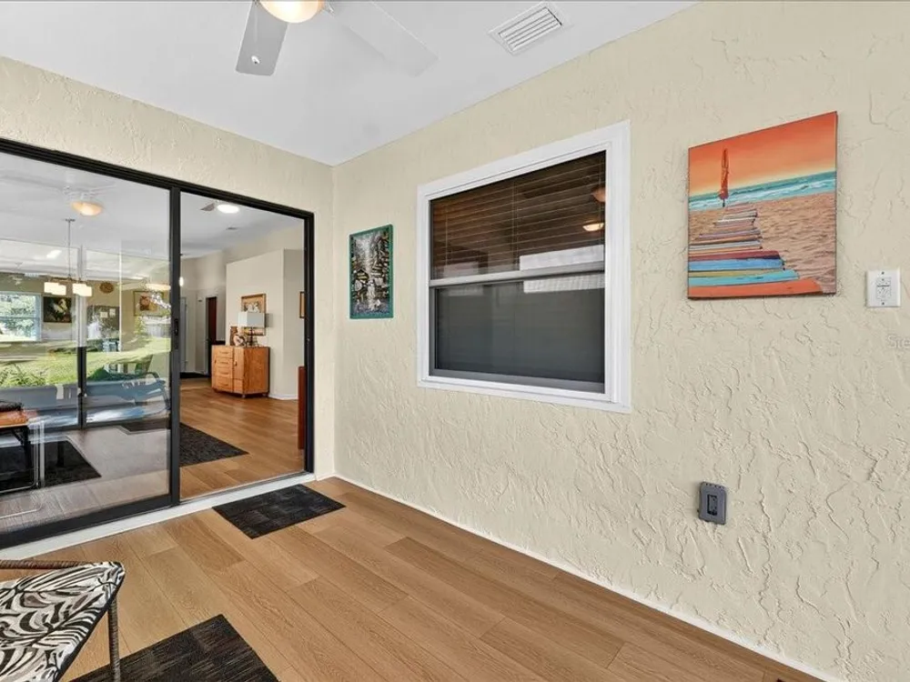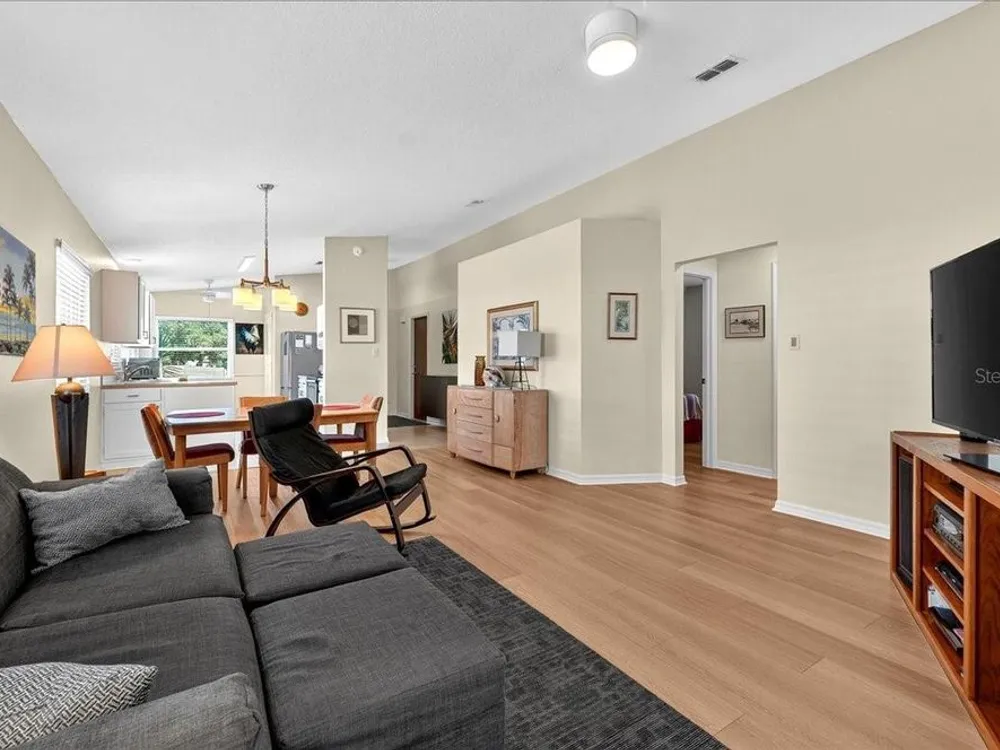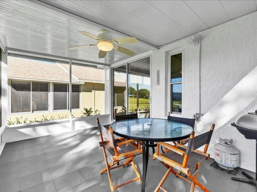 MOVE-IN READY! This beautifully maintained home offers effortless living in the desirable Sandpiper Golf & Country Club community. Perfectly situated just steps from the clubhouse, restaurant, pool, tennis courts, and fitness center, this home showcases true pride of ownership inside and out. The kitchen features Corian countertops, shaker-style cabinetry, stainless steel appliances, a spacious pantry, and a cozy breakfast nook. Gorgeous new luxury vinyl plank flooring (installed in 2024) flows throughout the home, enhancing its bright, open feel. The spacious living and dining areas provide a comfortable setting for relaxing or entertaining. The primary suite is a peaceful retreat featuring dual closets— one walk-in and one standard— plus a private en-suite bath. The guest bedroom offers convenient access to a partially private bathroom. Enjoy the Florida lifestyle year-round in your heated and cooled enclosed lanai, relax in the screened lanai under the roof, or unwind on the paver patio overlooking the golf course; perfect for morning coffee or evening sunsets. Recent upgrades include: new flooring (2024), kitchen updates (2008 & 2022), lighting and fans (2021), roof (2020), interior paint (2020), bathroom updates (2020), sliding doors (2018), HVAC (2017), refrigerator (2025), and double-pane windows (2015). Sandpiper Golf & Country Club offers exceptional amenities, including golf, a pro shop, community pools, tennis, shuffleboard, and more. The low HOA fee of just $150/month includes cable, internet, lawn care, and amenities. Conveniently located near shopping, dining, medical facilities, and I-4. Don’t miss this opportunity. Schedule your private showing today!