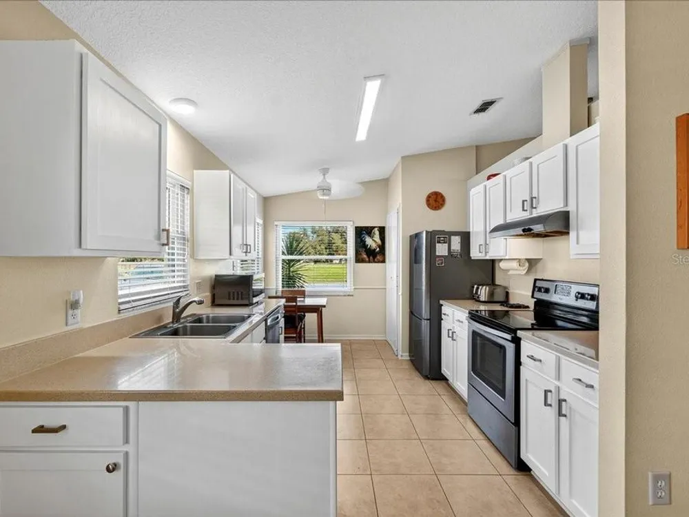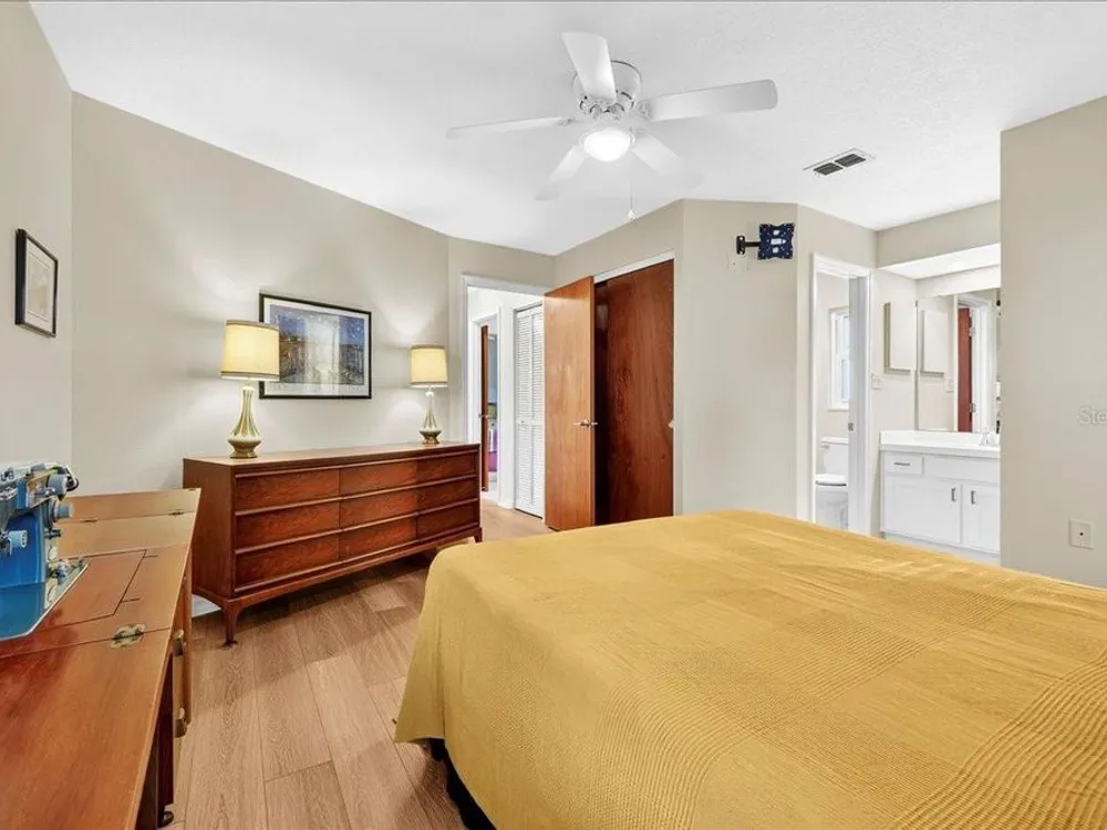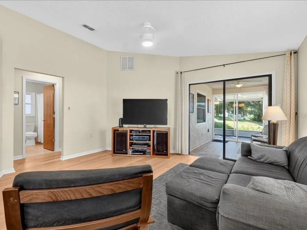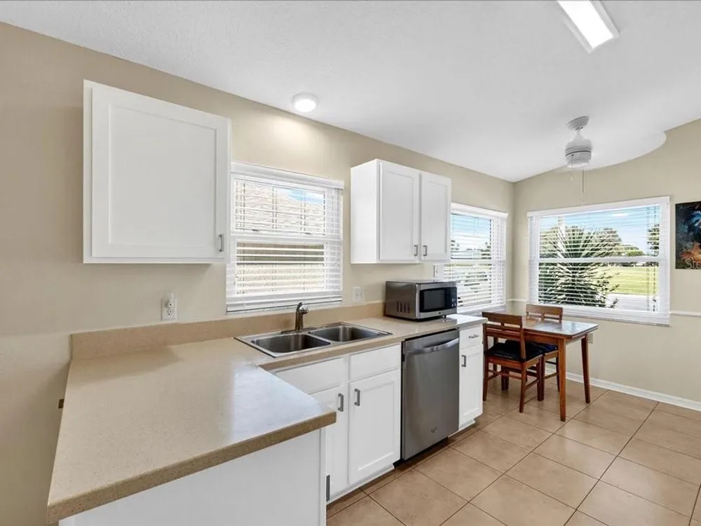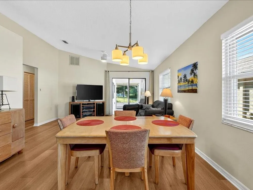 MOVE-IN READY! This beautifully maintained home offers effortless living in the desirable Sandpiper Golf & Country Club community. Perfectly situated just steps from the clubhouse, restaurant, pool, tennis courts, and fitness center, this home showcases true pride of ownership inside and out. The kitchen features Corian countertops, shaker-style cabinetry, stainless steel appliances, a spacious pantry, and a cozy breakfast nook. Gorgeous new luxury vinyl plank flooring (installed in 2024) flows throughout the home, enhancing its bright, open feel. The spacious living and dining areas provide a comfortable setting for relaxing or entertaining. The primary suite is a peaceful retreat featuring dual closets— one walk-in and one standard— plus a private en-suite bath. The guest bedroom offers convenient access to a partially private bathroom. Enjoy the Florida lifestyle year-round in your heated and cooled enclosed lanai, relax in the screened lanai under the roof, or unwind on the paver patio overlooking the golf course; perfect for morning coffee or evening sunsets. Recent upgrades include: new flooring (2024), kitchen updates (2008 & 2022), lighting and fans (2021), roof (2020), interior paint (2020), bathroom updates (2020), sliding doors (2018), HVAC (2017), refrigerator (2025), and double-pane windows (2015). Sandpiper Golf & Country Club offers exceptional amenities, including golf, a pro shop, community pools, tennis, shuffleboard, and more. The low HOA fee of just $150/month includes cable, internet, lawn care, and amenities. Conveniently located near shopping, dining, medical facilities, and I-4. Don’t miss this opportunity. Schedule your private showing today!