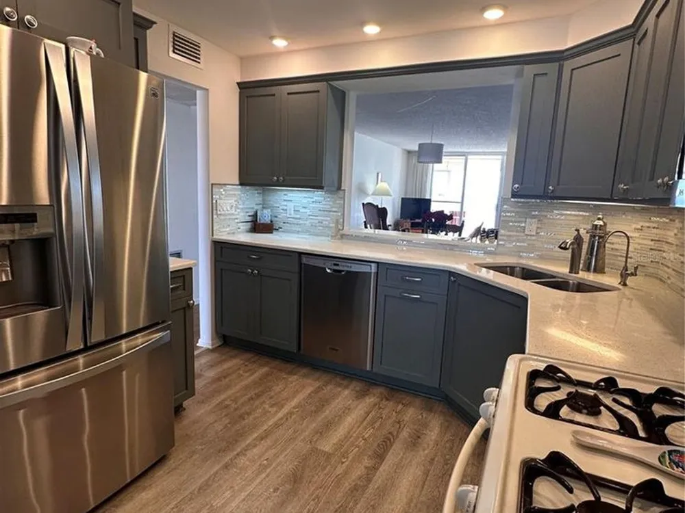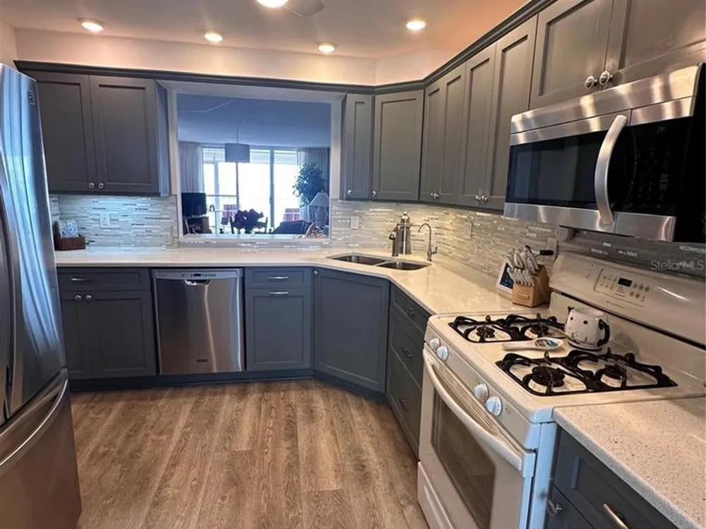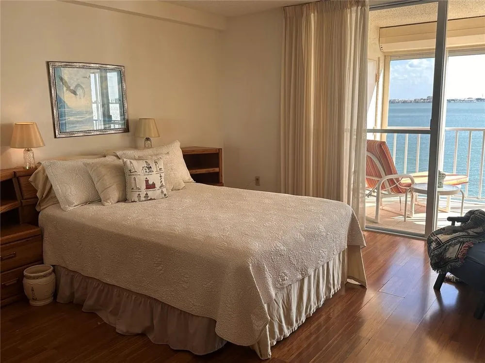 This exceptional property offers the best of waterfront Luxury living! It is perfectly situated minutes from downtown Gulfport an exclusive 55+ community on Boca Ciega Bay that boasts breathtaking unobsturcted open water views plus comfort and convenience that is unparalleded for the location and price! Step inside to a renovated kitchen featuring custom cabinetry, stunning backsplash, gleaming countertops, stainless steel appliances, new electrical panel, under sink water filtration system with filters and upgraded recessed lighting plus a gas range/oven with on demand hot water. In 2025 the Thermostat was fully serviced and the Air Ducts were cleaned. New impact windows were installed in 2019. This beautiful home offers the only 2 bedroom/2 bath floorplan in the complex with 1255 square feet and full size laundry within the unit. The open-concept dining and living areas are perfect for relaxing or entertaining, while the breathtaking nightly sunset views add to the unbeatable ambiance, safety, comfort and convenience. This home offers designated under shelter parking and the added peace of mind that this building sustained no hurricane flooding. It is one of only two buildings in the communituy with a secured lobby and the only building offering a private storage closet on the expansive outdoor balcony, with the added safety of protective hurricane shutters. Enjoy the coastal breeze while watching the dolphins, manatees, stingrays and more! The Buckingham is highly coveted as it is the newest building in Town Shores and offers effortless living in a resort-style environment. Amenities incude a new seawall, a recently remodeled clubhouse with a new HVAC system, 4 heated pools, kayak and bike storage, tennis and pickleball courts, BBQ areas, bocce ball, shuffleboard, yoga classes, line dancing and more! The clubhouse offers a fitness center, billiard room, library, sauna, fitness center, puzzle room, a marina with 2 docks and the opportunity for boat slip rentals, a meeting room, a lounge and an auditorium each with a full kitchens. You can do everything or nothing at all! HOA dues include gas, water, sewer, trash, recycling, common area maintenance and lighting all you pay for is electric! Only minutes to walk or bike into downtown Gulfport to shops, Farmers Markets, Art Shows, live music, library, senior center, restaurants and more! Located 30 minutes to Tampa International Airport and only 15 minutes to world famous beaches and downtown St. Petersburg offering everything you can think of from operas to theme parks.