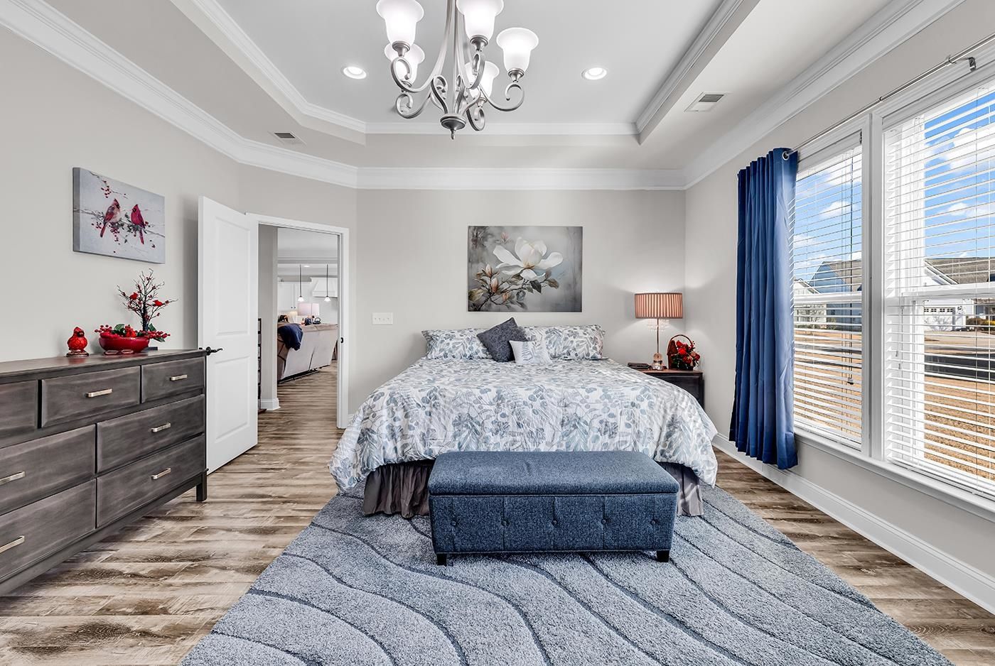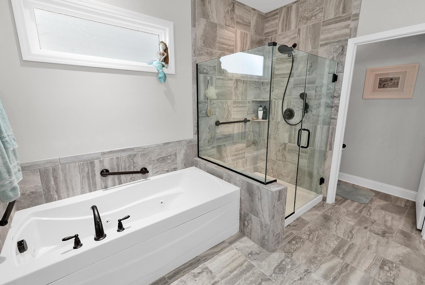 - Tray Ceiling(s), Fireplace, Accessibility Features, Jetted Tub, Split Bedrooms, Separate Shower, Walk-In Closet(s), Window Treatments, Kitchen Island, Stainless Steel Appliances, Solid Surface Counters
