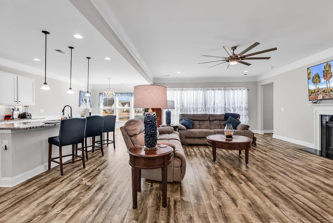 Welcome to effortless living in this beautifully maintained Dunwoody floor plan, the second-largest floor plan available in the highly sought-after Del Webb community. Set on a premium corner lot, this home has been lovingly cared for by its original owner and offers a bright, open layout designed for both everyday comfort and easy entertaining. Featuring an attached 2 car garage and a golf cart garage. From the moment you step inside, you’ll notice the abundance of natural light, thoughtful flow, and refined finishes throughout. The spacious design features three bedrooms and three full baths, and also includes a flex room/den/additional bedroom that adapts effortlessly to your needs. The heart of the home is enhanced by numerous builder and homeowner upgrades, including double crown molding, a fireplace, quality finishes, and carefully selected enhancements that add character and value while maintaining a timeless, cohesive feel. The primary suite offers a peaceful retreat, complete with a large walk-in closet, a walk-in shower, and a separate jacuzzi tub, designed for relaxation, comfort, and accessibility. Bathroom two features a walk-in tub, ready for family or friends to enjoy safely. Every detail of this home reflects pride of ownership, from its immaculate condition to its thoughtful design choices. Combined with the resort-style amenities including the exclusive Grand Dunes Ocean Club and active lifestyle Del Webb is known for, this home offers not just a place to live—but a place to truly enjoy the unique lifestyle available at Del Webb.