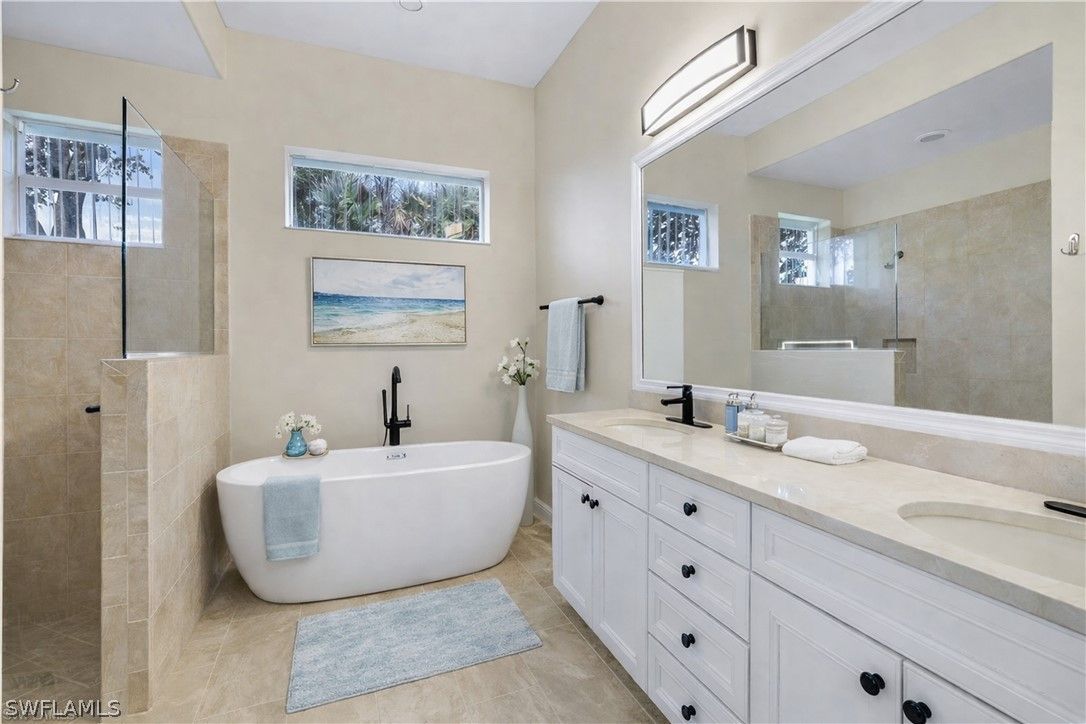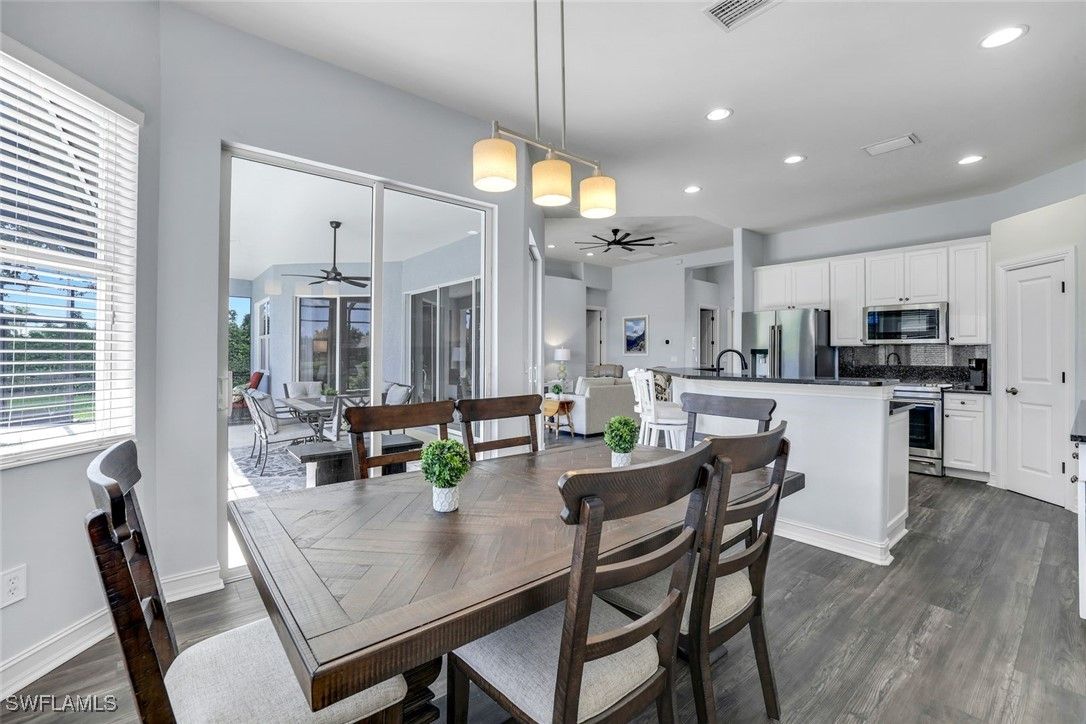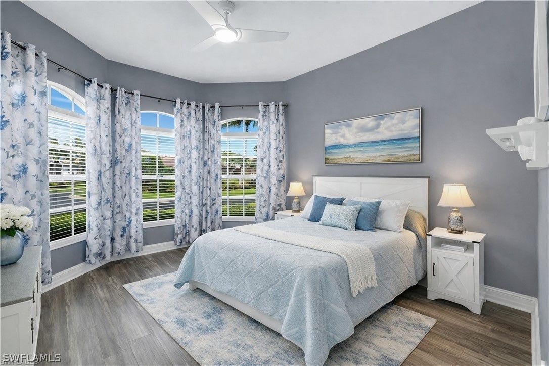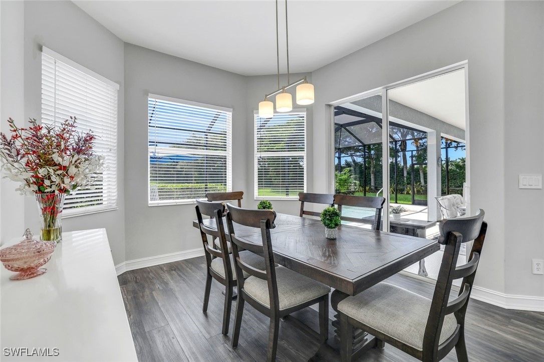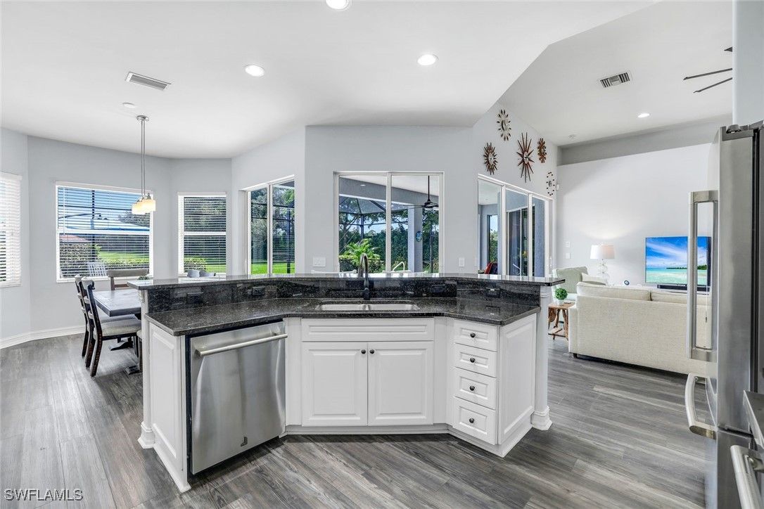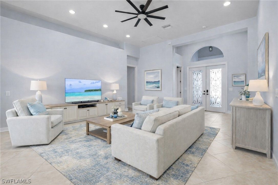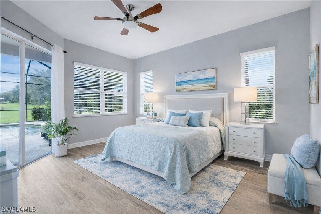 Prestwick Place in Lely Resort is one of Naples’ best-kept secrets. This beautiful Augusta model is perfectly positioned on an oversized 8,712-square-foot cul-de-sac lot with only one adjacent neighbor, offering exceptional privacy and sweeping lake views. From the moment you enter, a wall of pocketing sliders frames the water and extends the open-concept living area to the spacious lanai. This smart, energy-efficient home features a bright primary suite with dual walk-in closets, double vanities, a makeup area, a linen closet, and a walk-in shower. Two guest bedrooms and a full bath are privately located on the opposite side of the home, accessible behind a pocket door. Finishes include granite countertops and a stylish backsplash, complemented by an abundance of natural light throughout. Recent upgrades deliver peace of mind: premium JennAir stainless steel appliances (2023), new Maytag washer and dryer (2024), smart electric storm shutters operable remotely (2024), generator outlet pre-wired to the electrical panel for convenience during storms, new pool motor (2025), roof (2021), and water heater (2021). Residents of Lely Resort enjoy an unparalleled lifestyle with access to The Player’s Club & Spa, offering three resort-style pools with a dramatic 22-foot waterfall and poolside service, tiki huts, concierge service, indoor and outdoor dining and bar, a state-of-the-art fitness center, full-service spa, 13 tennis courts with on-site pros, pickleball and bocce courts, a billiard room, library, theater, and miles of bike and jog paths. Lely Resort also features three golf courses, two public with no mandatory memberships and one private (The Classics), plus a dedicated Bark Park for your four-legged friends. Ideally located between the coastal charm of Marco Island and the cultural allure of downtown Naples, this property is minutes from 5th Avenue South, historic Third Street South, art galleries, fine dining, boutique shopping, and the sugar-sand Gulf beaches with breathtaking sunsets. Live your dream and enjoy a vacation lifestyle year-round at Prestwick Place.