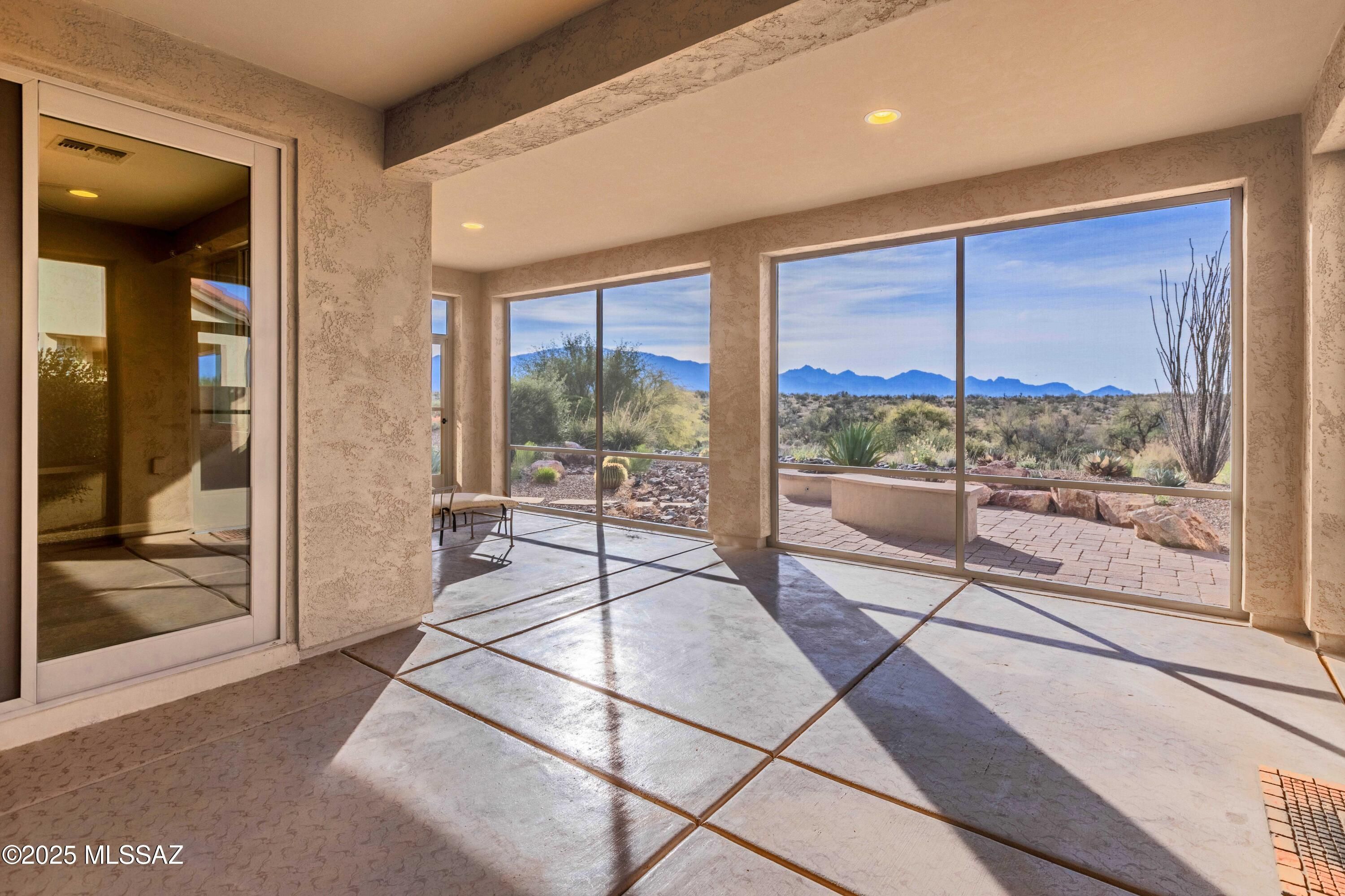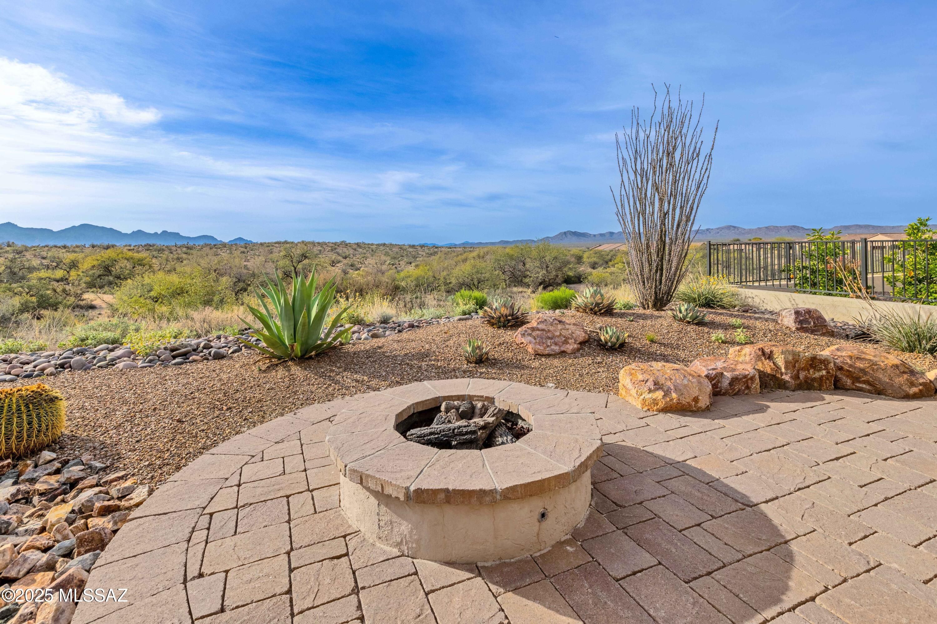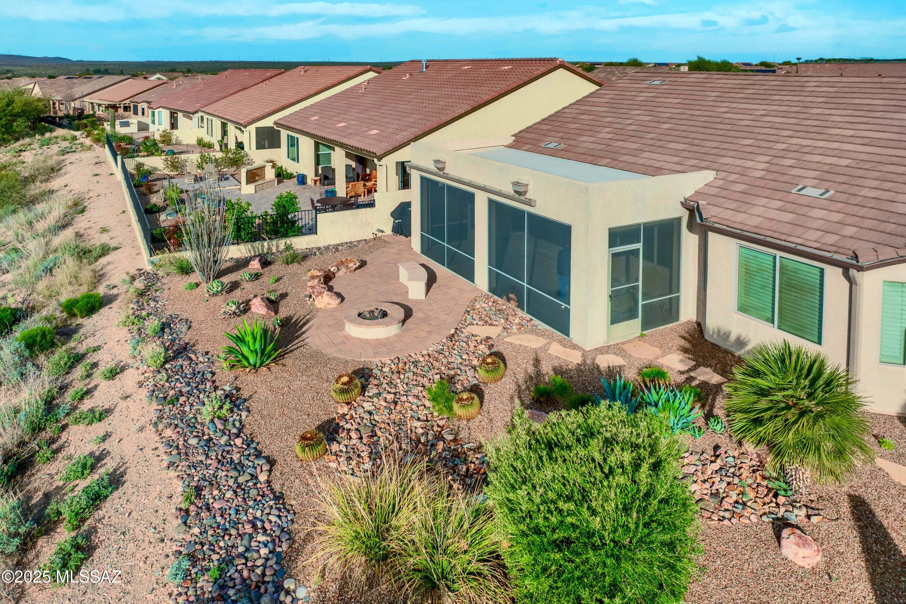 This home showcases the sought-after Sola floor plan--a 2-bedroom, 2-bath retreat with gorgeous, expansive views of Mt. Lemmon. The screened porch is the perfect place to relax and take in the scenery, while the backyard is enhanced with a natural gas fire pit, ideal for enjoying cool desert evenings. Inside, the home features bright, low-maintenance tile flooring throughout, plantation shutters in the bedrooms, and a laundry room with additional storage. The garage is thoughtfully finished with built-in lockers for added organization. Just minutes from SaddleBrooke Ranch amenities, this home offers comfort, functionality, and breathtaking mountain vistas--an exceptional desert retreat you won't want to miss.