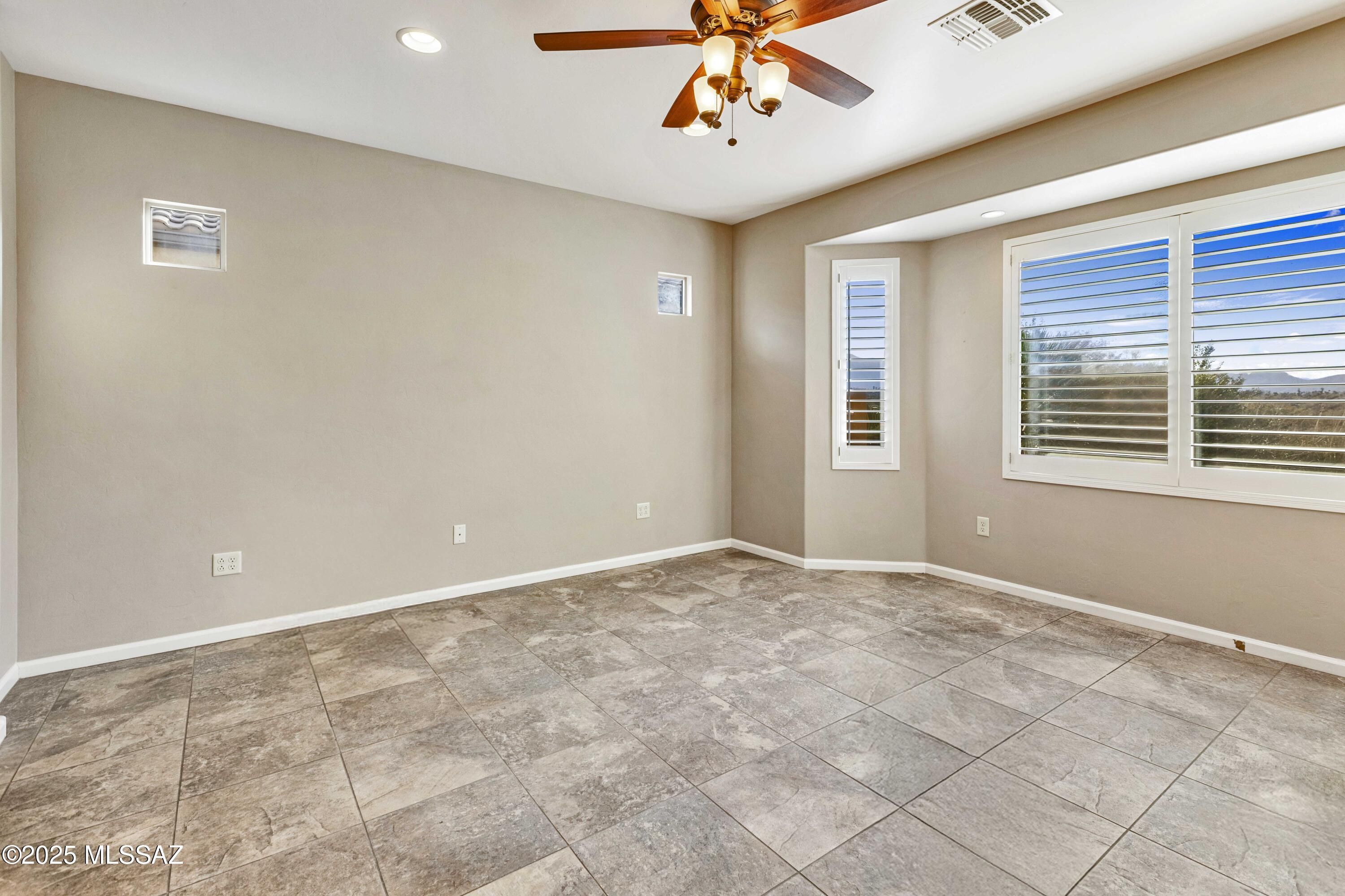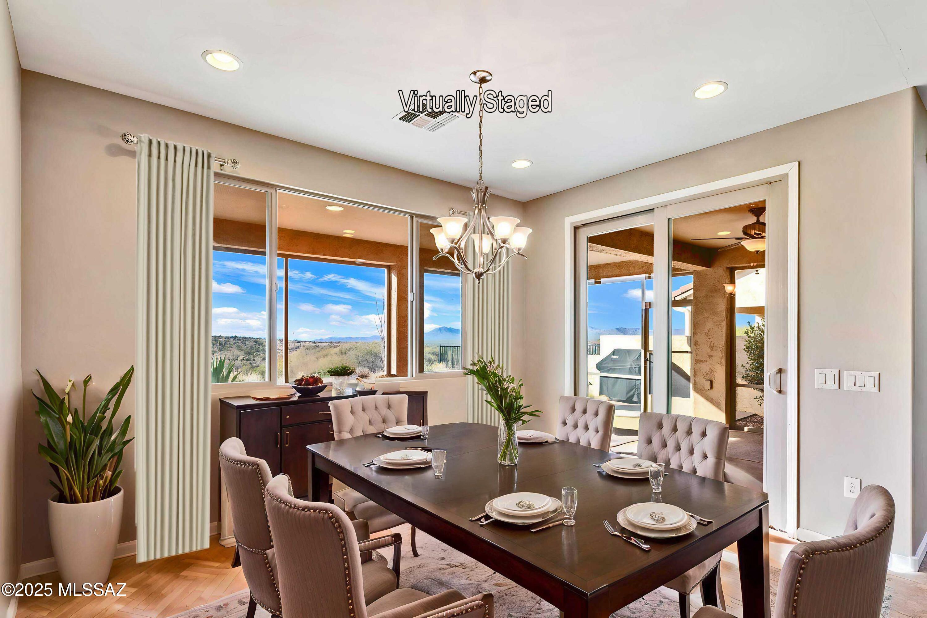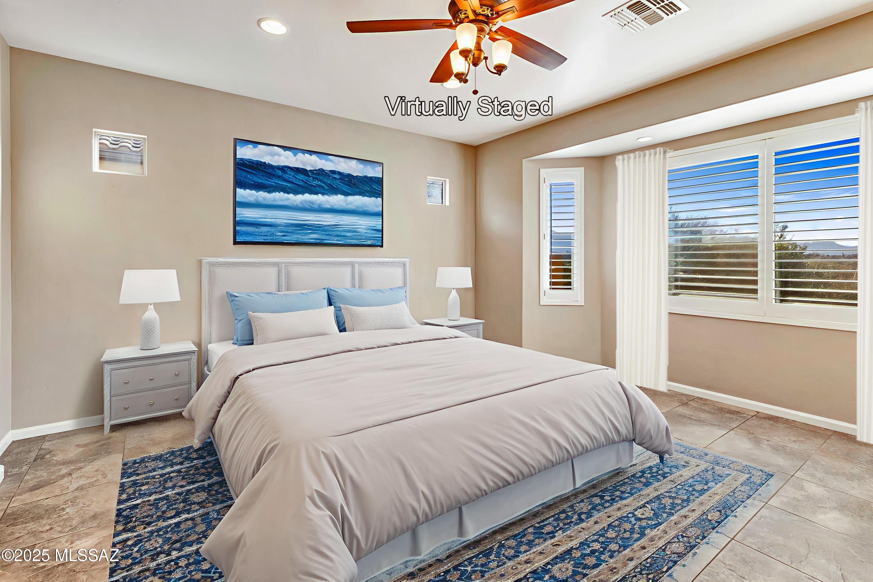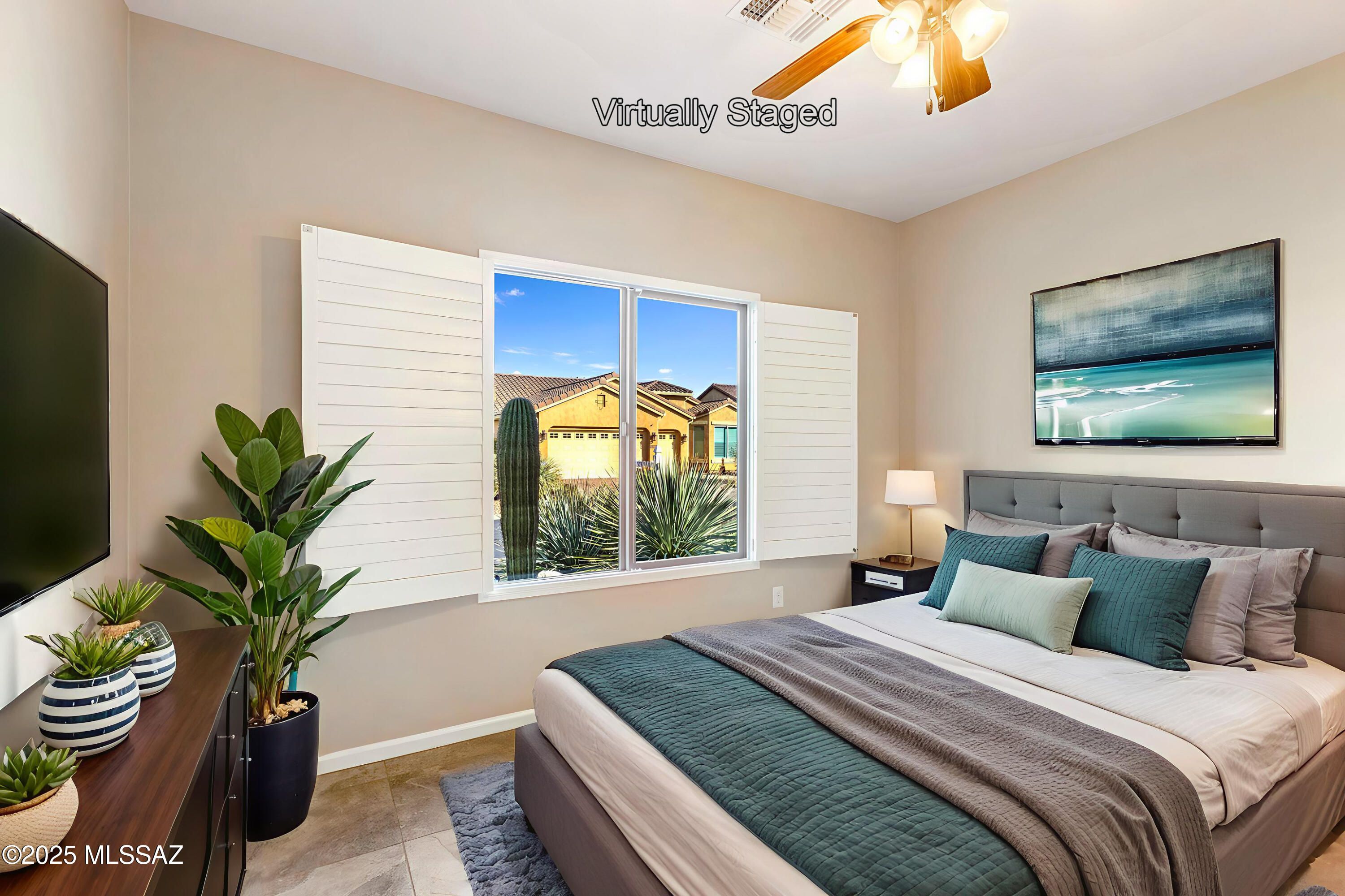 This home showcases the sought-after Sola floor plan--a 2-bedroom, 2-bath retreat with gorgeous, expansive views of Mt. Lemmon. The screened porch is the perfect place to relax and take in the scenery, while the backyard is enhanced with a natural gas fire pit, ideal for enjoying cool desert evenings. Inside, the home features bright, low-maintenance tile flooring throughout, plantation shutters in the bedrooms, and a laundry room with additional storage. The garage is thoughtfully finished with built-in lockers for added organization. Just minutes from SaddleBrooke Ranch amenities, this home offers comfort, functionality, and breathtaking mountain vistas--an exceptional desert retreat you won't want to miss.