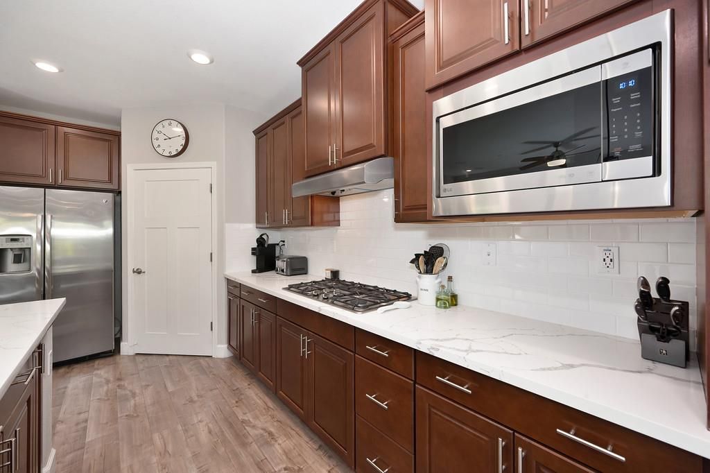 - Gas Cooktop, Range Hood, Ice Maker, Dishwasher, Microwave, Double Oven