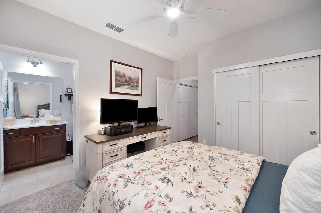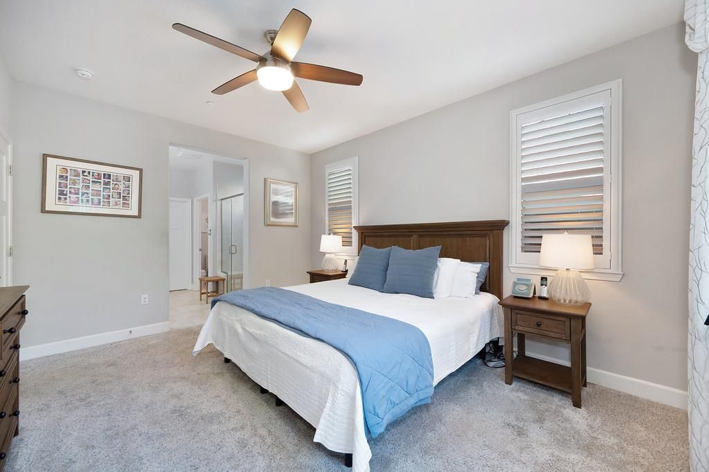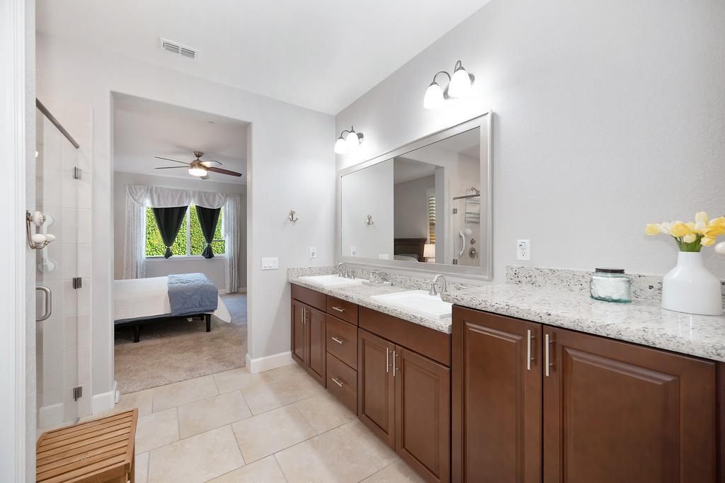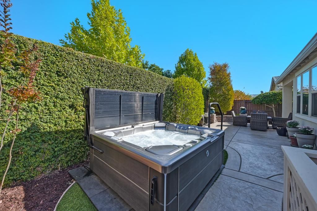 Come see this stunning 3 bedroom and 3 bathroom home with OWNED SOLAR in the luxurious 55+ community of Heritage El Dorado Hills! Thoughtfully designed for comfort and ease, this home offers privacy with no rear neighbors and an open layout filled with natural light. The chef's kitchen is stunning with quartz countertops, a large island, double ovens, 5-burner gas cooktop, and a walk-in pantry maximizing convenience and storage. The spacious primary suite features a walkin closet, dual vanity and walkin shower. Each bedroom has its own dedicated full bathroom for added convenience and privacy. The low maintenance backyard is perfect for both entertaining and relaxing with the California Room and Hot Tub. Enjoy resort-style community amenities which includes pools, spas/hot tubs, rec rooms, exercise room, tennis courts, pickleball and bocce ball courts, walking trails, a dog park, and much more! Just Minutes from Shopping and Dining in El Dorado Hills and Folsom! This home is turn key and move in ready!