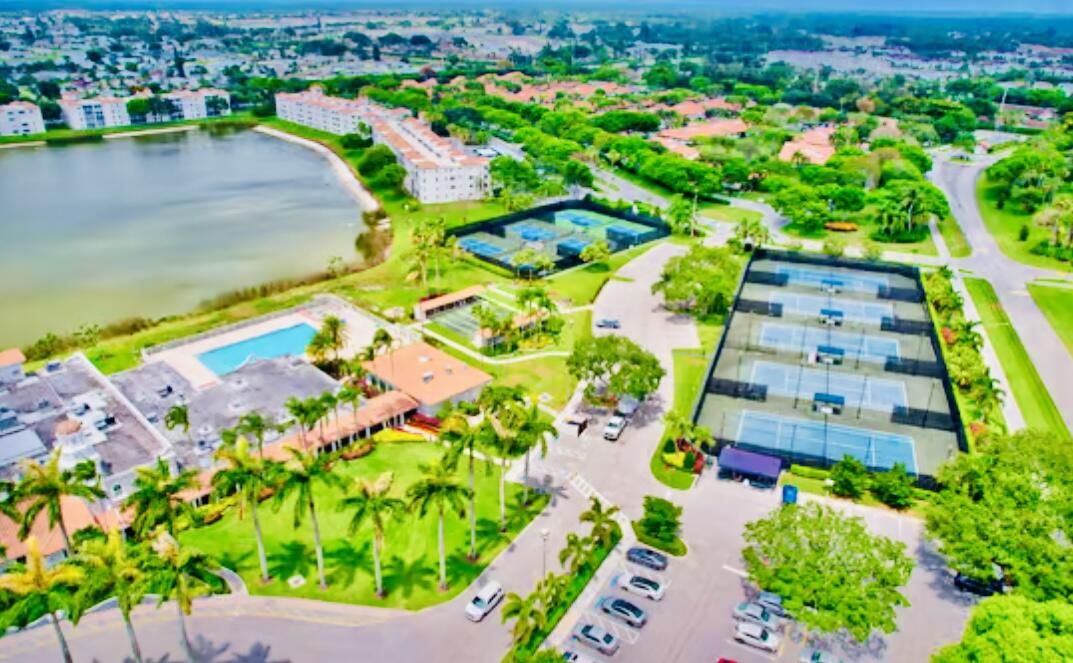Active 55+ Fully Updated 1392 SF Luxury 2/2+Den Sun-Filled Condo w/ Lovely Lake View & Open Living Area! Tiled Florida Room/Patio, Large Primary Bedroom, Walk-In Closet, New Kitchen, New A/C (*24), New Roof (*25), Covered Parking Spot. Closest Building to Newly Renovated 62,000 SF Gorgeous Resort Style Clubhouse w/ every amenity - 600 Seat Professionally Equipped Amphitheatre for Concerts & Movies, State of the Art Fitness Center w/ Classes, Indoor & Outdoor Pools, Hot Tub, Sauna & Steam Room, Fully Appointed Locker Room, Putting Green, Tennis, Pickleball, Shuffleboard, Ping Pong, Bocce, Billiards Room, Ceramics & Crafts Studios. Many Clubs to Join, Built-In Community. On-Site Modern Deli/Cafe. Gated Community with 24-Hour Manned Security, Furnished or not. 6 Miles to the Beach. state-of-the-art gym, a fitness studio, men's and women's locker rooms with showers, sauna and steam rooms, ceramics room with kilns, a professionally equipped theater which seats over 600 people who enjoy concerts, shows, movies and more. We have a main swimming pool with hot tub and an enclosed heated indoor pool attached to our clubhouse along with 3 heated satellite pools. In addition to our clubhouse amenities, Huntington Pointe offers tennis, pickleball and bocce courts, corn hole, basketball, and shuffleboard.