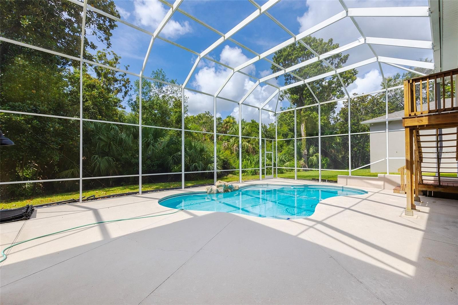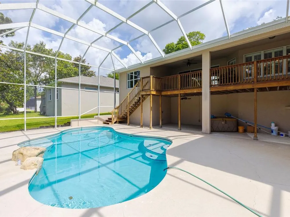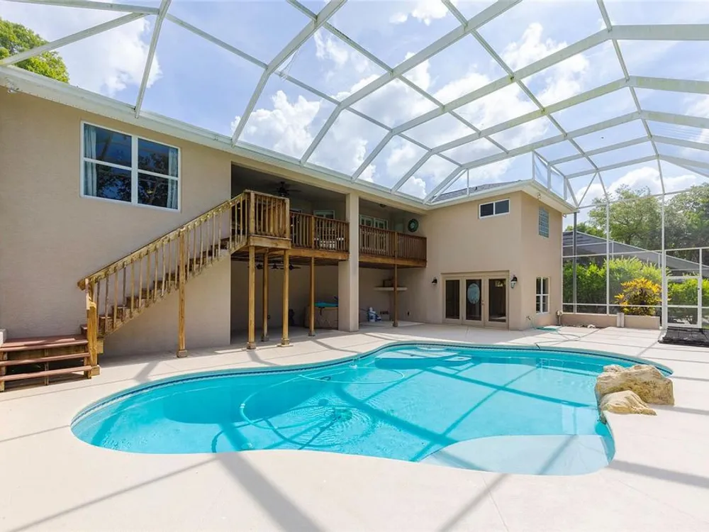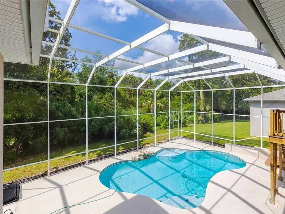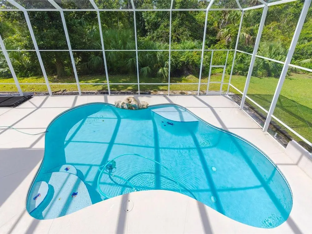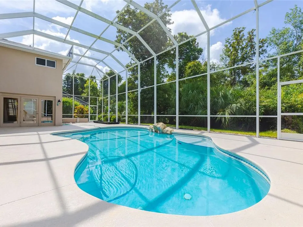 Situated in desirable Summer Trees South on a peaceful lot backing to Spruce Creek, this sprawling swimming pool home is move-in ready and waiting for a new family to enjoy. As you approach the home you will be greeted by a beautiful elevation with vibrant Florida foliage, while inside you will find generous living spaces with high ceilings and an abundance of natural light. Gleaming wood floors and convenient tile run throughout the residence, while the open kitchen boasts granite countertops, 42'' wood cabinetry, and quality stainless steel appliances. Enjoy the oversized, screened, custom swimming pool area, perfect for entertaining year-round. The large primary bedroom features a tray ceiling while in the master bathroom you will find dual vanities and a walk-in shower. The 4th bedroom on the lower level features its own bathroom and living space, and could be used as an in-law suite or private guest quarters. Growing families will love the current public school zoning that includes Sweetwater Elementary, Creekside Middle and Spruce Creek High. Don't miss out on this unique Port Orange home!